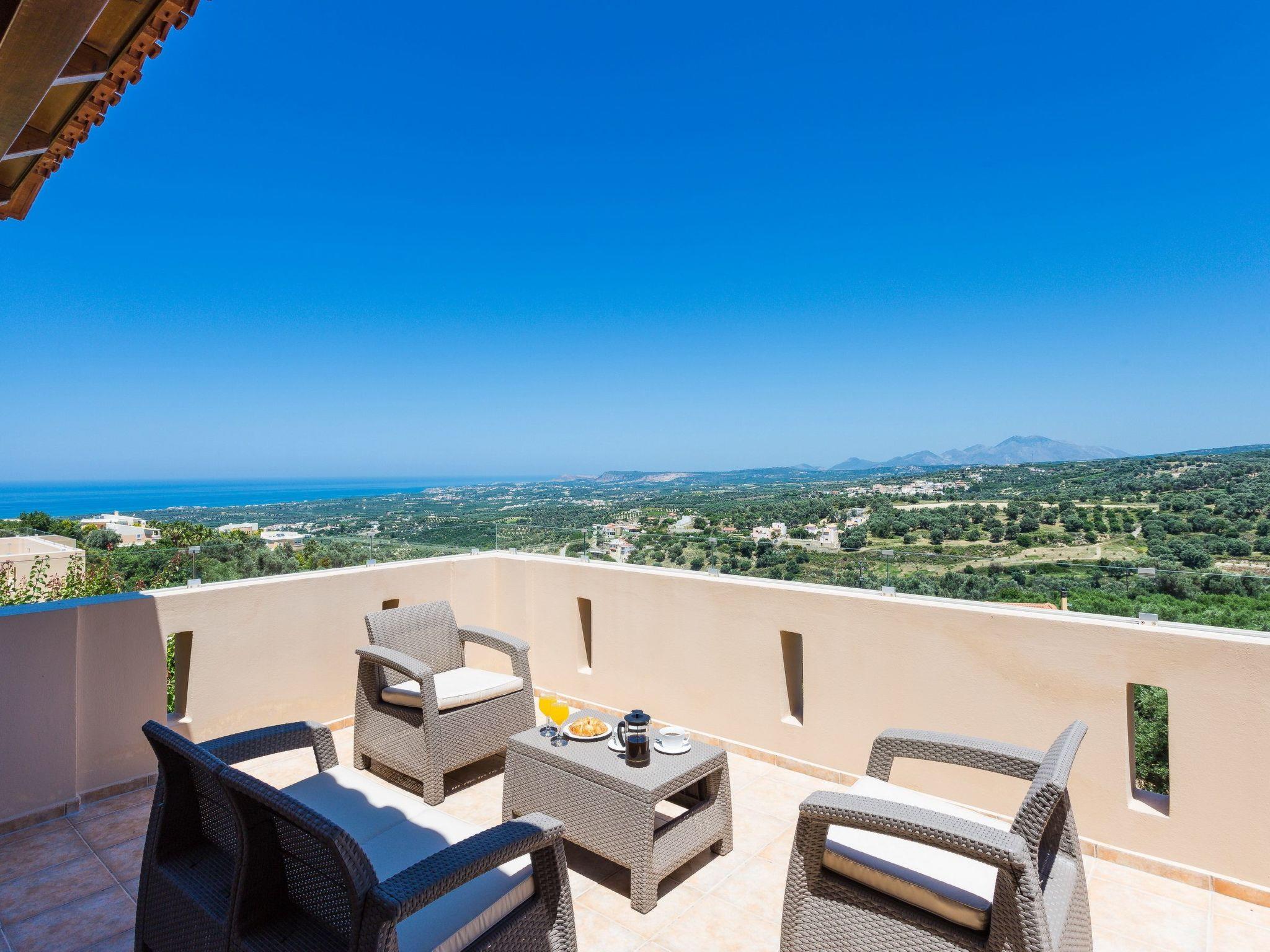 Eros Villa is set at a privileged spot of Agia Triada, a serene village perched on a hillside on North Crete with an unlimited and a panoramic view of the Cretan sea, about 10 km from the old historical town of Rethymno and 3 km from the nearest sandy beach of Adele (Adelianos Kampos). Near the villa you can find grocery shop, coffee shop and bakery. Eros Villa is part of “Agios Antonios Villa Complex”, built in tranquil area full of olive groves, near the historic Arkadi Monastery and the ancient city of Eletherna and Museum. The homonymous Agios Antonios Gorge (or Patsou Gorge) starts just 800 meters away, with its water gathered in the picturestque wetland of Potami, located at the foot of Psiloritis Mountain (Ida). The Venetian Harbour of Rethymno, is the ideal place to enjoy fresh fish; Platia Tavern belongs to the villa owner and stand out for the delicious local recipes, such as the famous ntakos salad and apaki.