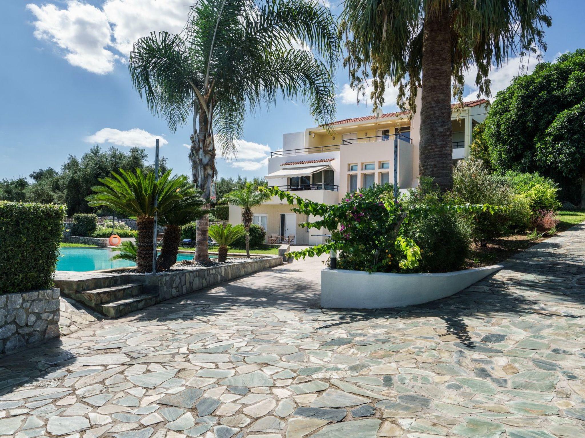 The villa is located on a hill top overlooking the Mediterranean Sea where piece and quite are the only words that can describe its position. Since the villa is cantered located in Crete, you can equally travel and explore the island which this also gives you peace of mind as you do not have to choose in which airport you will have to fly to (Chania or Heraklion) since the distance is almost the same. Being in an excellent location, all facilities are in within 5 minutes drive car going to the village of ‘’Stavromenos’’ (5 klm) where bakery shop, mini markets, small tavernas and many sort of different shops can be found. Also the beach of Stavromenos is one of the longest beaches in Crete. Furthermore the ‘’Arkadi’’ Monastery is only 8 klm away and well worth visit in order to learn some of the history of Rethymno.