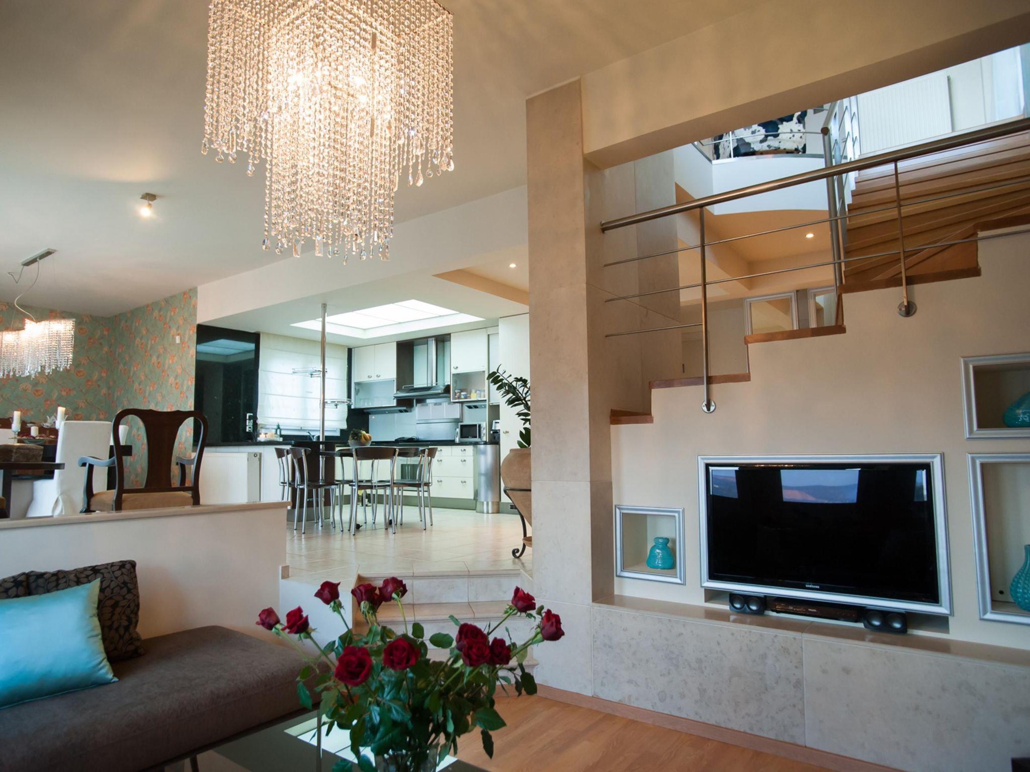 There is another individual small apartment (75 sqm) situated there with a kitchenette, living room, dining table, CD player, flat screen TV, 1 double bedroom and 1 bedroom with 2 single beds. 1 wc/shower