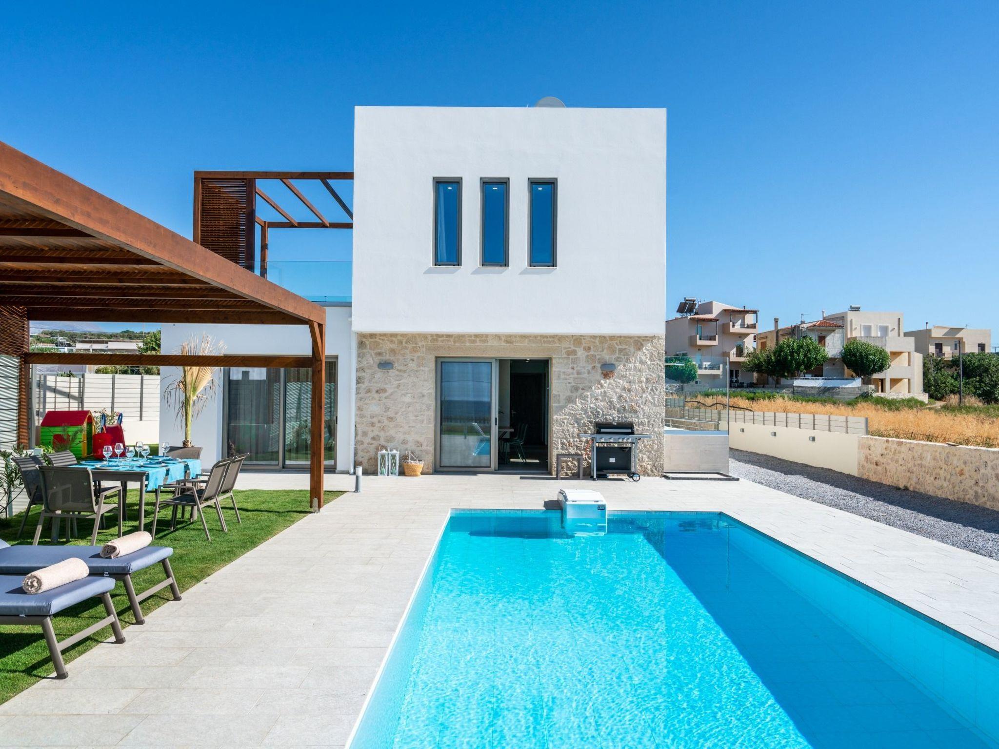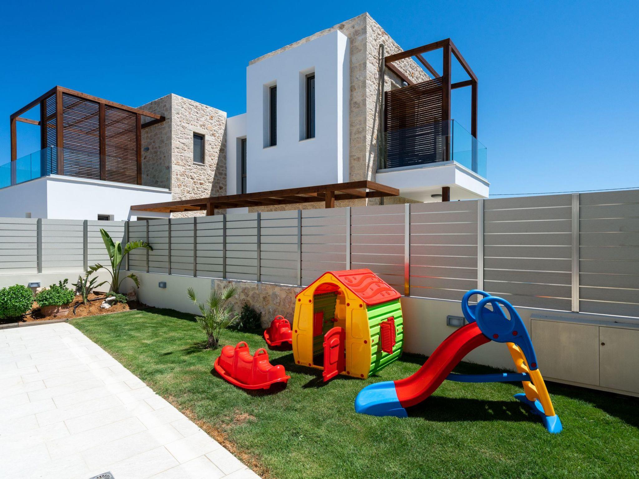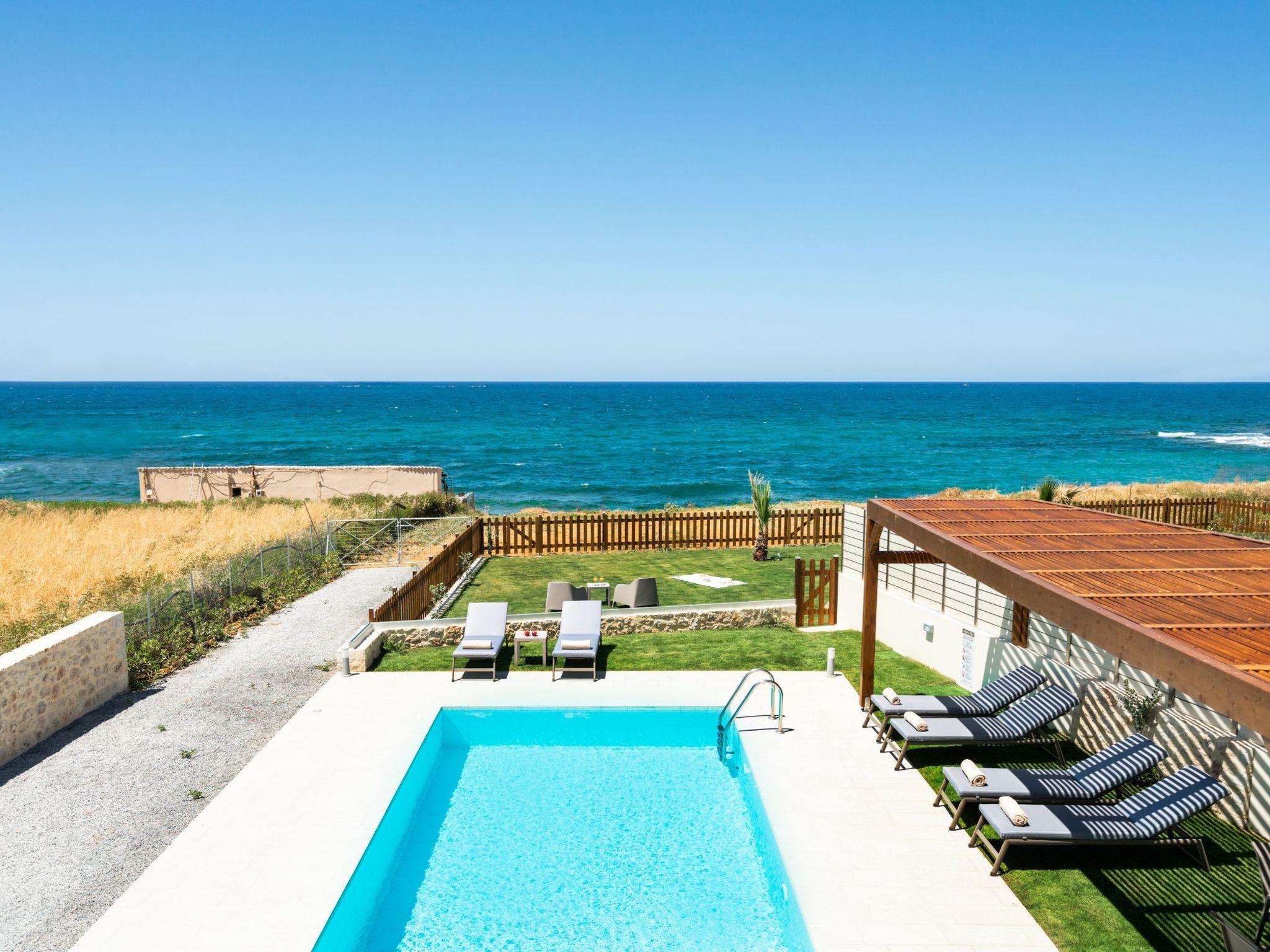 Brand new Seafront villa ‘’Nymphes’’is a complex of 2 independent houses, which offer modern comforts and a magnificent ambiance to all guests. Each holiday property has a large private swimming pool and a spacious garden with children’s play area in the area of Sfakaki, 9 km from Rethymno. Enjoy the sea views while seated on the outdoor furniture or on the grass next to the large 40 sq meter private swimming pool. All bedrooms have en suite bathrooms and private balconies with breathtaking views. Within a close distance you can find many restaurants to enjoy a big variety of Cretan delicacies.
