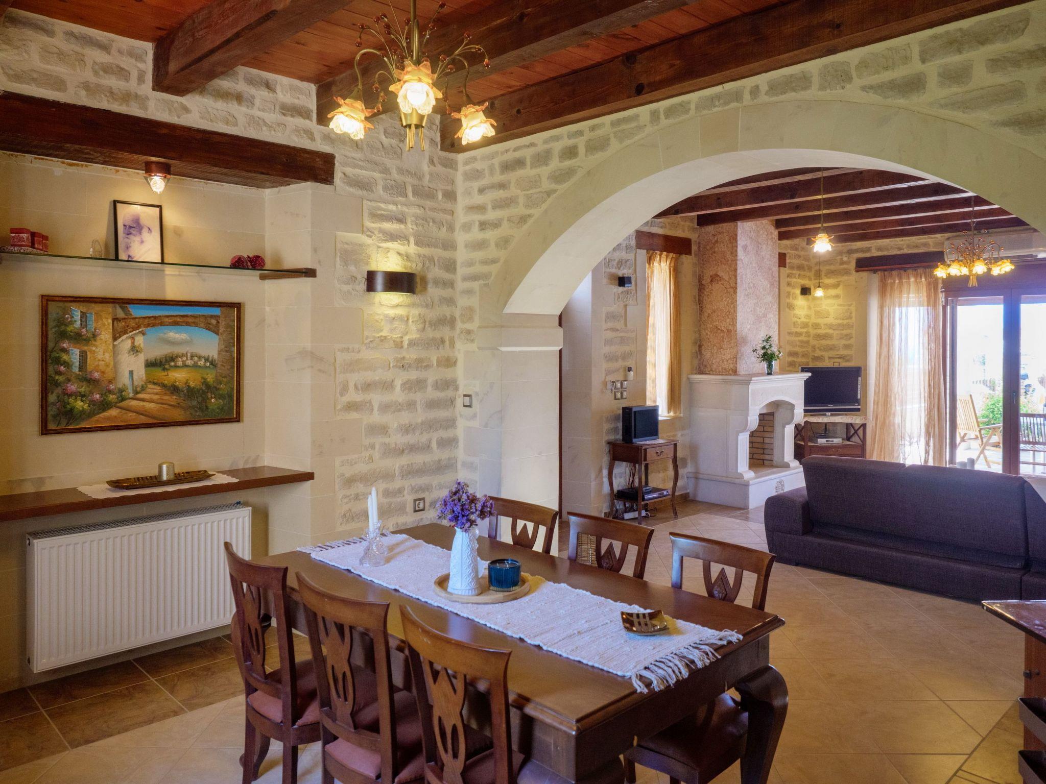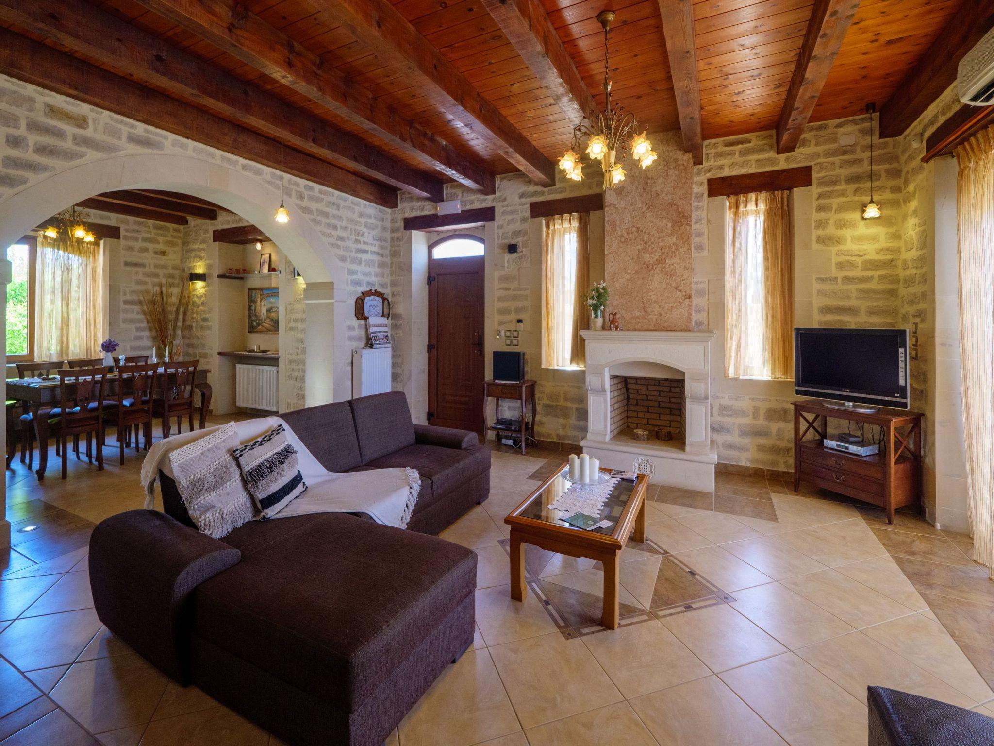 Supermarkets, taverns, tourist shops and coffee shops are within 2 km. The sandy beach of Sfakaki is 2.5 km away on the other side of the coastal road.