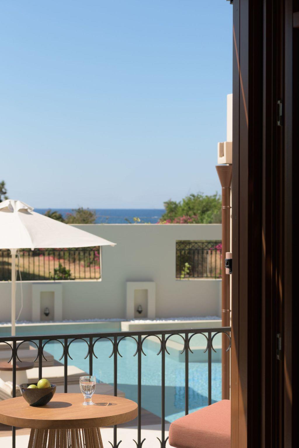 Each of the 4 double bedrooms has a queen-size bed, air conditioning, and a smart TV, while 3 of the bedrooms include private balconies. All bedrooms share easy access to the nearby bathrooms for comfort and convenience.