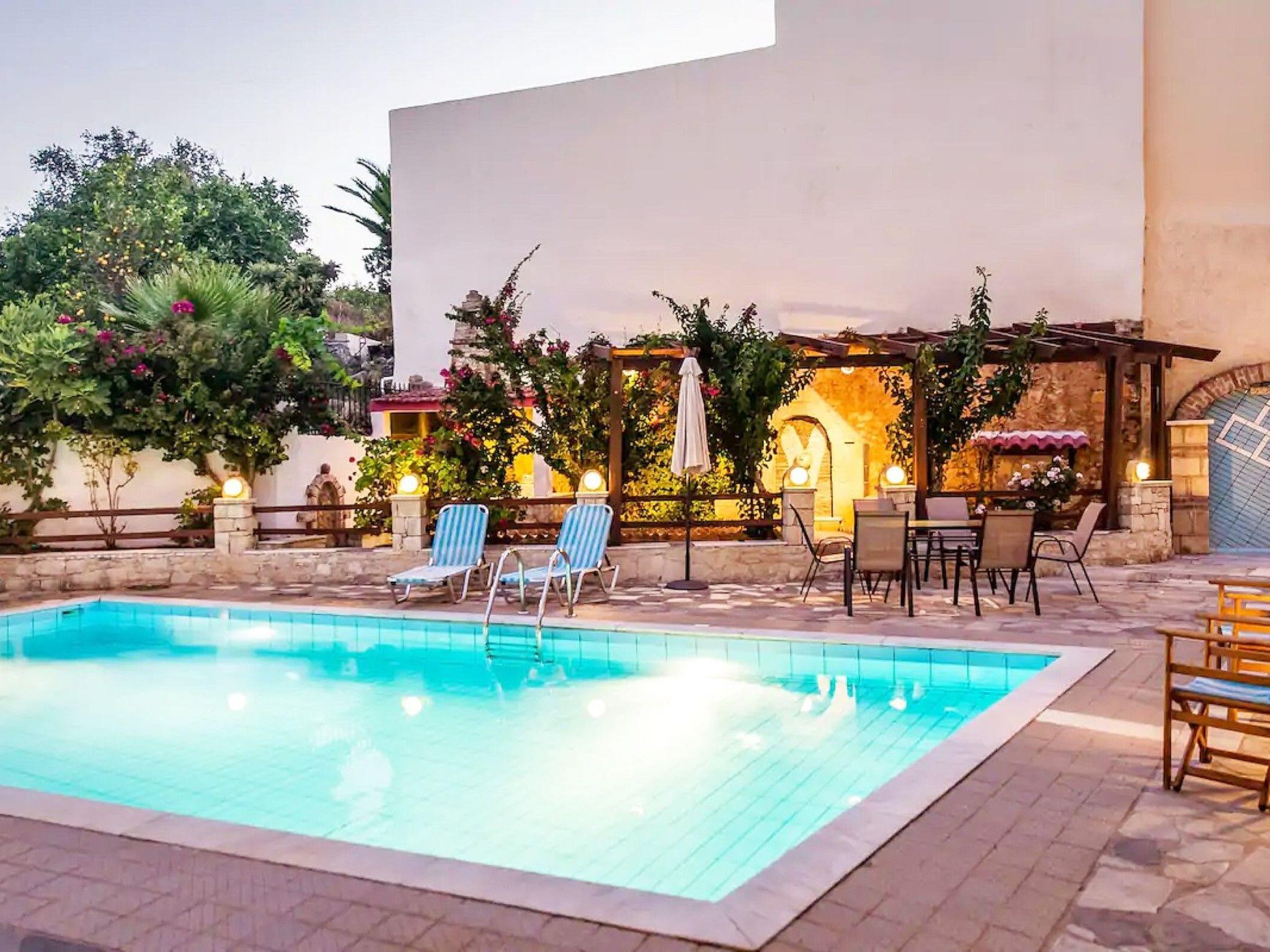 Furthermore: -Two parking spaces - Baby cots and baby/small children related furniture (upon request) - Free internet (WiFi) - Pet Friendly Vacations - Animals are welcome upon arrangement. Additional Services We also provide additional services for you convenience and in order to enjoy a full holiday package with reliable services and no surprises. We provide transfer service from the airport to the villa for any group size, with mini buses and buses. We provide Rent a car at the airport or at the Villa with full insurance (no risk) no credit card new cars and unlimited miles. We also can provide tours with group or only for your own group to visit different places and beaches on the island that you didn't know, try traditional cuisine and participate on Cretan events. We can provide any other services on request based on local suppliers that we have long time cooperation and also for events like weddings, birthdays etc. So please do not hesitate to ask for more information for services you wish to have during your stay with us. We will be happy to assist and provide the best options for you! House rules (optional) Guests are asked to respect the property and to avoid causing damage. Animals welcome upon arrangement When arriving, how can guests get to your property? Chania Town is 58 km from Amarandos Rethimno's Villa, while Balion is 28 km from the property. The nearest airport is Chania International Airport, 59 km from the accommodation. Villa is located in the middle of village, there is a primary school and a park in front of it.