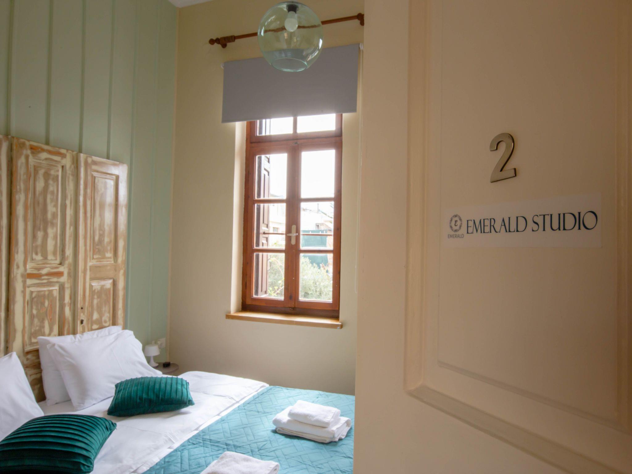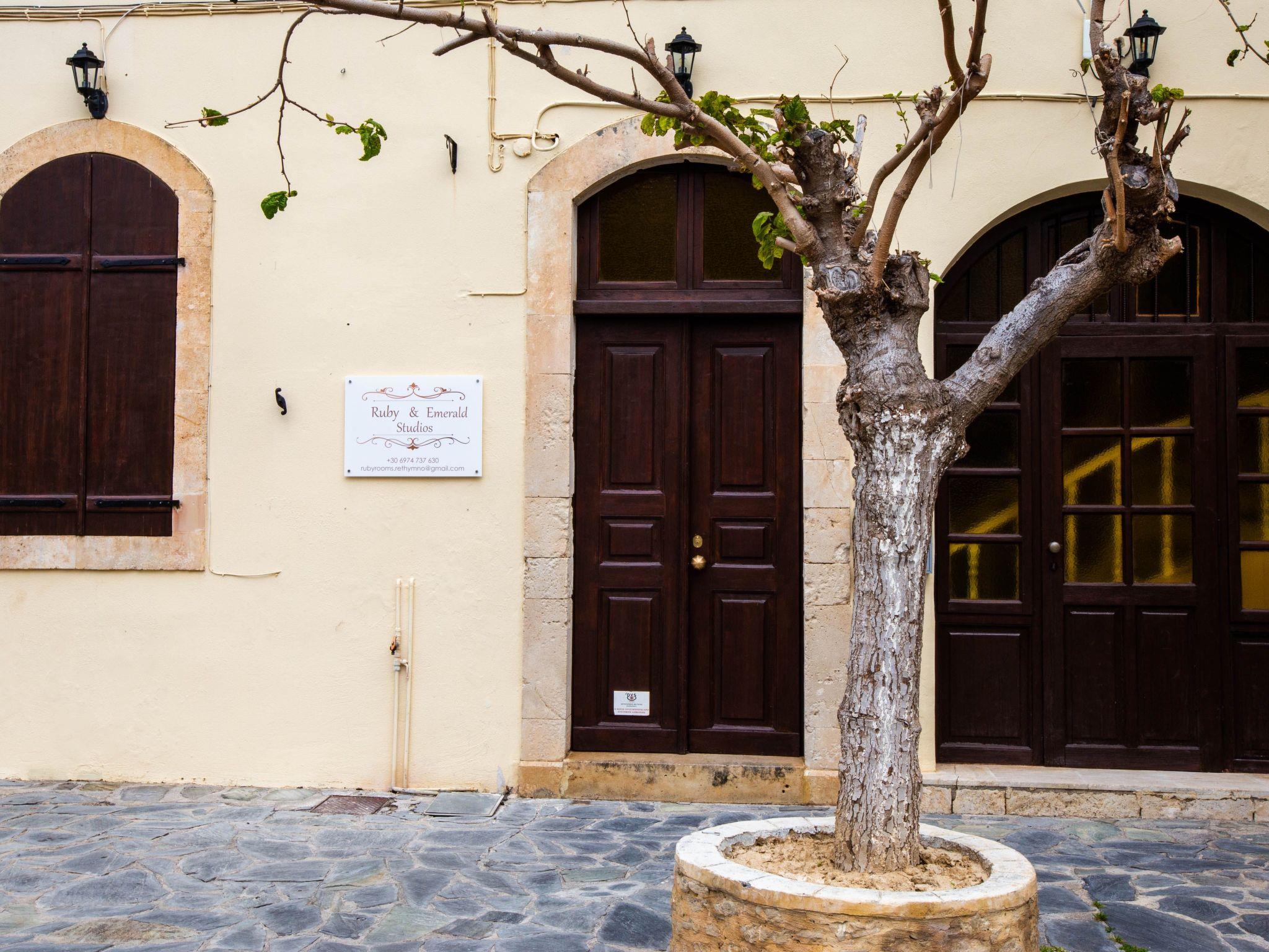 Emerald studio is perfectly situated in the very center of the Old Town of Rethymno in a quiet and safe neighborhood. Plenty of cafes, shops, and restaurants are available just in few steps from the property. The peaceful city beach of Rethymno may be reached on foot (15-20 minutes walk), 10-15 minutes by bike and 5 minutes drive or taxi. The Heraklion International Airport is 83 km away, while Chania Airport is 66 km awayWhether you decide to go to the town beach or take a stroll through the new town, check out the Municipal Royal Garden or go to the lighthouse, it's all within walking distance of Ruby Studio:1) Fine dining2) Cocktail bar by the sea3) Grocery stores and supermarkets4) Sandy beach5) Castle (Fortezza of Rethymnon)6) Historical Museum7) Venetian Port