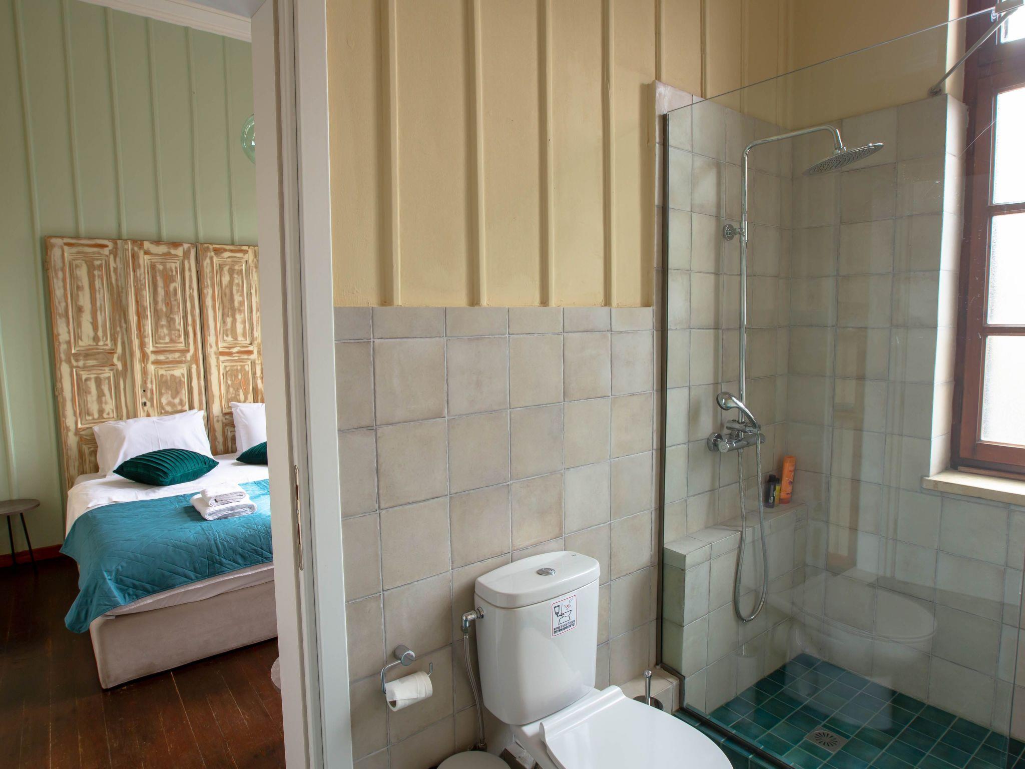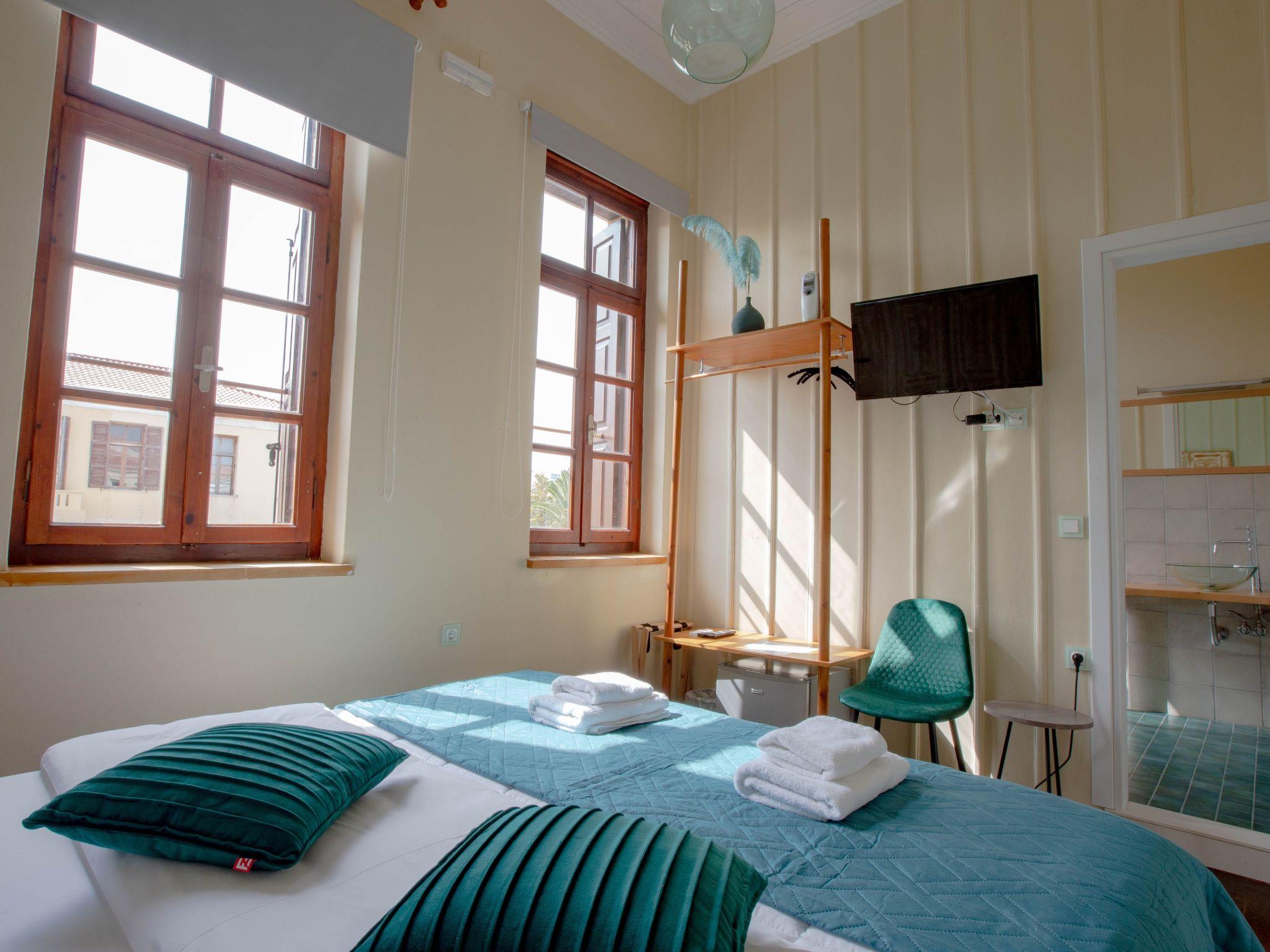 Emerald Studio is on the second floor of one of the most historical and emblematic buildings, located in the heart of old town in Rethymnon. It was built in the late 19th century and there is speculation that it was the residence of a nobleman.Emerald studio is spacious and bright with their own bathrooms. On the same level, there is also a shared terrace.
