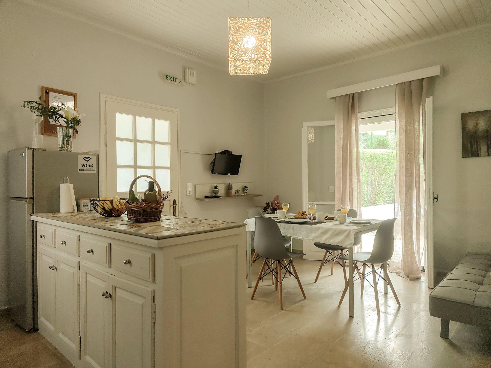 Amalia Ena is a two-bedroom apartment located within walking distance from Agios Spyridon N/E Beach and the Nature Reserve of Antinioti Lake, close to Perithia Corfu, and only five minutes by car from the popular resorts of Kassiopi and Acharavi. It is located in a quiet neighbourhood and is ideal for a family or a group of four people.