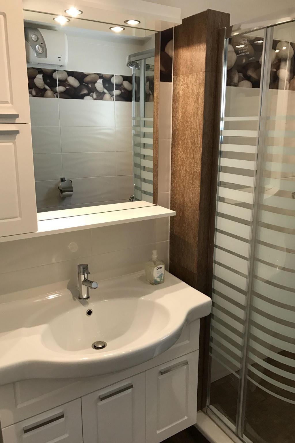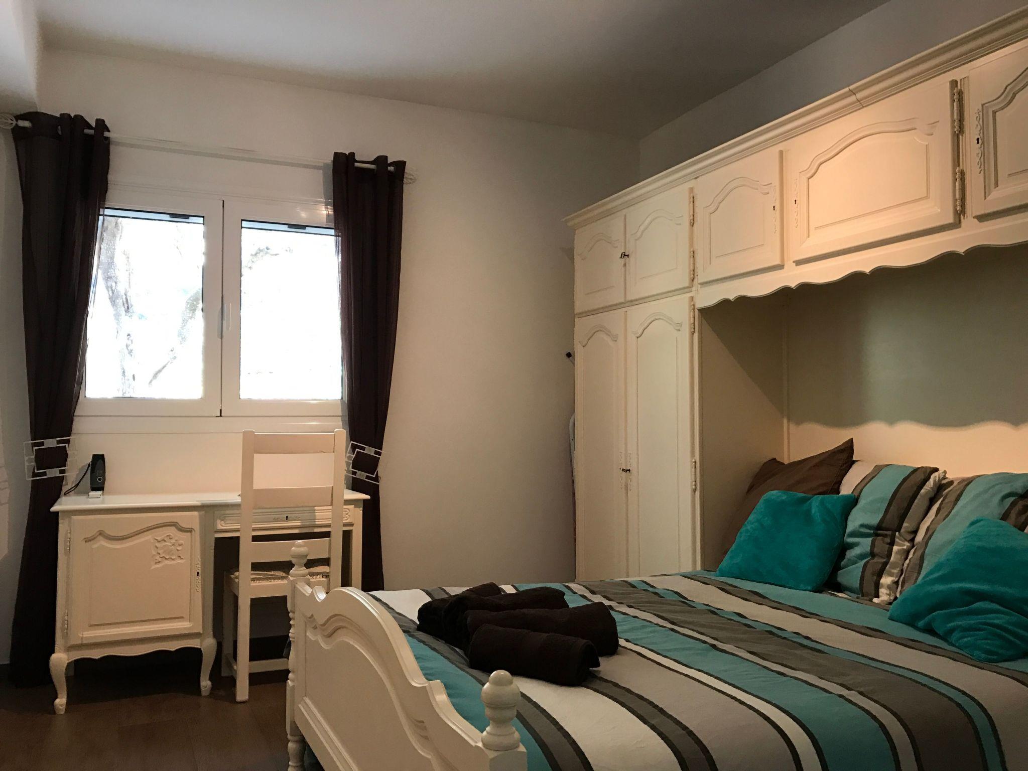 A third bedroom(double bed 160 x 200 cm, air conditioning) with en suite bathroom (bath, washbasin, toilet)