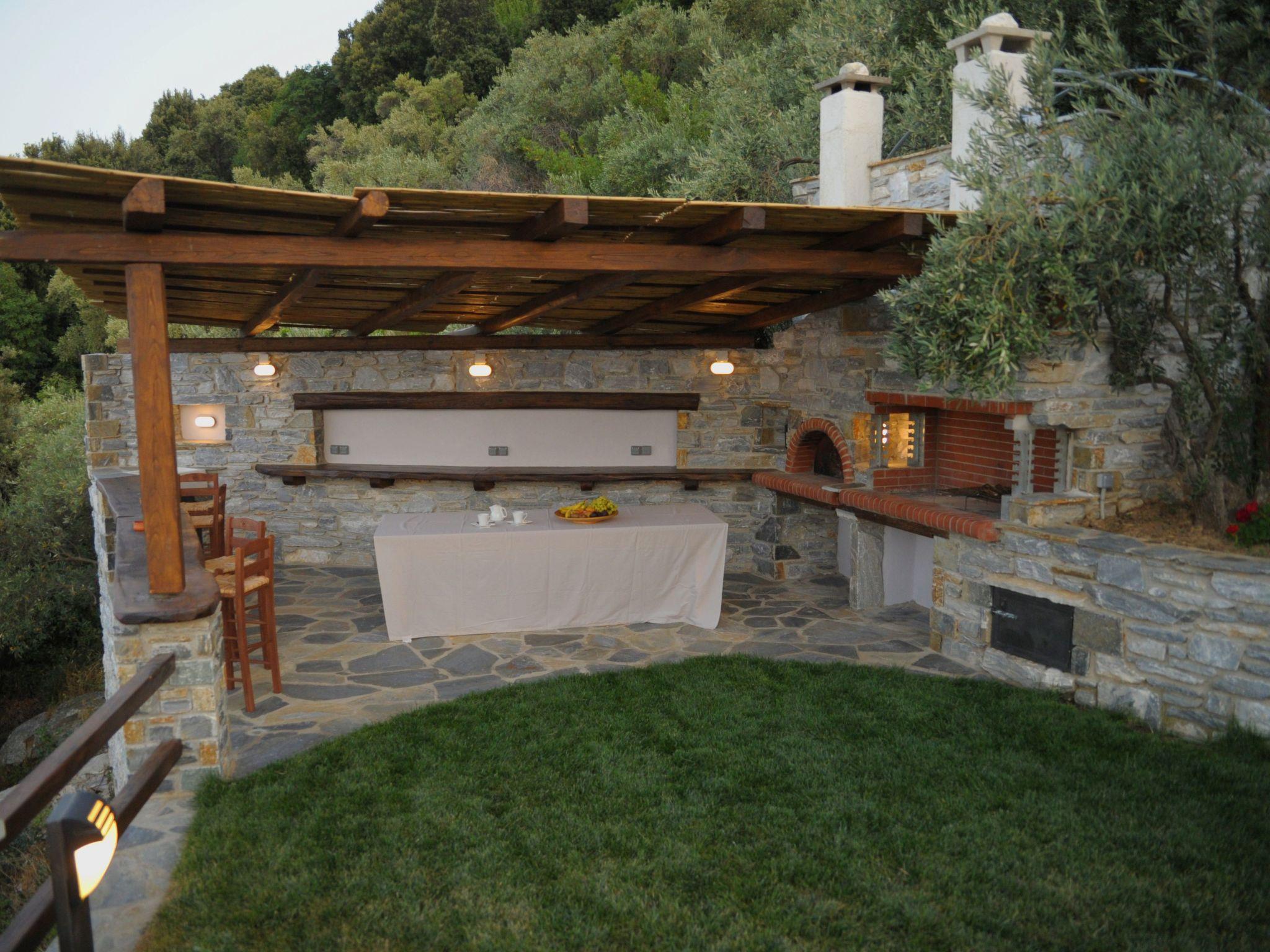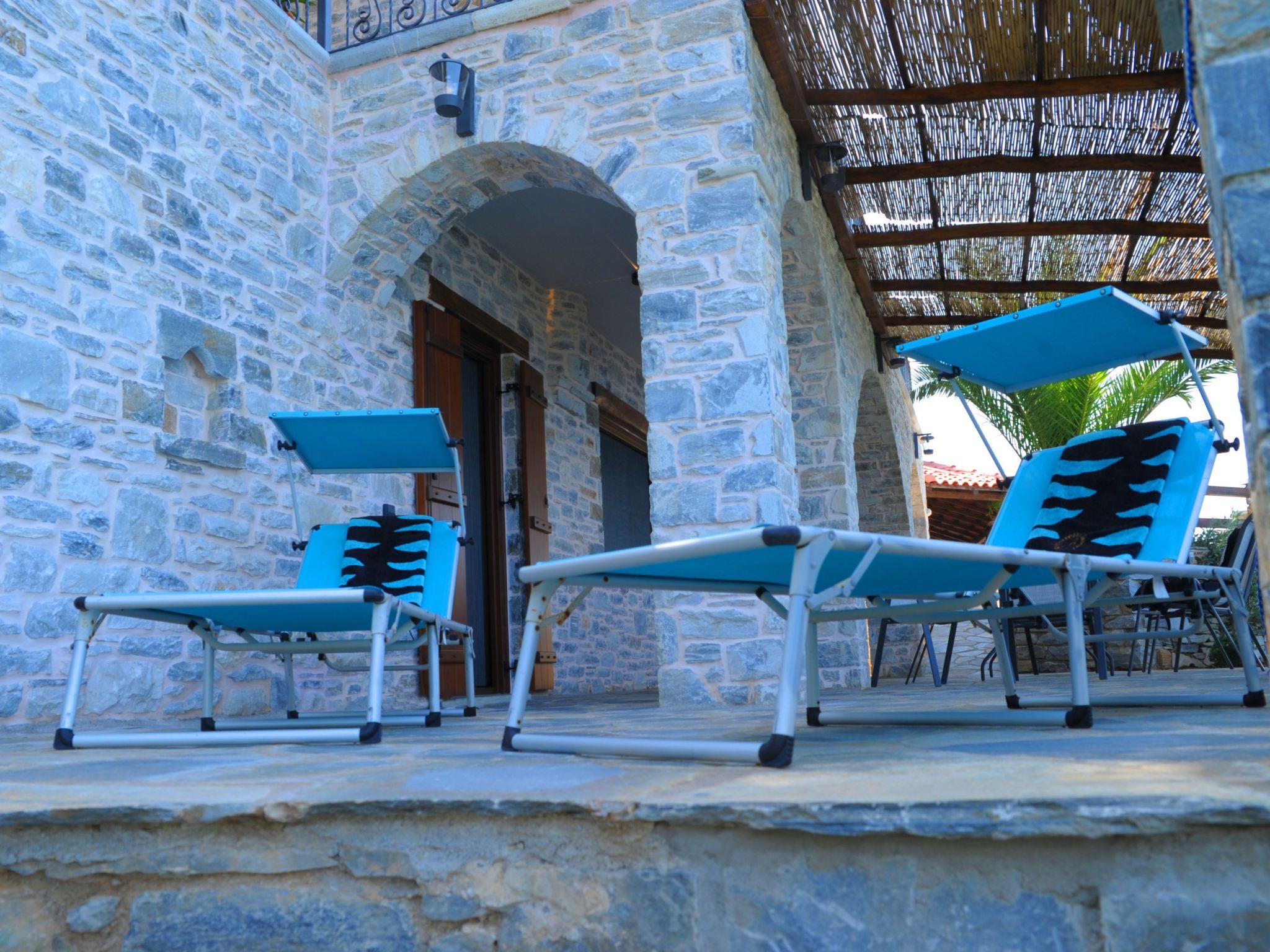The villa is built of stone in 2021 in the foothills of Pelion, Greece. It is surrounded by green mountains and at the same time 2 km from the transparent Aegean Sea. The climate is very pleasant even when it is very hot. The view is of the sea and the mountain. From the villa there are hiking trails in the mountain where the fauna is very varied and very beautiful. In the surrounding area there are several small villages characteristic of Pelion with small restaurants ( Greek taverns ) where you can try tasty, traditional local dishes. The beaches are clean and equipped to satisfy even the most demanding travellers. You can visit small coves and bathe in the clear waters and away from the crowds.