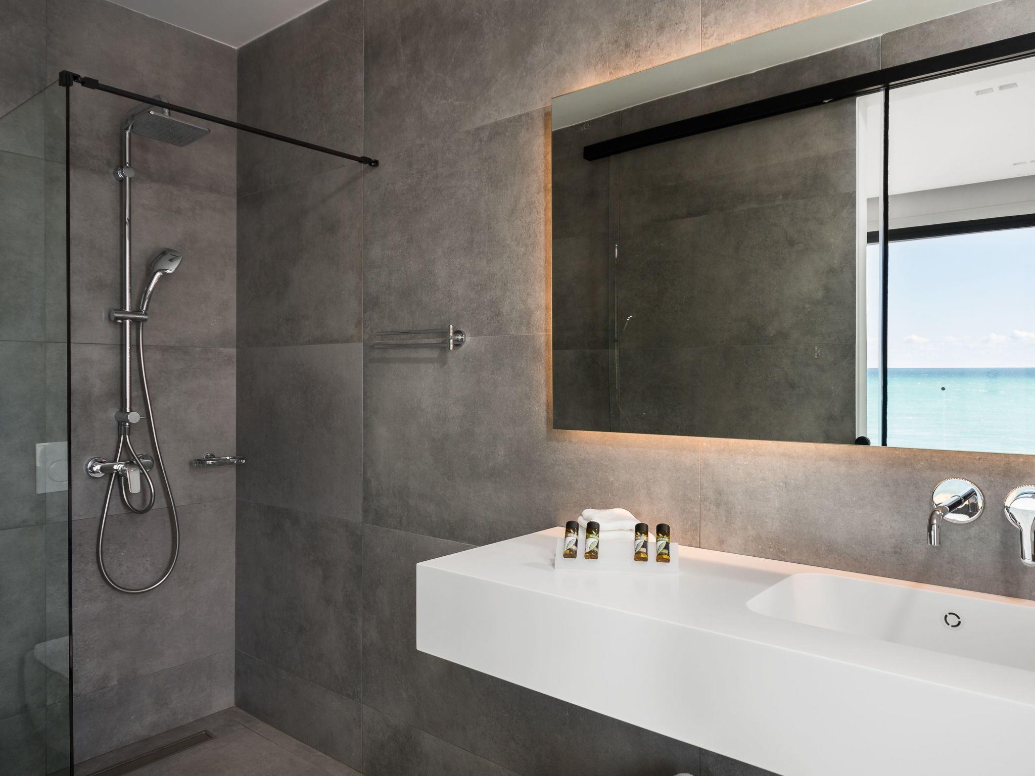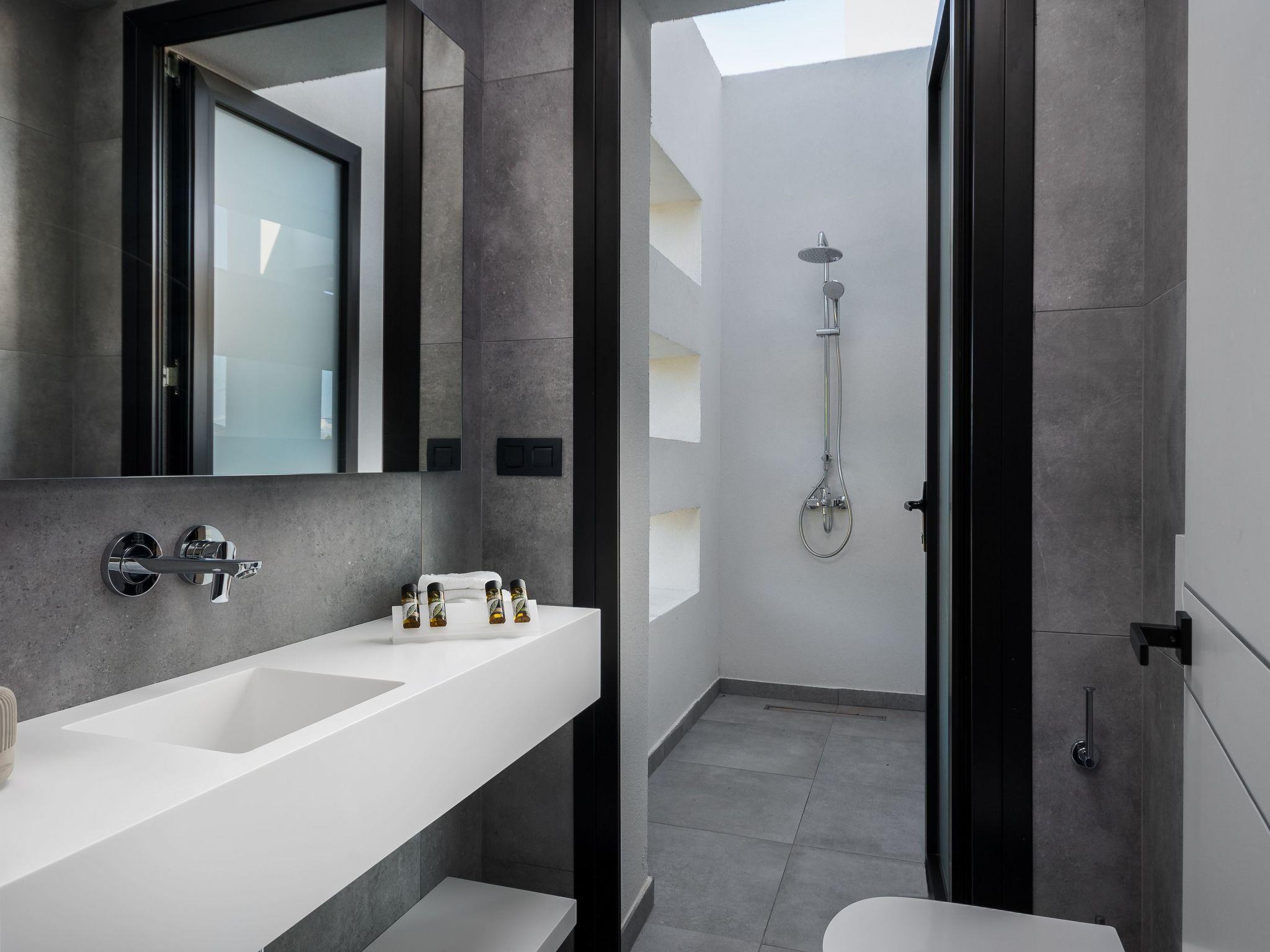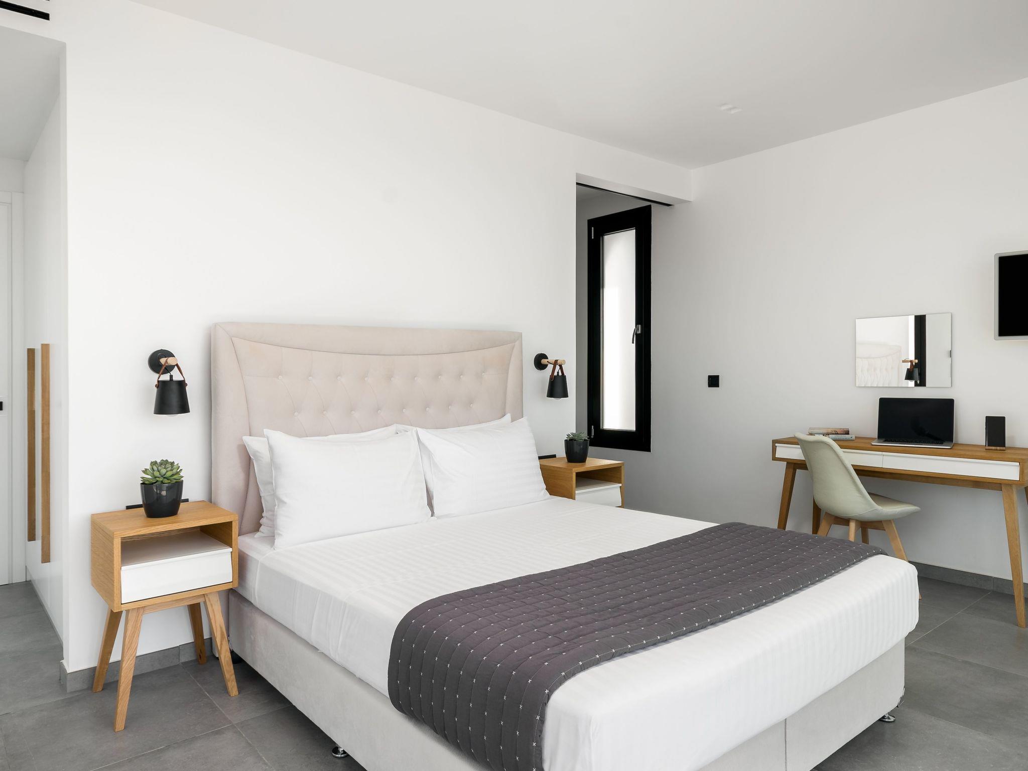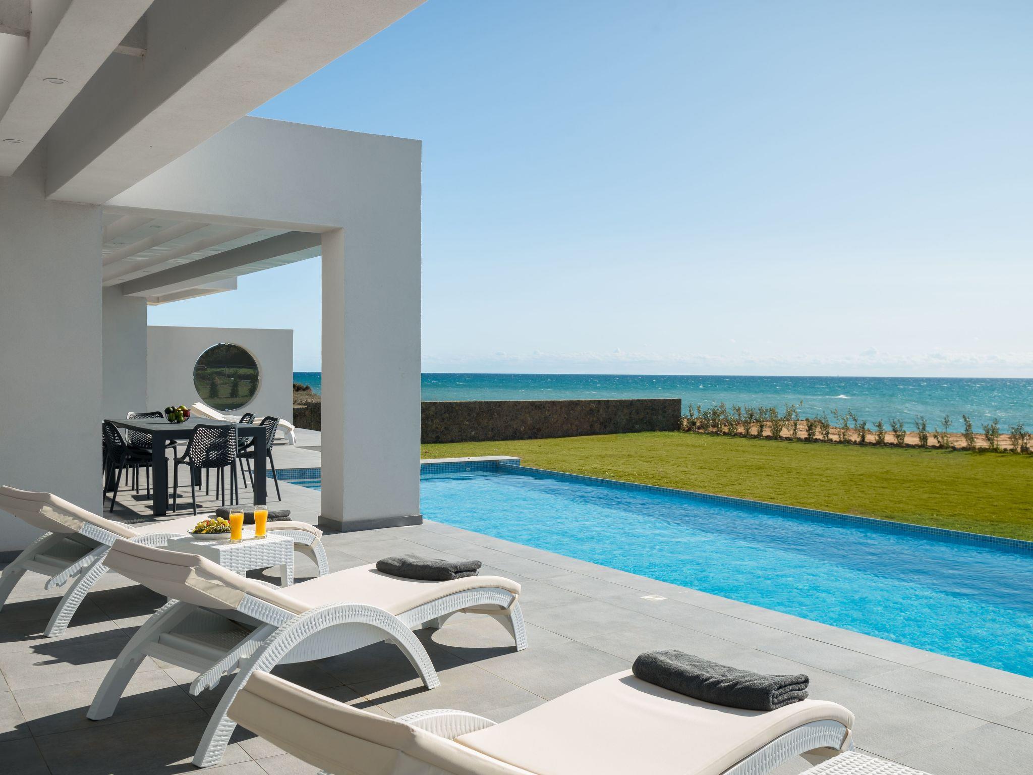 Newly built contemporary villa, with a minimalist design, build with of the best materials and equipped for all your needs to enjoy this luxurious accommodation in a wonderful location by the sea.Luxury Seafront Villa with Private heated infinity Pool, jacuzzi on the pool, and playground for the children. Amazing Sea View. Peaceful location ideal for families seeking relaxation. Secure parking. The sunset from this villa is is an unforgettable experience.We are pleased to inform you that the villa from the 2023 season has direct access to the beach within the plot.Our beach below the villa has two umbrellas and four sun beds for private use by our clients.Near to our villa located Halikounas beach (10 min walk), recently described in Forbes magazine as one of the top 10 safest beaches in Europe for safe social distancing.