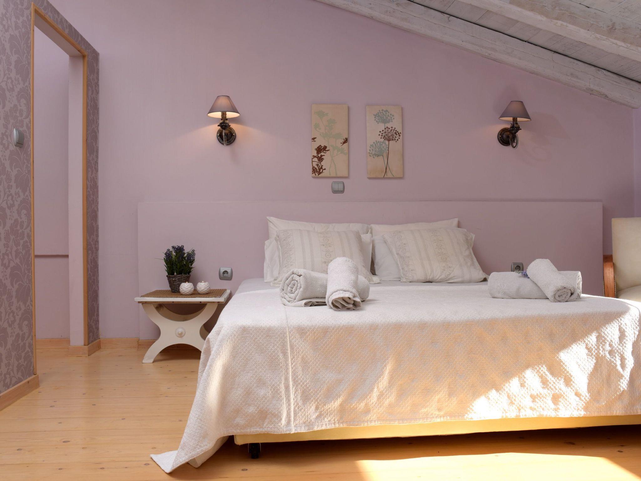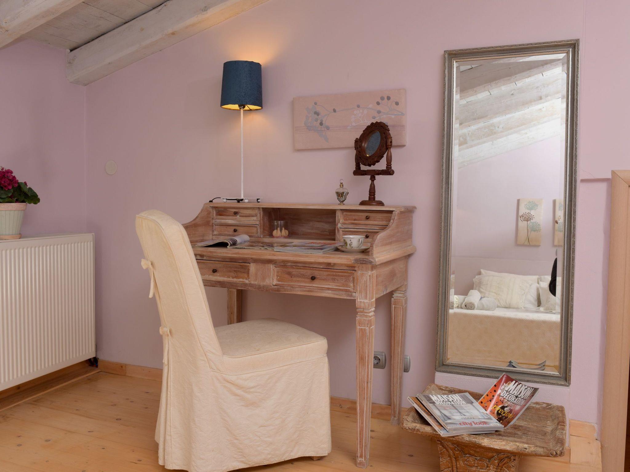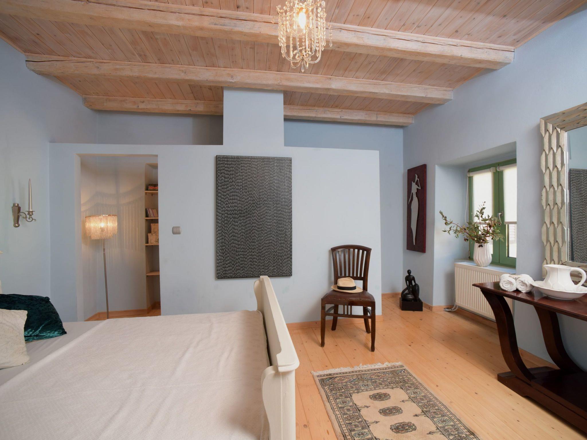 Following upwards the wooden stairs leads you into the last- high attic- room with its personal wardrobe space. It consists of two single beds, which, uppon request, could be transformed into a double bed with an additional mattress.