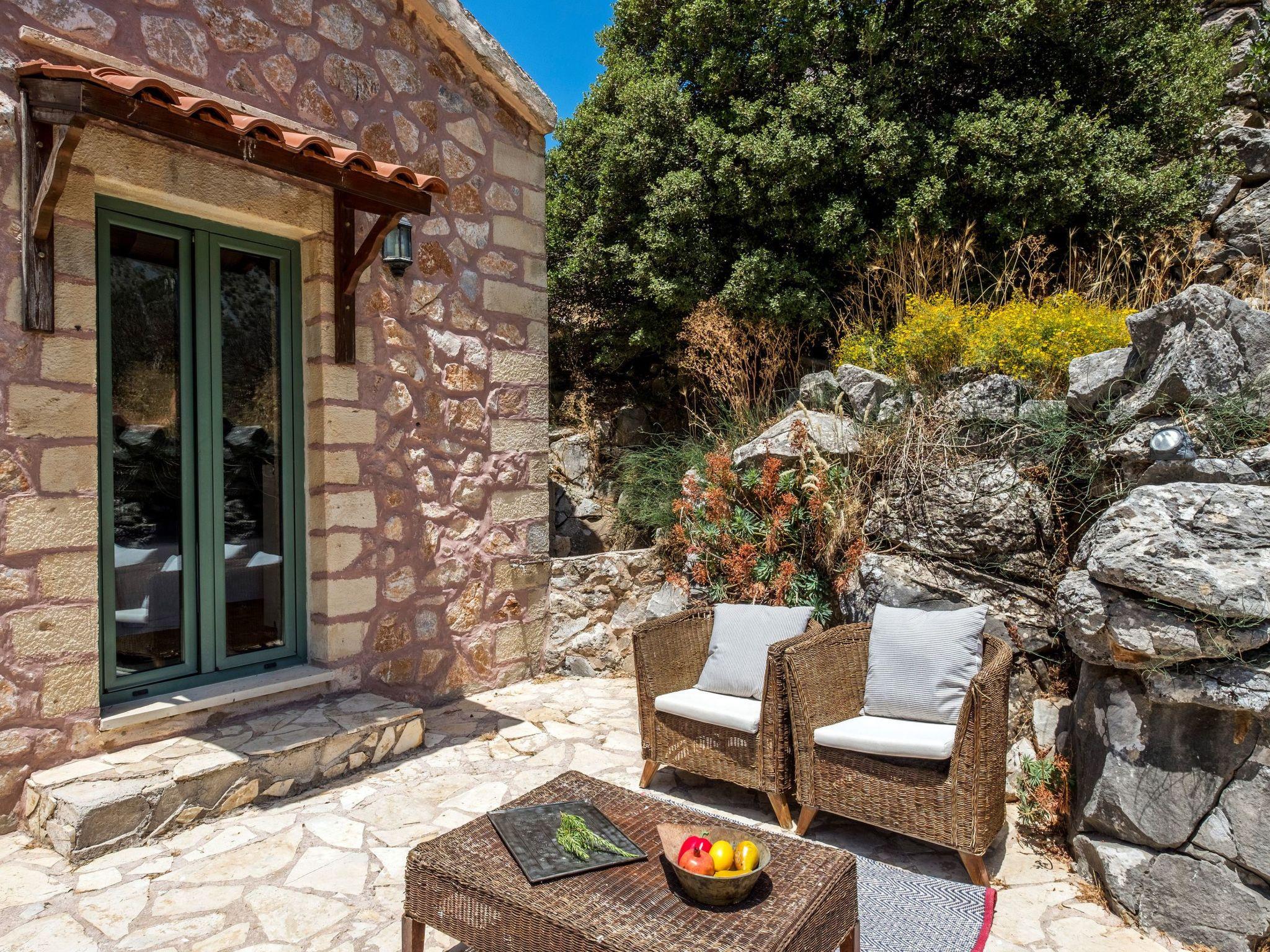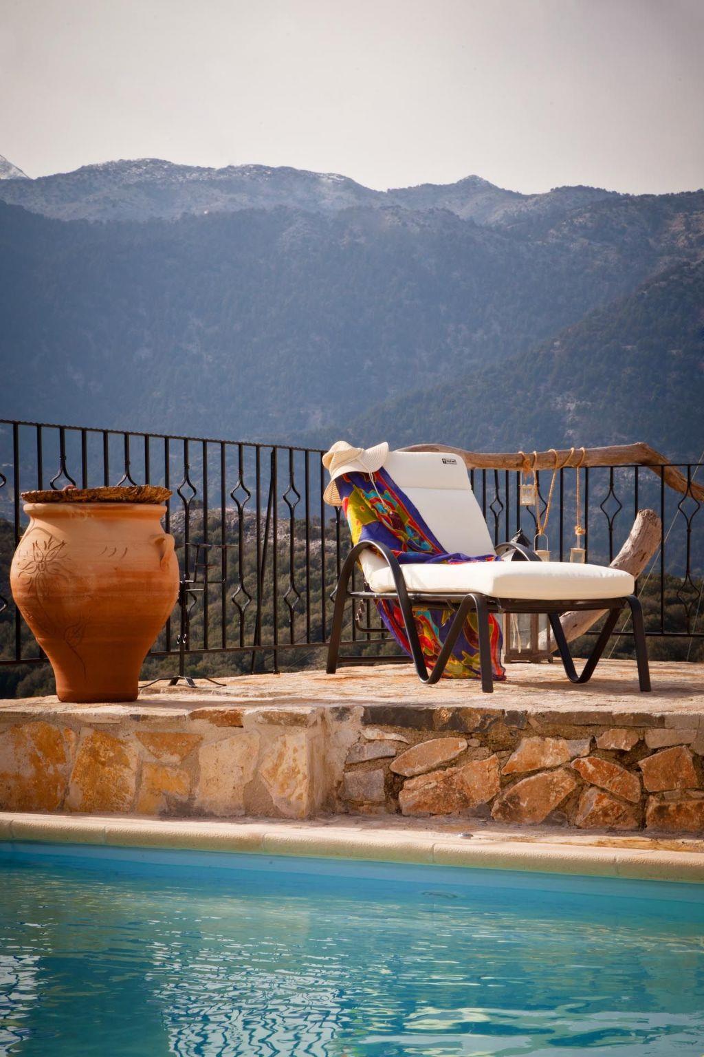 There are four little villages that make up the plateau: Ammoudari, Goni, Kares and Petres, which are all sparsely populated with a total of approximately 440 permanent residents. The location is ideal for mountain lovers who are looking for quiet holidays, it provides for a peaceful and pleasant stay.Fully detached natural stone villa with a private illuminated swimming pool and beautiful views from the sunny terrace - a mountain paradise
