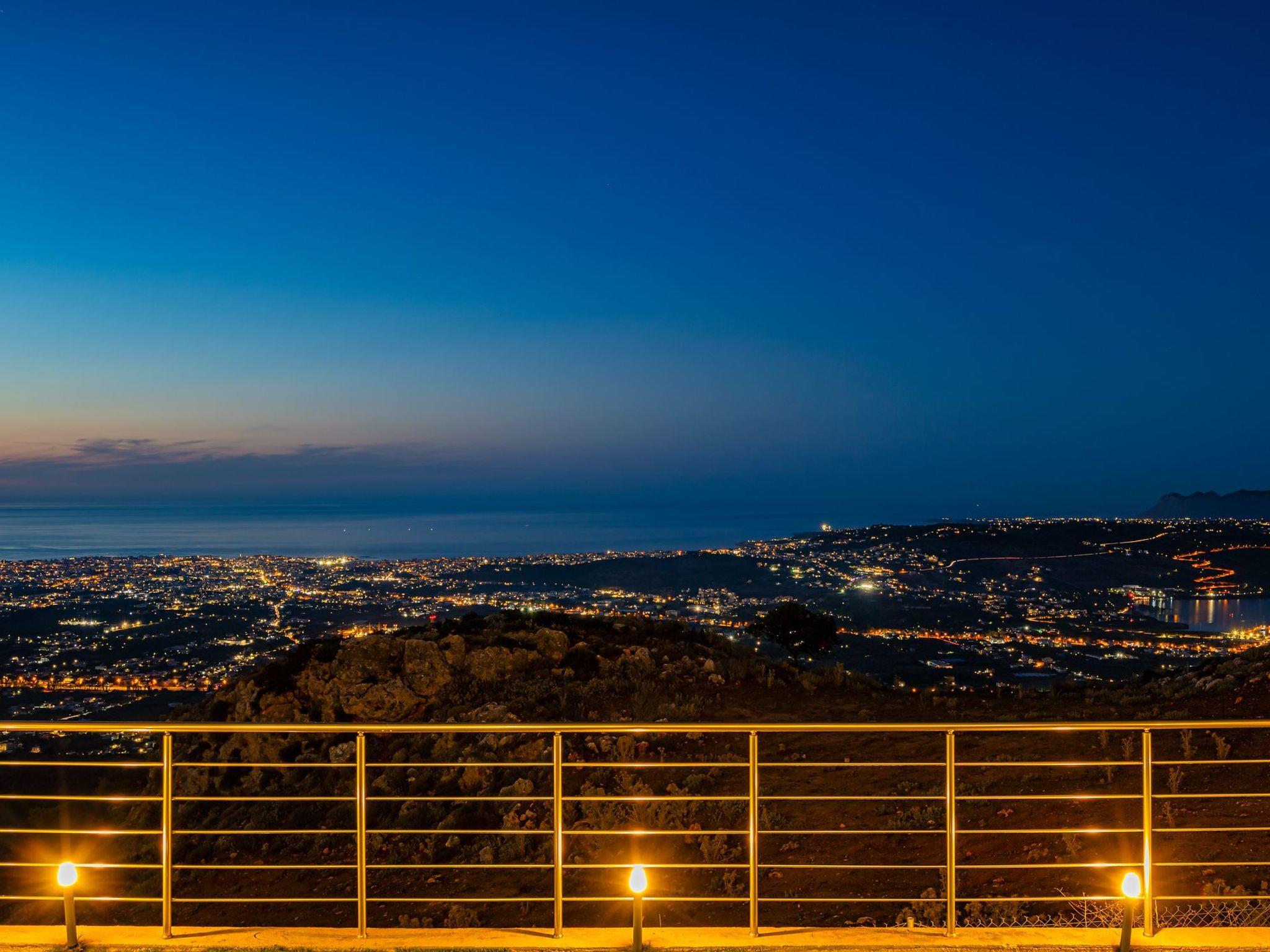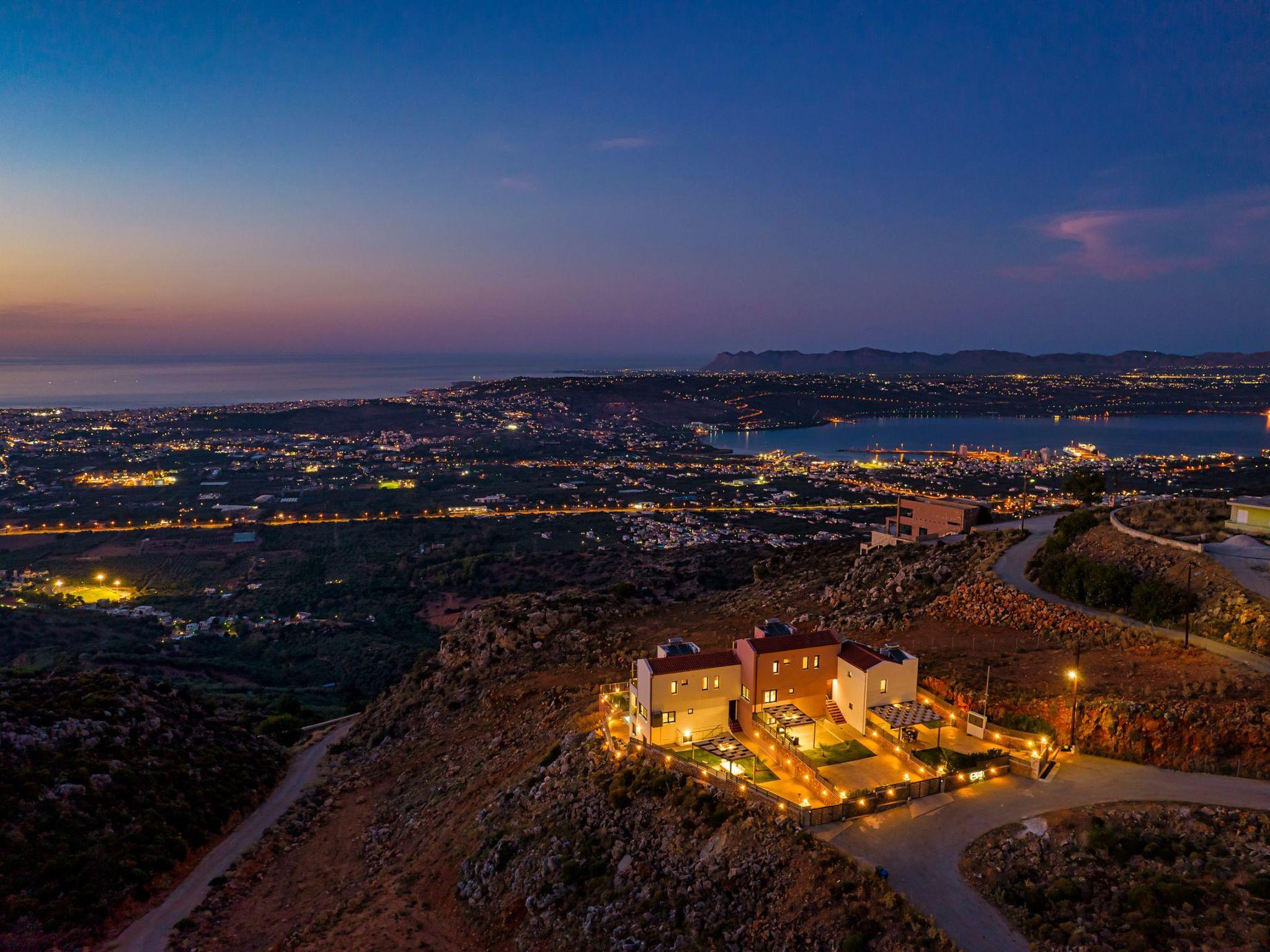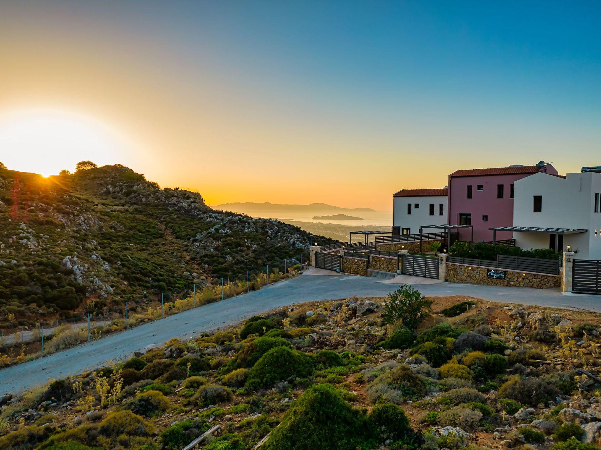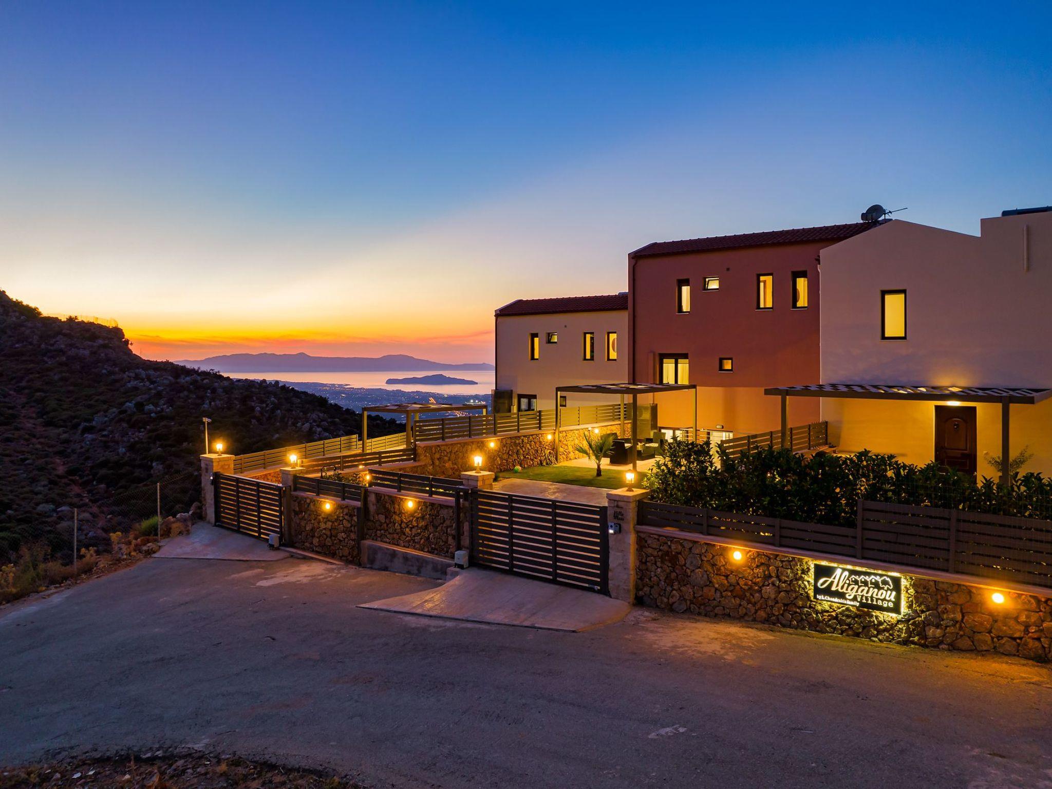 The location of Aliganou village is ideal because although it is a short distance from the centre of the city of Chania (10 km), you are in a completely peaceful place, in the Cretan nature.Villa Mari was built on the side of a mountain (The area is called Aliganou), and you have a panoramic view from east to west.The view you have from this area is the best you can find in the prefecture of Chania because you can see the bay of Souda, the plain of Chania, the city of Chania, the Cretan sea and a wonderful sunset to the west (Kissamos).Besides the three villas that make up Aliganou village, there are very few houses in the same area. The area is not yet developed touristically, and this is probably the best time to discover it.You will find a mini-market at a distance of 9 minutes by car, and at a distance of 14 minutes, you will find a supermarket, a bakery, a pharmacy and other businesses.