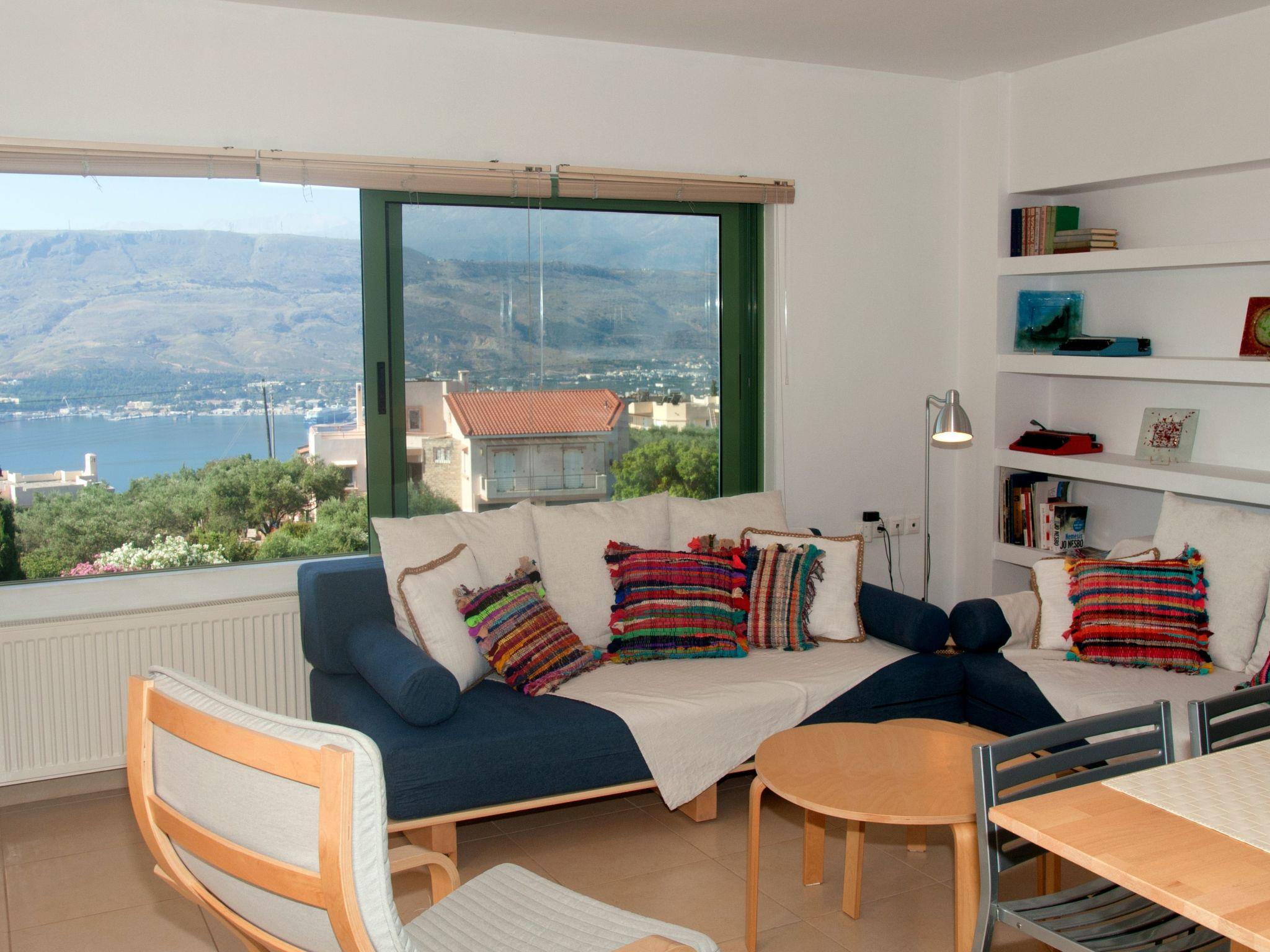 It is a studio of 50 sqm, fully equipped in a modern style, yet in direct contact and harmony with the nature around it. Situated on the eastern side of a larger home where our family lives, on a private plot of 4 acres full of olive trees and pine trees, shrubs, herbs and wildflowers of local flora and with a splendid view of the Souda bay and the mountain range of the White Mountains.All around, the tweets of birds and the hum of cicadas is heard.