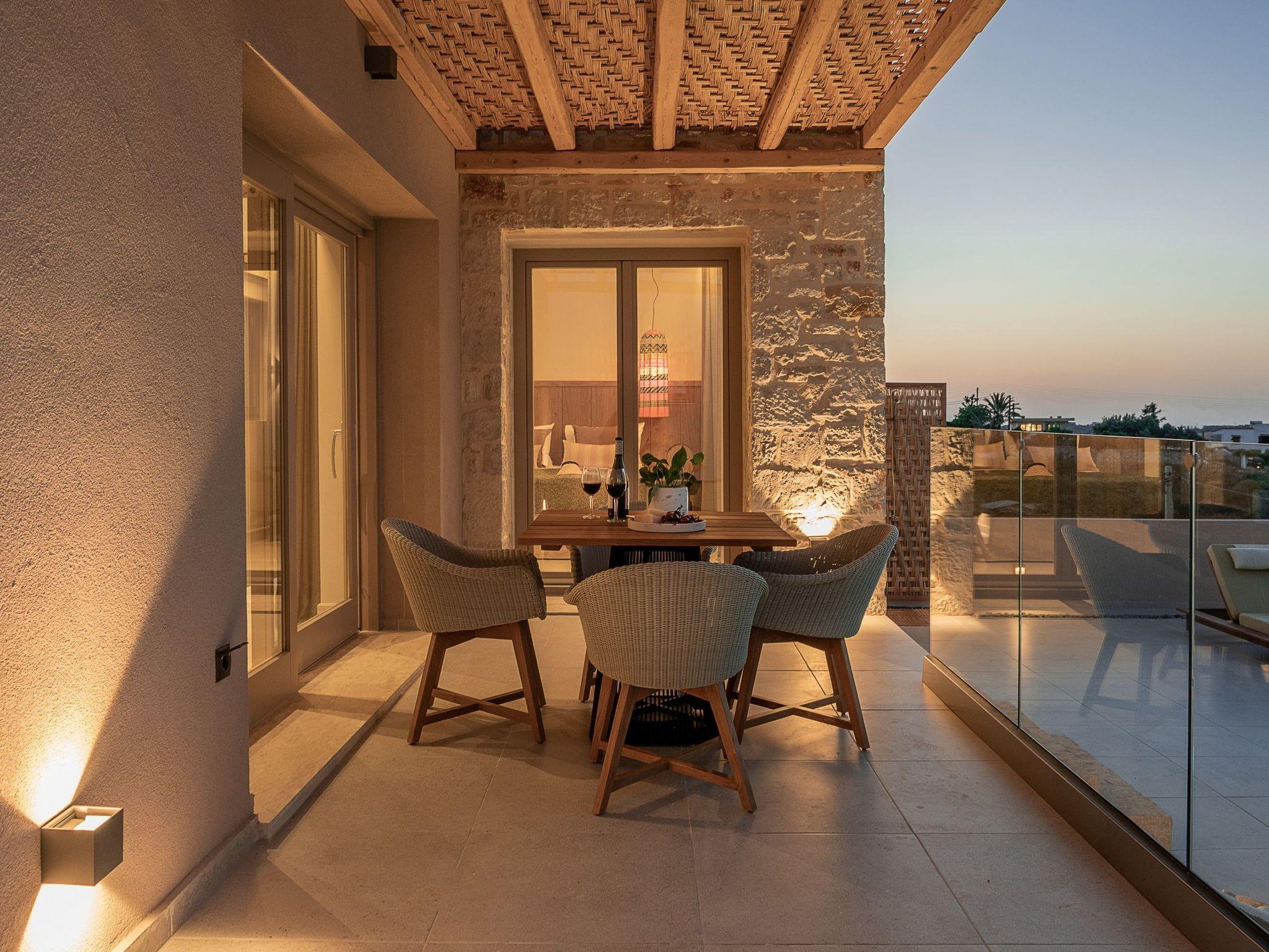 Kokomo Villas are located on a hill overlooking the bay of Lygaria in the greater area of Agia Pelagia. It can be reached from Heraklion/Heraklion Airport in about 25 minutes. It is easily accessible from the Highway and ideal as a base for exploring places of interest. Although close to various magnificent beaches, restaurants and supermarkets, it is also perfect for relaxing in privacy.The villa is characterized by high aesthetics and stunning panoramic views of the Cretan Sea. The earthy tones of the spaces merge into the deep blue of the sea and sky, offering an unforgettable sense of harmony and gentleness. Every aspect, material and element has been carefully selected to wrap you in a state of calmness and satisfaction. All you need to do is enjoy.Villa Thea hosts 1 bedroom with king size bed and panoramic sea view as well as directs access to the front veranda. Guests will enjoy the lovely stylish bathroom with double sinks and double showers. The spacious living-room with a gorgeous view of the sea is connected to a fully equipped open kitchen and dining room. The living room also opens out to the front veranda, which offers a dining table and barbeque (gas). Just below the veranda, there is the pool area which has a private swimming pool with sunbeds, an outdoor shower and lounge poufs.Furthermore, Kokomo Villas has solar panels installed to provide some of the energy needed in the property through them. IMPORTANT NOTICE: This property is not suitable for children from 2 to 7 years old, since there is an infinity pool and some not covered areas