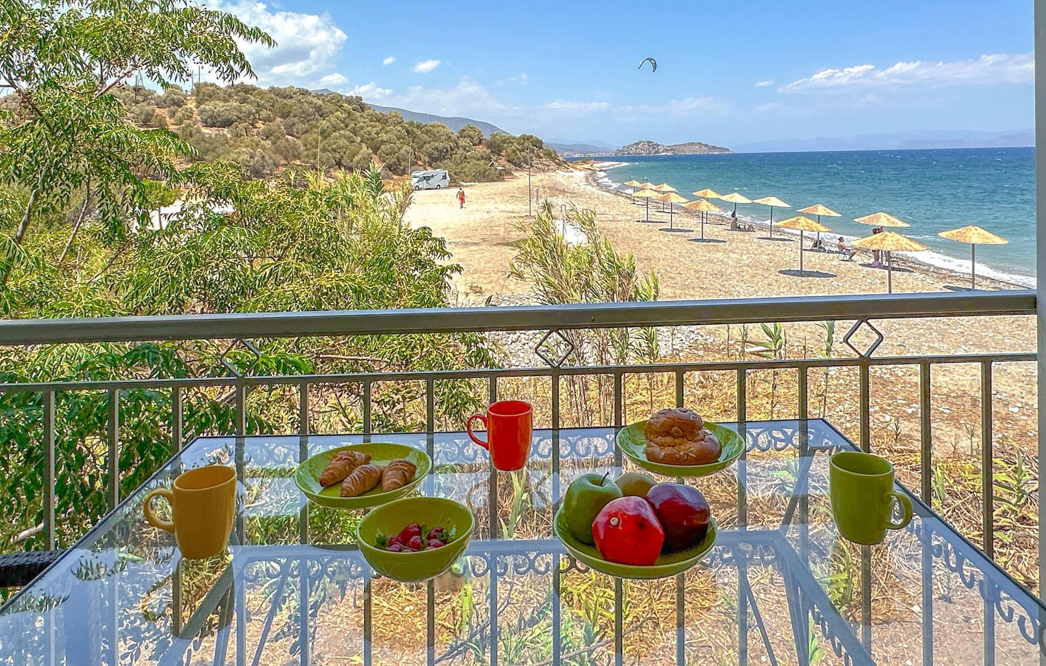 Sæt hverdagen på pause og tilbring en afslappende ferie i lejligheden, som har praktisk indretning lige ved stranden. Find jer godt til rette her og brug lejligheden som udgangspunkt for skønne dage på stranden og spændende udflugter. Begynd jeres feriedage med en god morgenmad, inden I begiver jer ud for at udforske området. Terrassen lægger op til at afslutte begivenhedsrige dage med et glas vin og en vidunderlig udsigt.