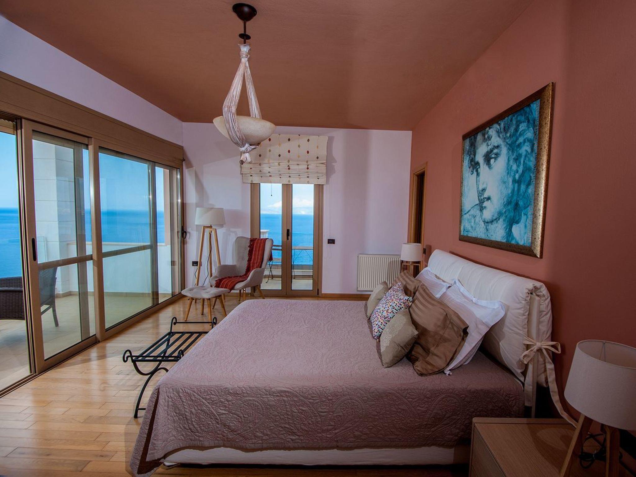 On the upper floor there are four bedrooms. The master bedroom with a double bed has en-suite bathroom with a shower, the second bedroom has a double size bed, one has two twin beds and the fourth one has a single bed. These rooms have access to a large veranda with amazing views to the sea and the Gulf of Agios Nikolaos. There is also a bathroom, with a Jacuzzi bathtub.