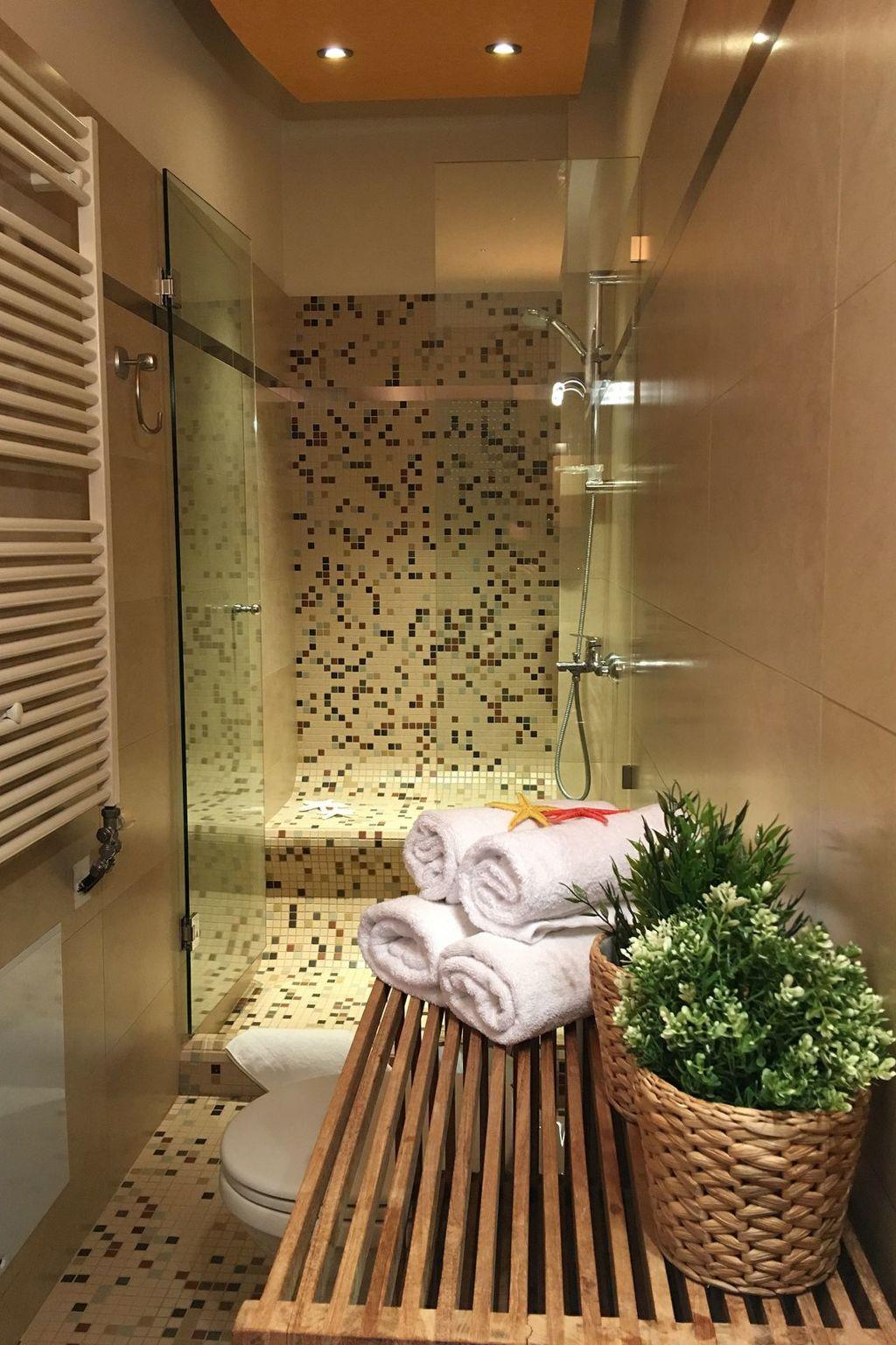 The ground floor consists of an open plan area with large openings that allow the sun in the house, overlook the pool and garden and offer stunning views to the Mirabello Bay, the islet of Agioi Pandes and the Sitia Mountains. The living room has a fireplace, a sitting areas with comfortable sofas and a smart TV. Right next is the dining area, a beautiful kitchen equipped with a range of modern appliances where you can prepare breakfast or dinner for your loved ones.