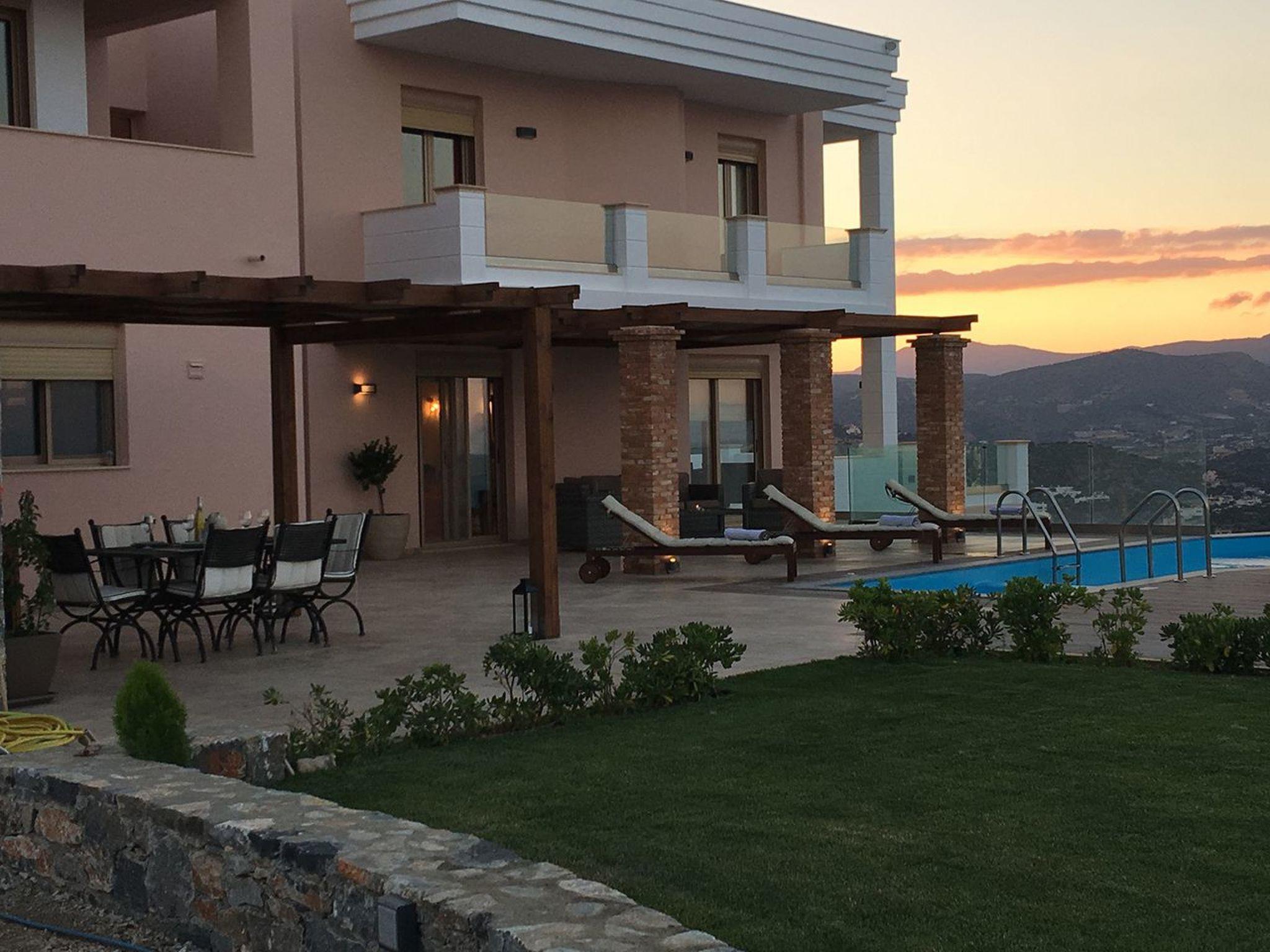 The villa is built on a 4.000 sqm plot on a hillside and offers beautiful views of the Mirabello Bay. Outside the main living area is a big terrace with a 45sqm pool, modern comfy sun loungers, a shaded dining area