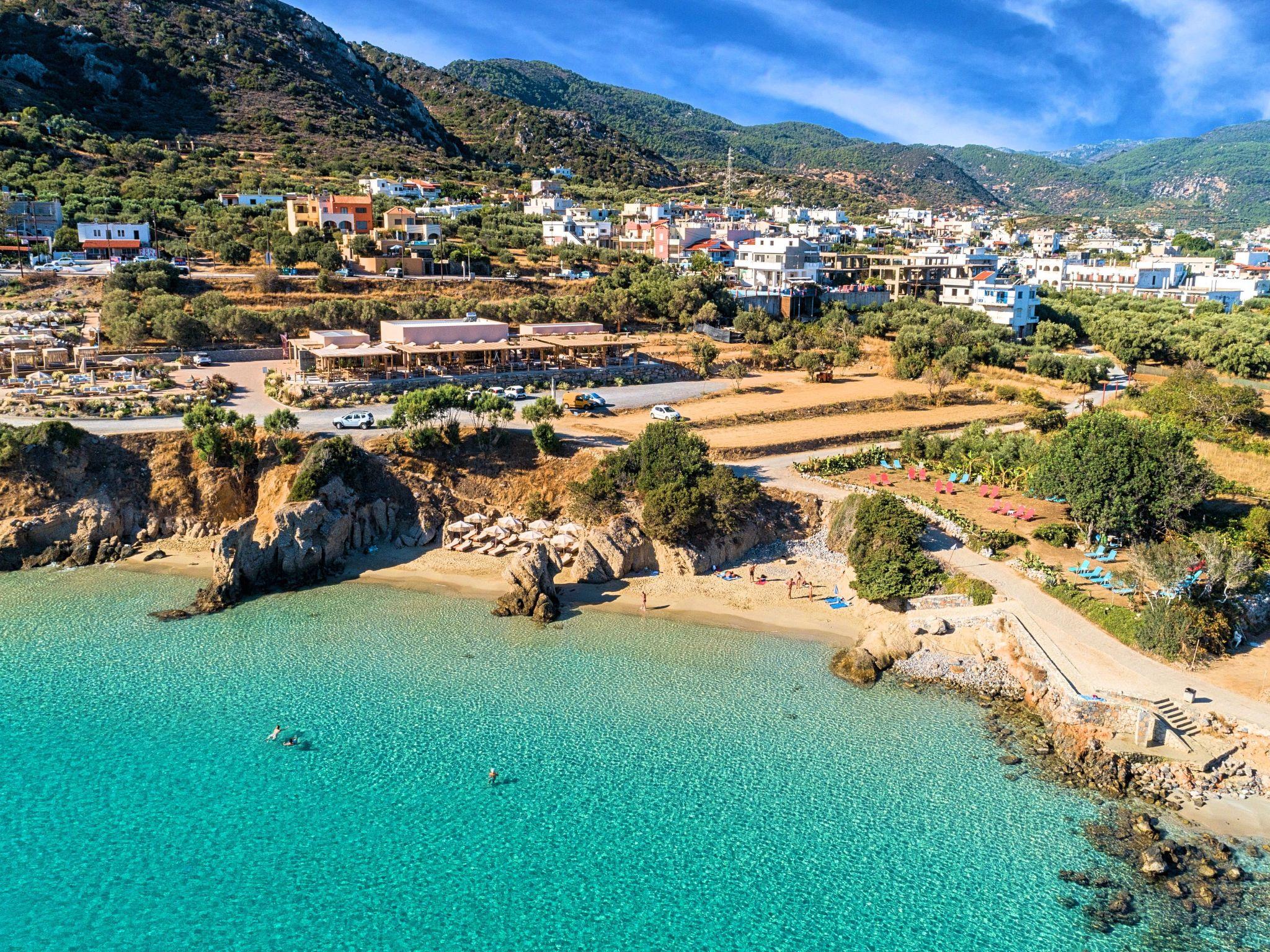 Nestled in the charming area of Vathi, Crete, Villa Carolina's location allows you to immerse yourself in the local culture and beauty. The beach, just a kilometer away, beckons for leisurely days spent by the sea. Shopping and dining options await in the nearest town center, located only 1900 meters from your holiday home, offering both convenience and the chance to explore the local lifestyle. A grocery store nearby ensures that all your provisions are easily at hand.