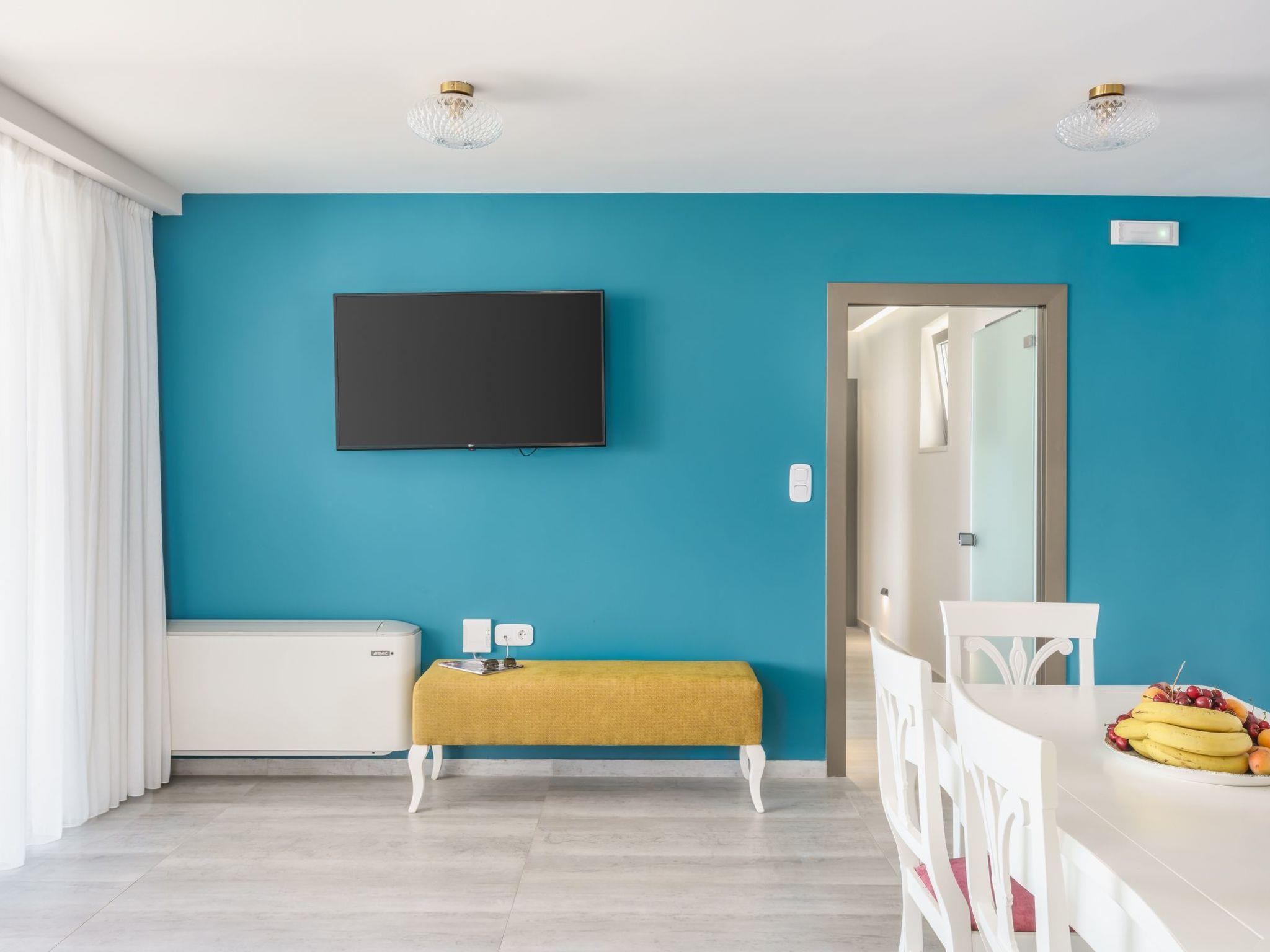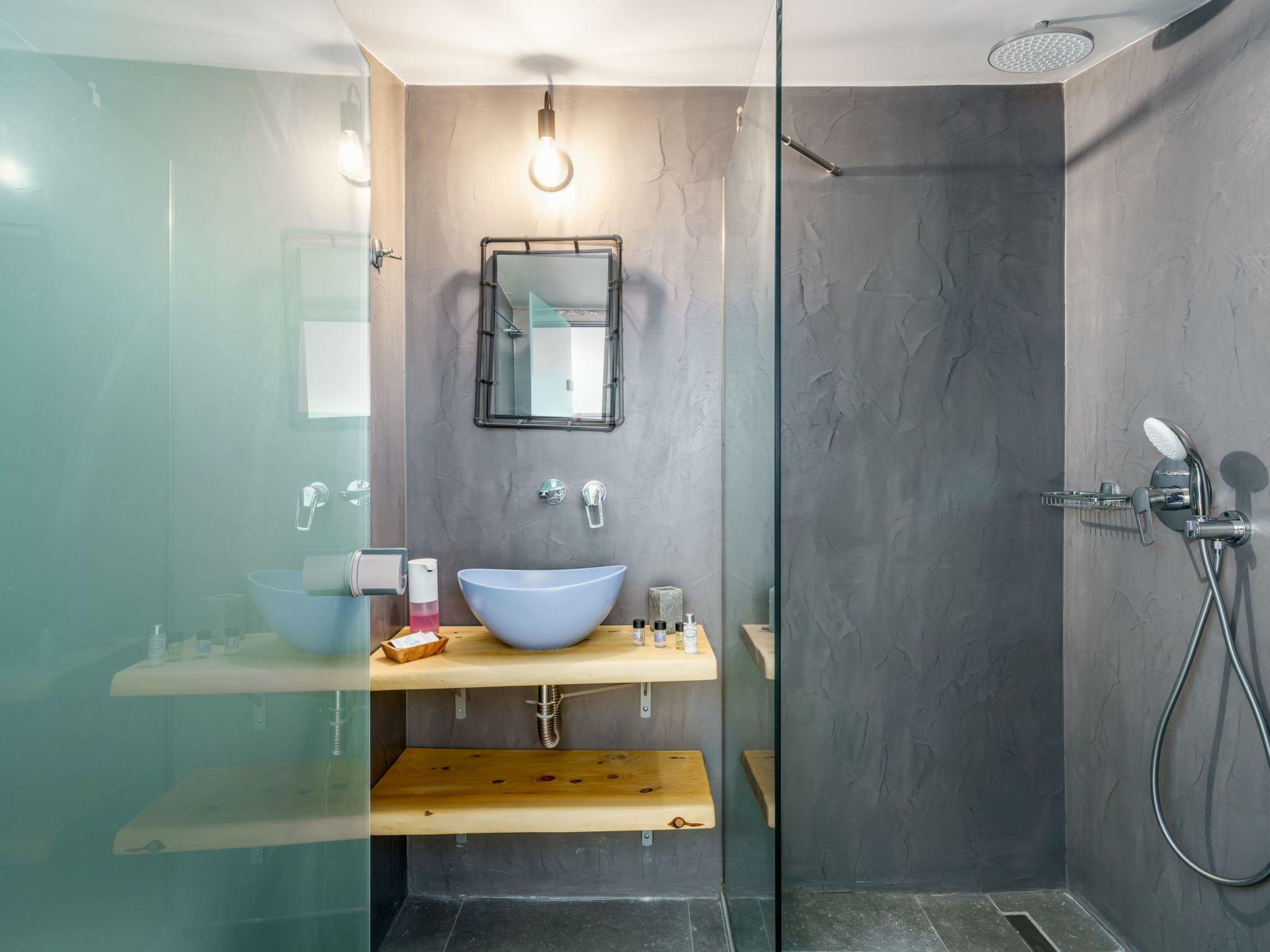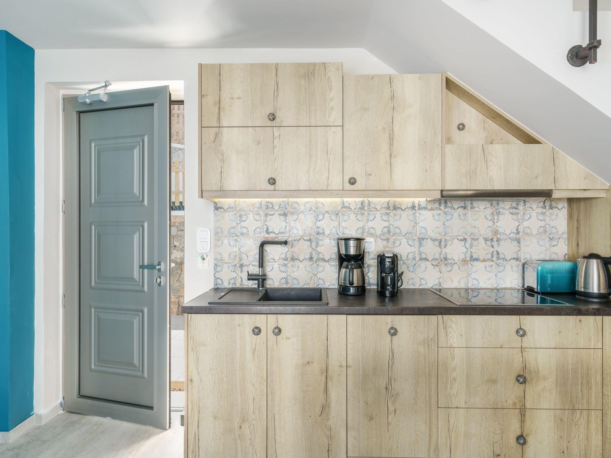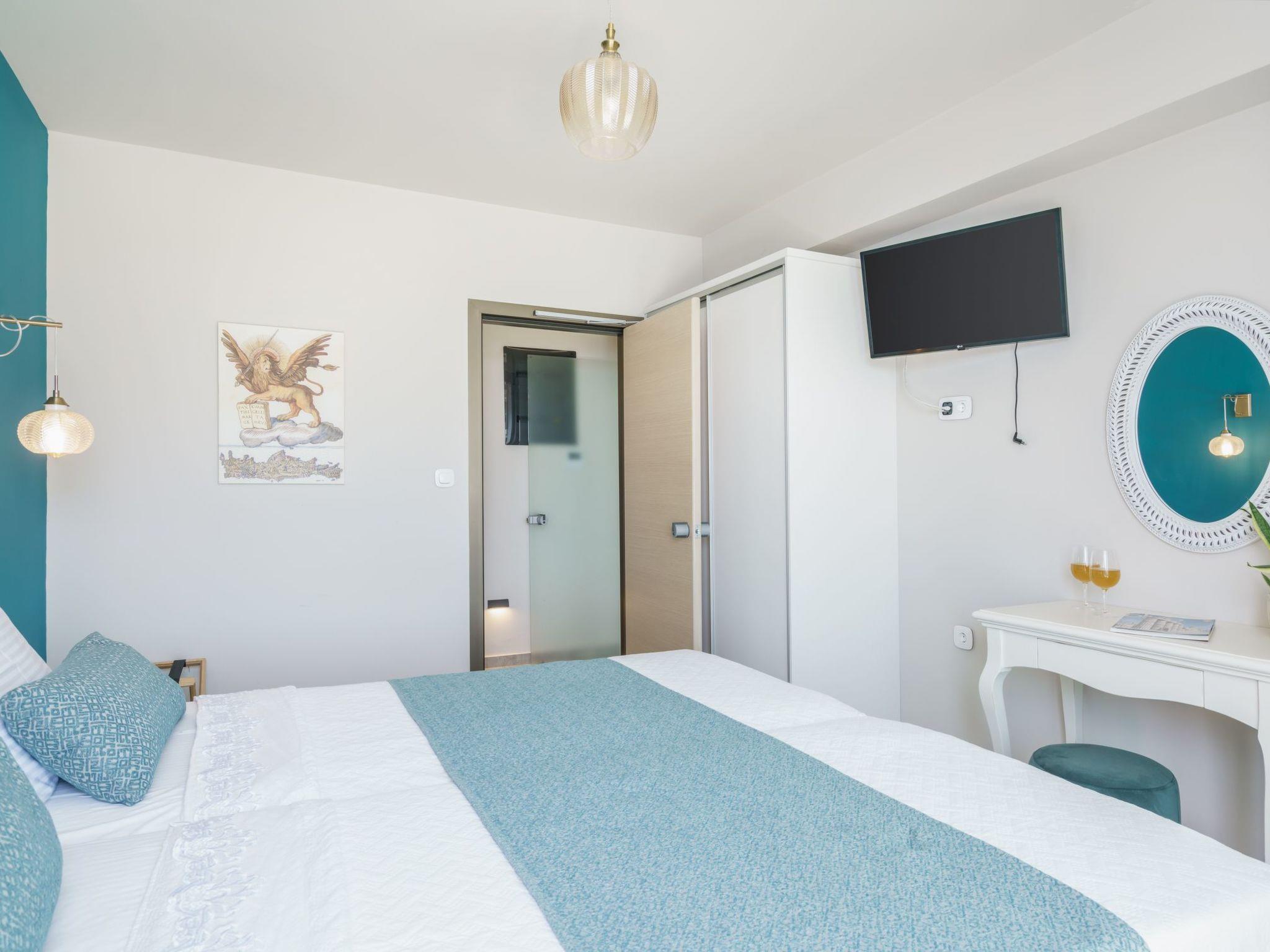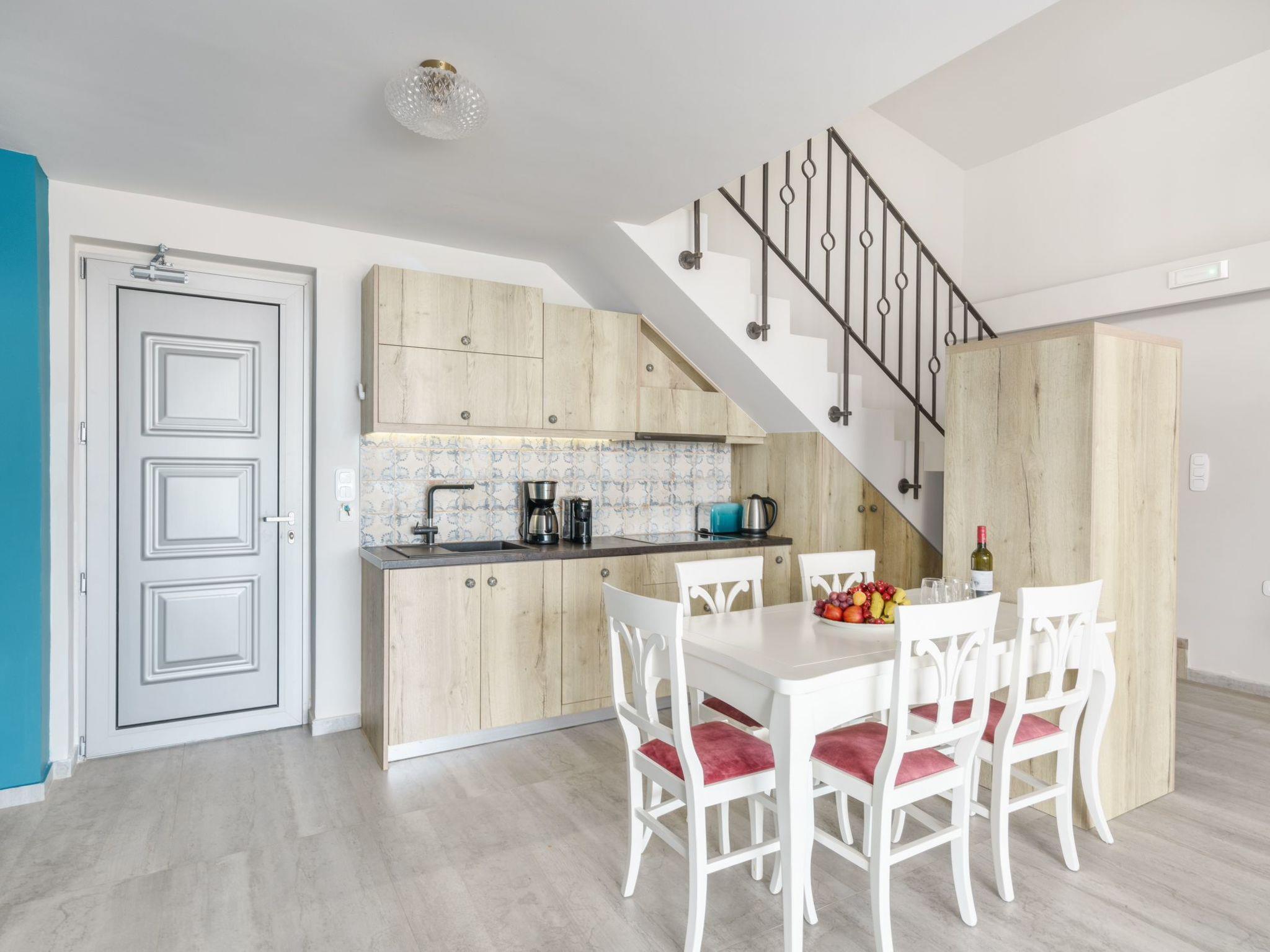 Outside, Villa Venetsianiko boasts a private garden oasis with an inviting outdoor pool, built-in BBQ area for al fresco dining, and ample seating and dining spaces that create a seamless indoor-outdoor living experience. Pool towels and an outdoor shower add to the convenience and enjoyment of the Mediterranean island vibe.