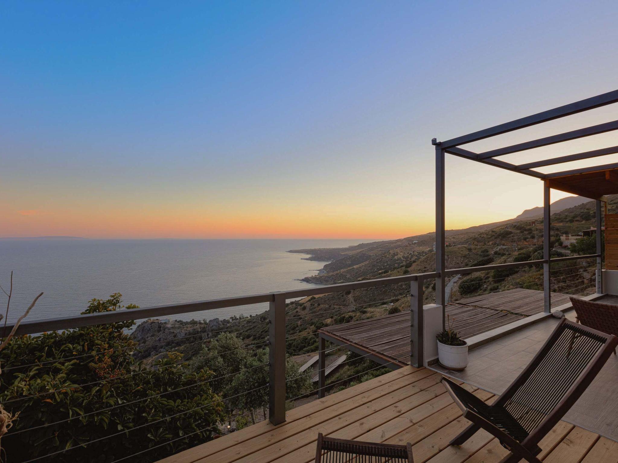 This Greek luxury villa is in the popular holiday destination of Rodakino (which literally translates as “Peach”), in South Crete. The villa is close to the quaint village of Plakias and is an excellent locale from which to explore various Cretan attractions. Villa Stefanos is home to modern, classy aesthetics and awe-inspiring sea views. Villa Stefanos’s lounge is tastefully furnished and equipped with a large TV and trendy sofas. The open-plan layout of the holiday home’s living area sees the dining and kitchen areas adjacent to the lounge and stylishly furnished and equipped with all the mod cons. The villa’s living area has large glass doors leading to a shaded balcony with outdoor dining furniture and a private swimming pool area complete with sunbeds, umbrellas, a hammock, and a shower. The luxury villa also offers access to a ping pong table and a vineyard. Villa Stefanos has 3 elegantly decorated bedrooms, each offering contemporary desk and wardrobe spaces. The first is a single bedroom on the ground floor and has one bed. The other two bedrooms are on the floor above and have two combined twin beds in each, with glass doors and a large balcony providing spectacular sea views. There is a full bathroom on each floor and a storeroom with a safe-deposit box on the ground floor. The Stephanos luxury holiday villa offers a welcome pack of fresh fruit, wine, and coffee capsules for guests to enjoy. A cleaning service is provided 3 to 4 days per week as required and there is private parking for 1 vehicle. Book your luxury vacation at Villa Stefanos and let its sophisticated style wash over you as you revel in the splendor of a perfect Greek getaway!