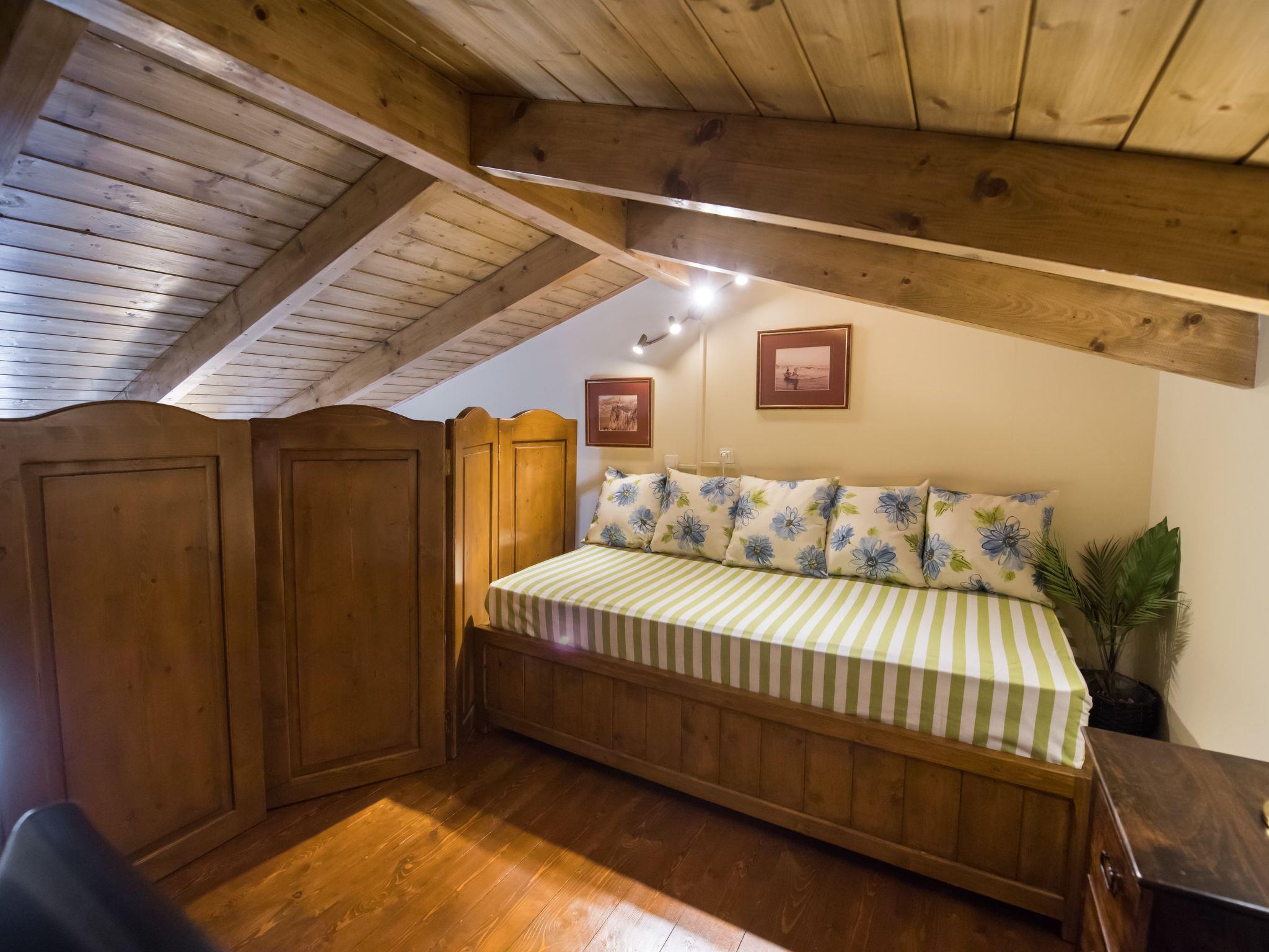 Within this exquisite apartment, guests are invited to enjoy a blend of comfort and style across its meticulously arranged spaces. The interior spans approximately 32 m² with an additional cozy 8 m² maisonette level. It features an inviting living area with a convertible single bed sofa and a flat-screen TV, seamlessly transitioning into a fully-equipped kitchenette boasting modern appliances including a double induction hot plate, a mini oven, and a Nespresso coffee maker. The open-plan design extents into a dining area, highlighted by a sea view balcony that promises serene mornings and tranquil evenings. The accommodation further includes a master bedroom with a king-size bed and an additional mezzanine level accessible via a wooden staircase, designed to serve as a second bedroom with a single sofa bed, ensuring ample space for every guest.