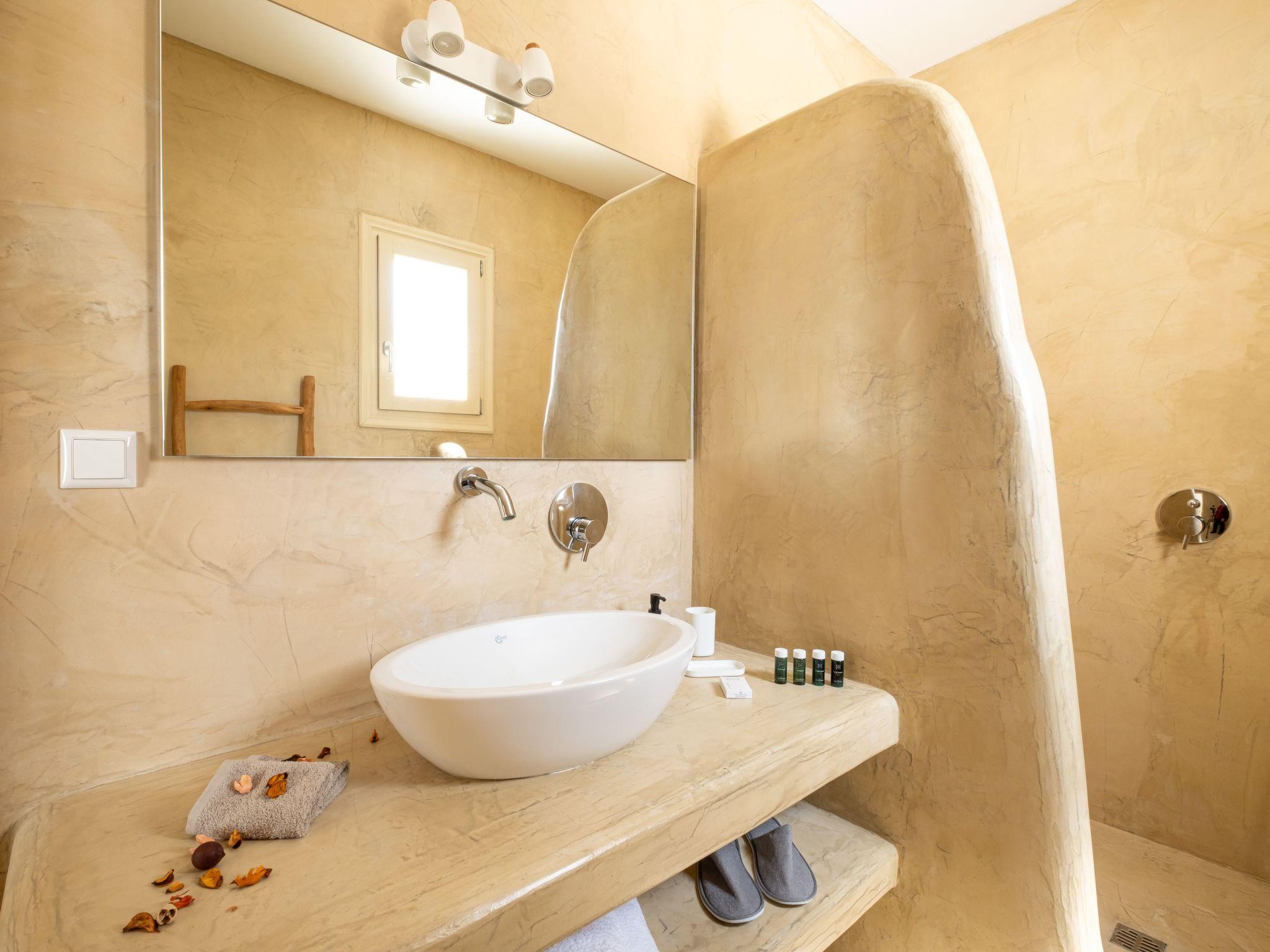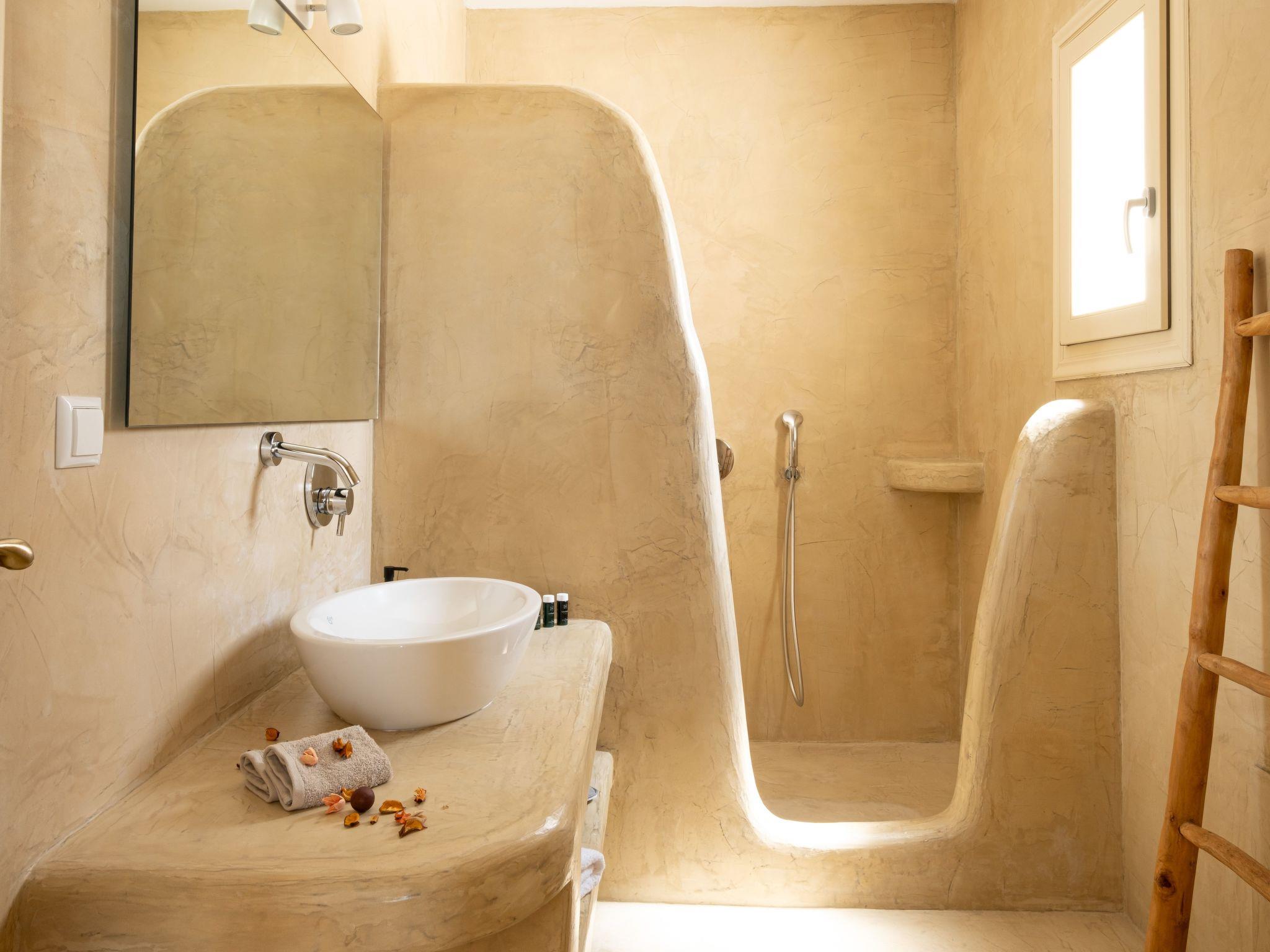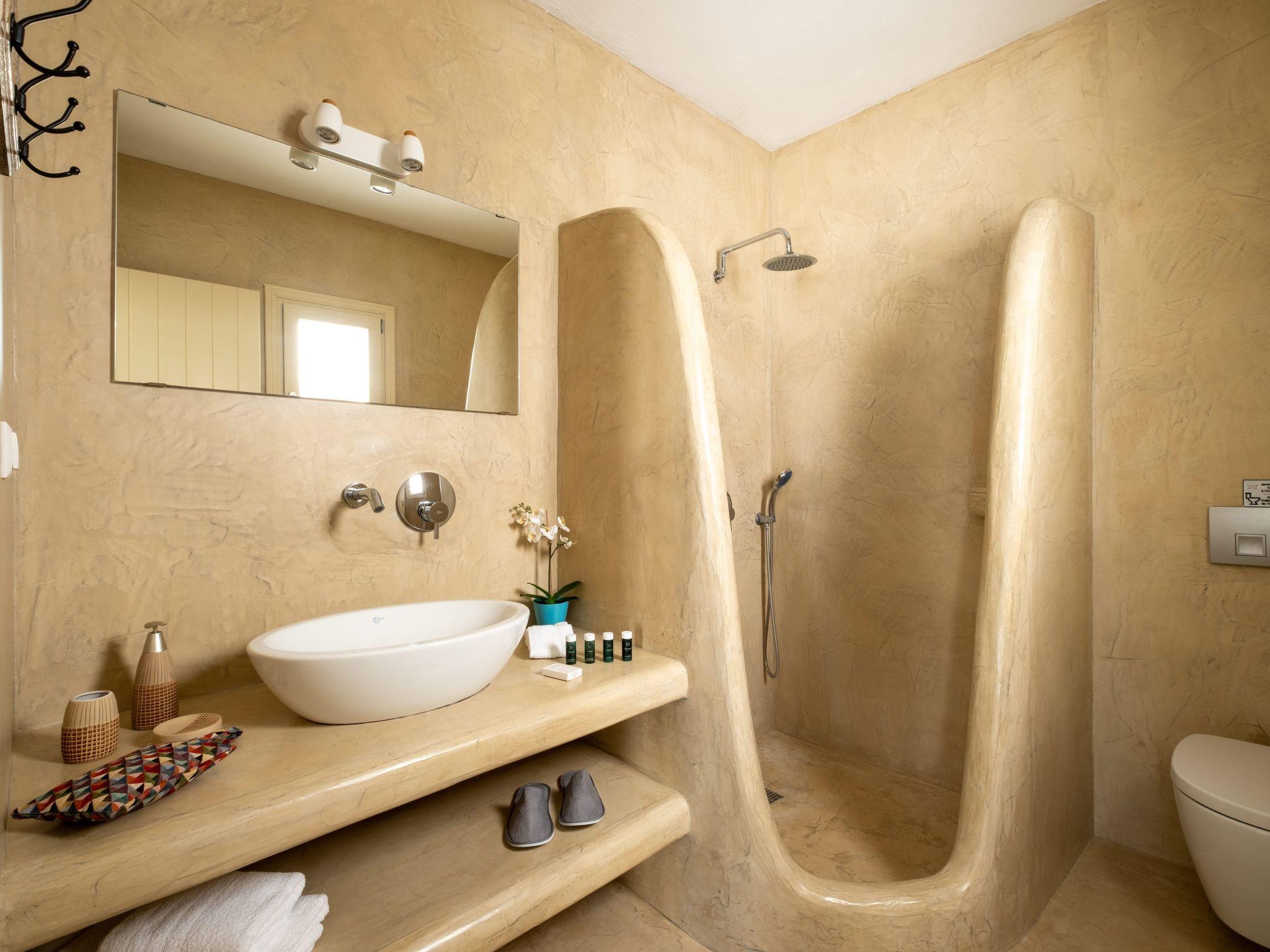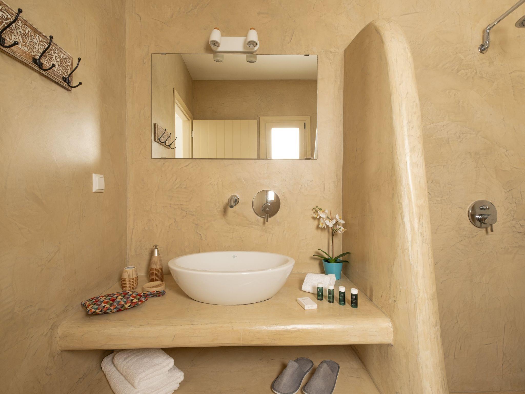 The Third Bedroom also has an en-suite bathroom and comes with two single beds (which can be joined to form a king-sized bed). This room showcases elegant lightwood furniture, has direct access to the pool, and offers its own private veranda with outdoor seating, boasting spectacular views of the Caldera and the Aegean Sea.