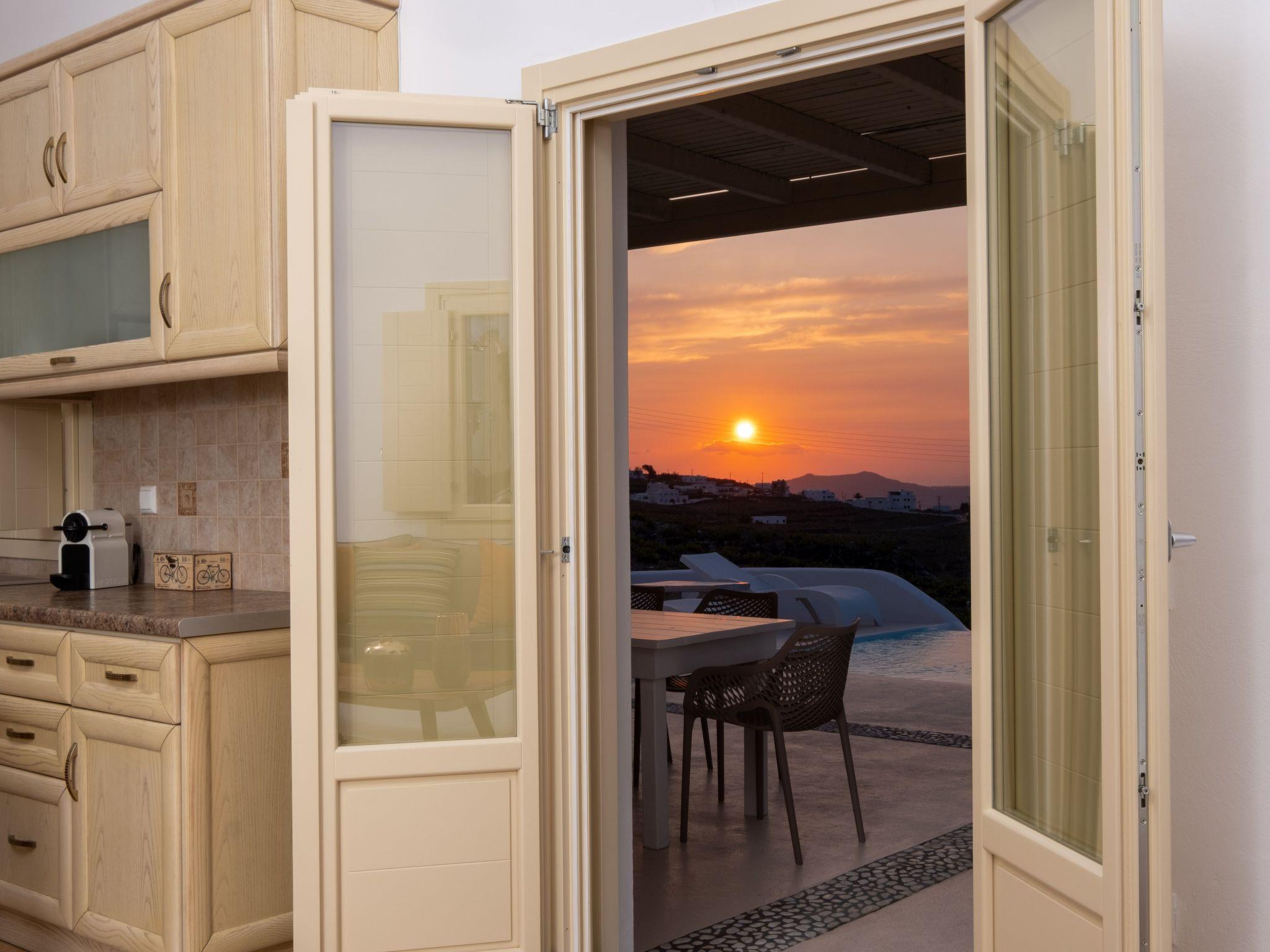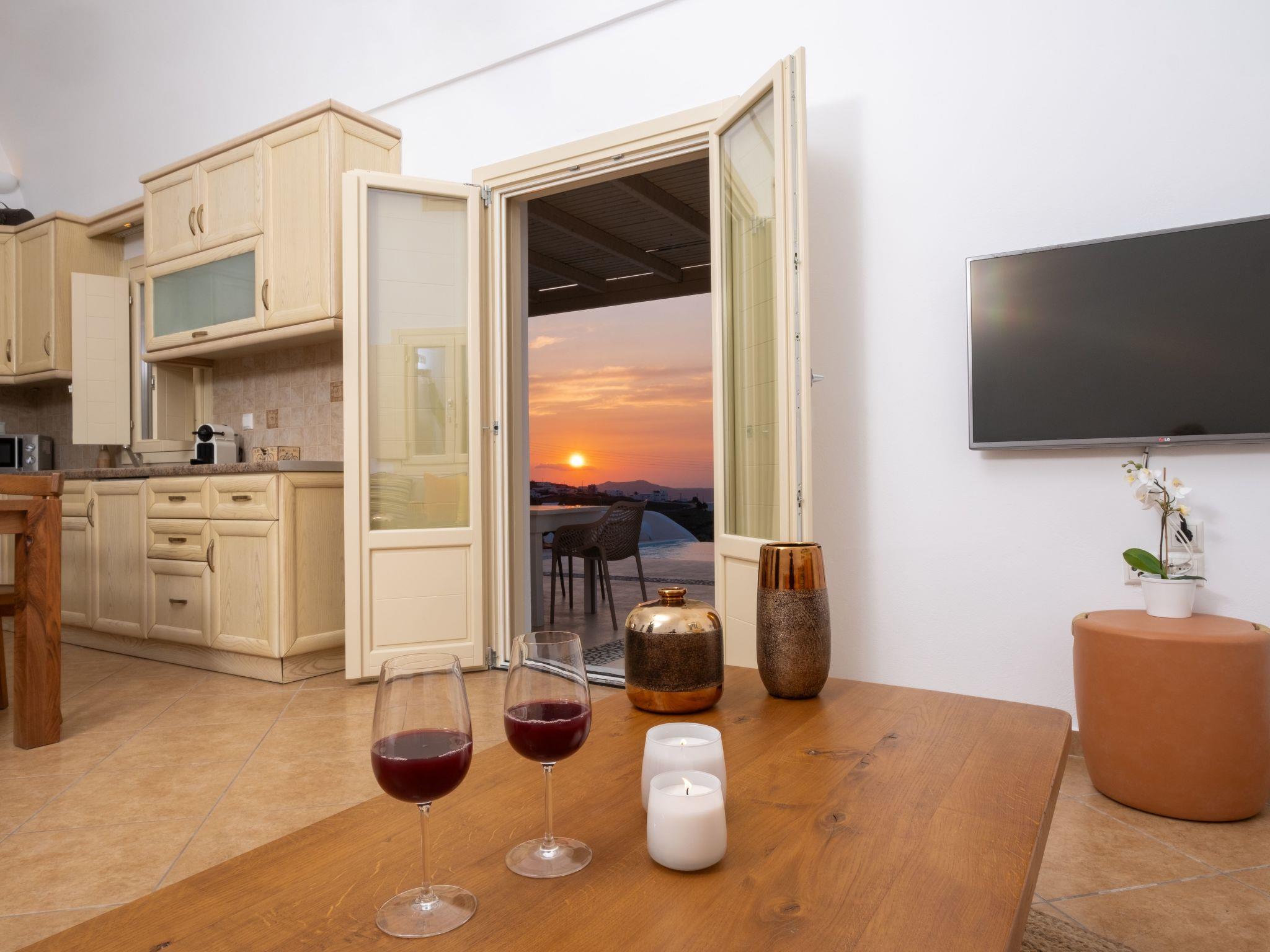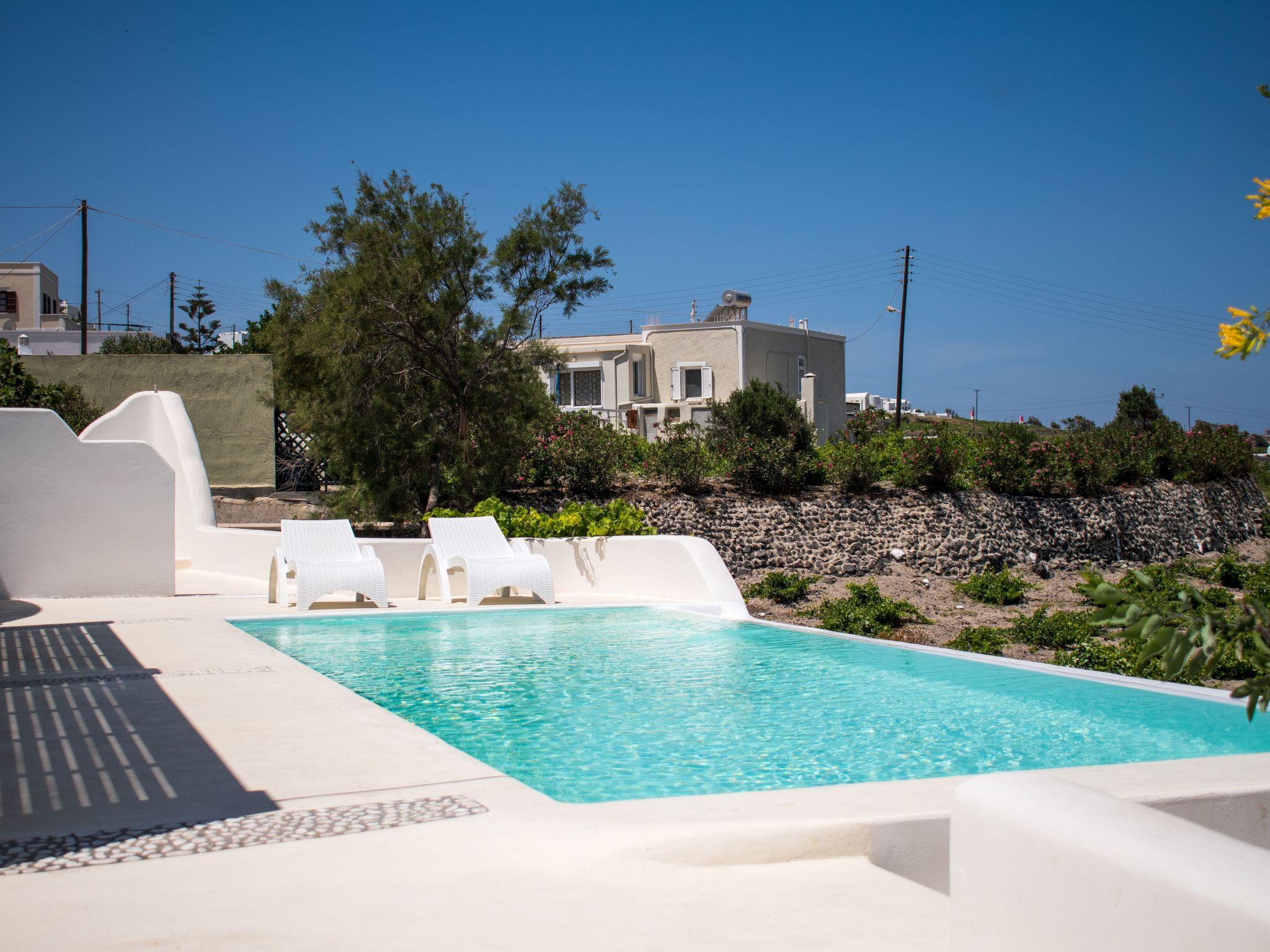 The outdoor area is a haven of tranquility, featuring a private heated pool surrounded by sunbeds and a dining area that provides the perfect setting for leisurely mornings and unforgettable sunset moments. Whether you're indulging in the serene views or enjoying the convenience of your private parking space, every aspect of White Orchid Villa has been designed to offer a luxurious and unforgettable Santorini experience.