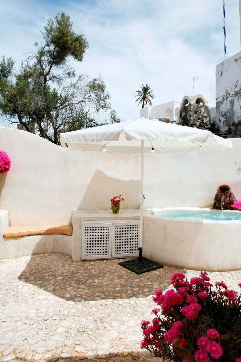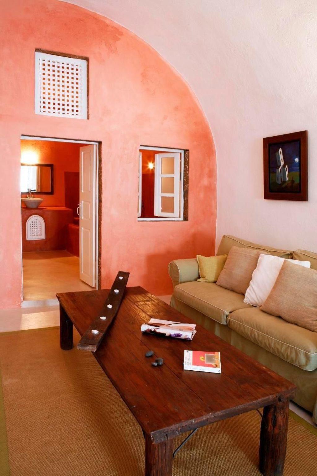 Located under the church of Agios Anargyros with its wonderful bell tower, the two bedroom Villa Ivi is a charming retreat from the hustle and bustle of Fira and Oia. Sheltered from the Cycladic winds, the traffic free village of Megalochori provides a peaceful and sought-after alternative.