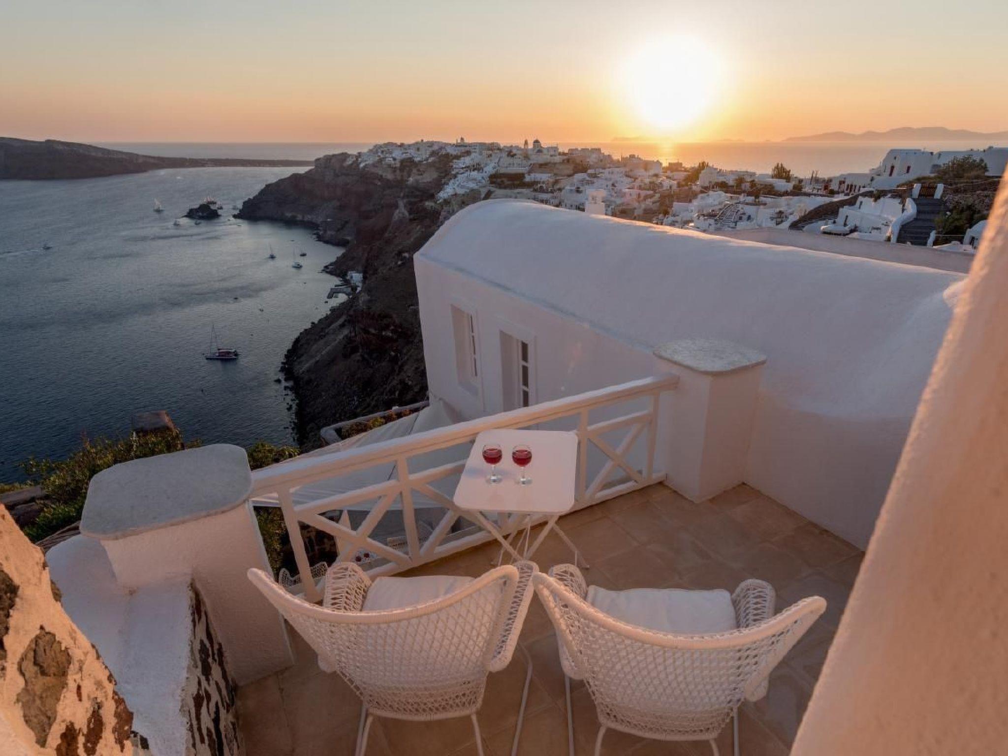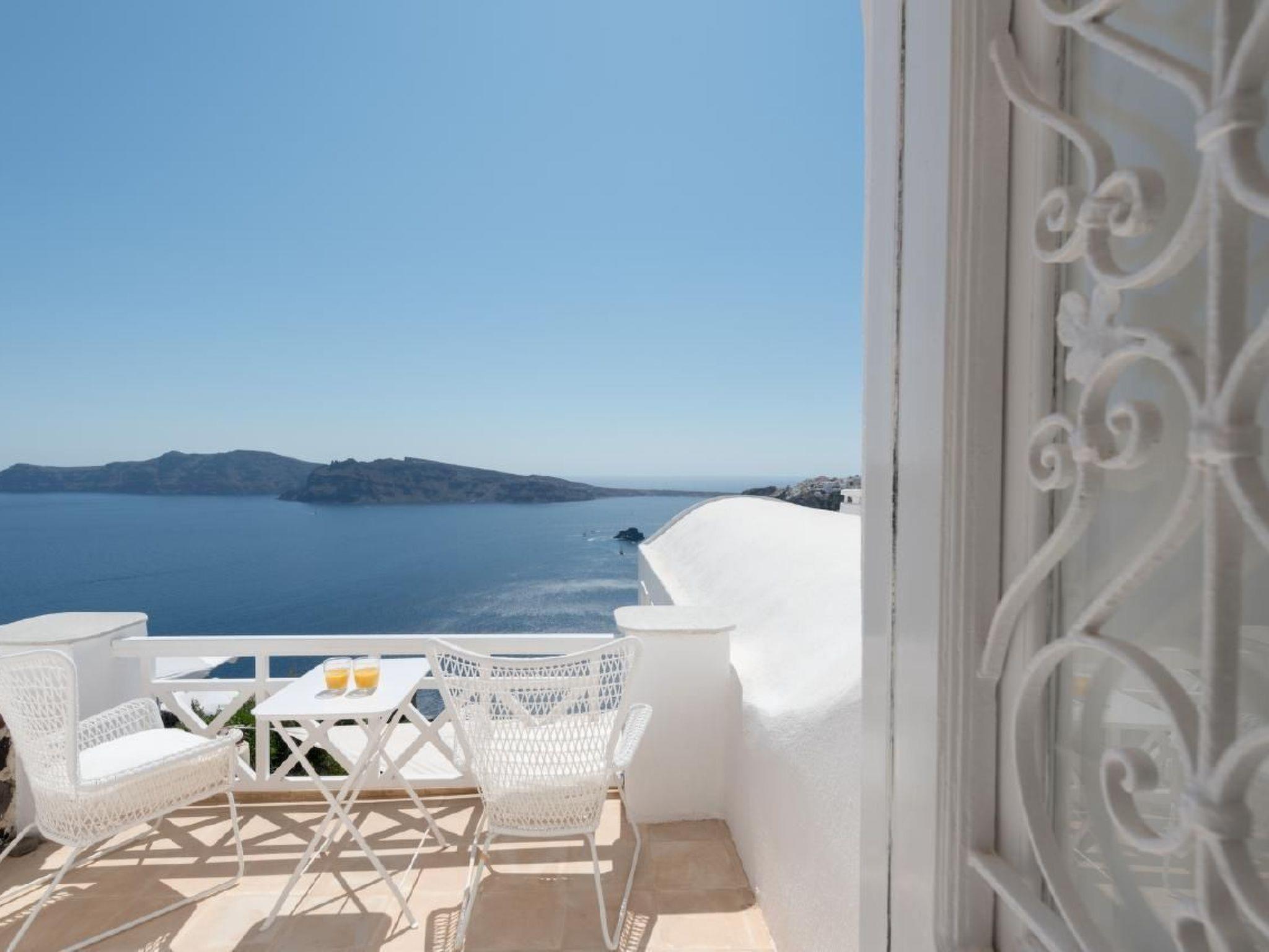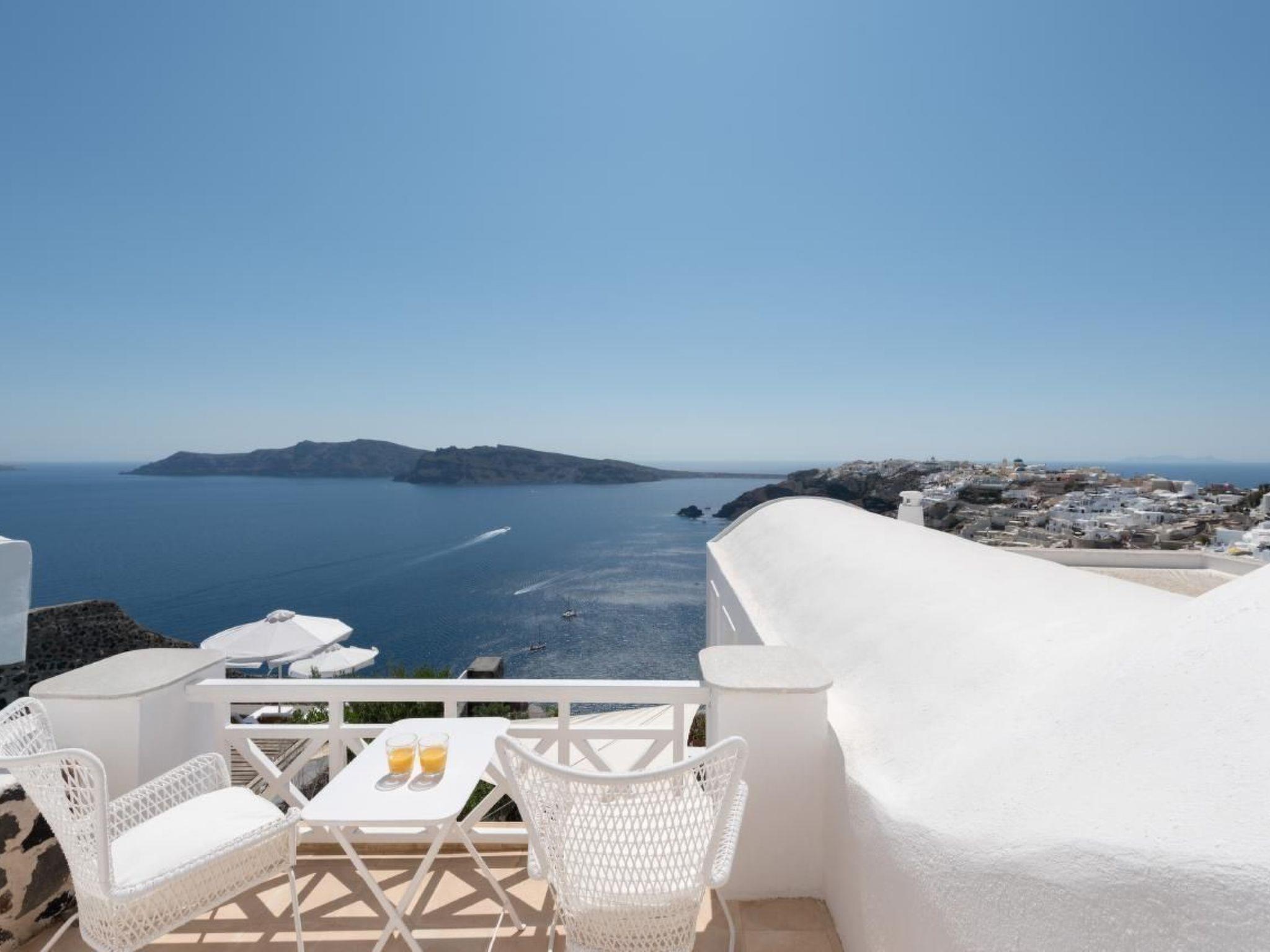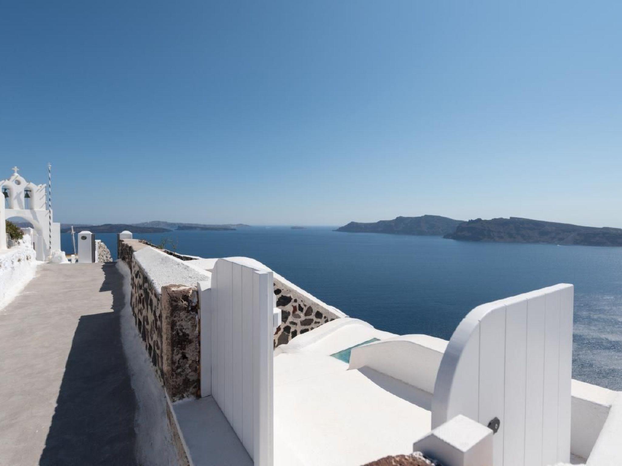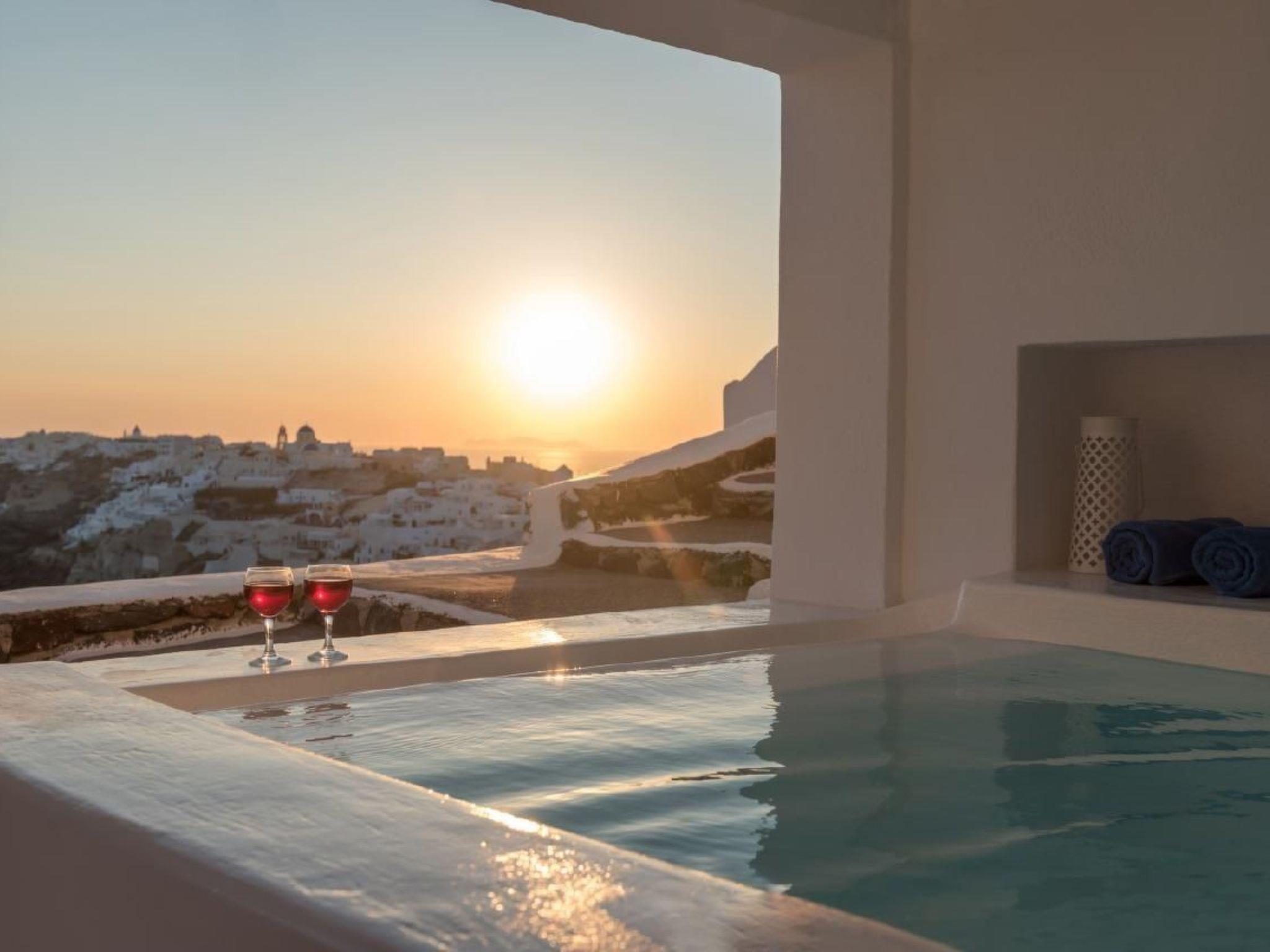 There is an infinity outdoors Jacuzzi plunge pool for 6 persons available on the courtyard of the villa with fabulous views to the sea, the caldera and the village of Oia.