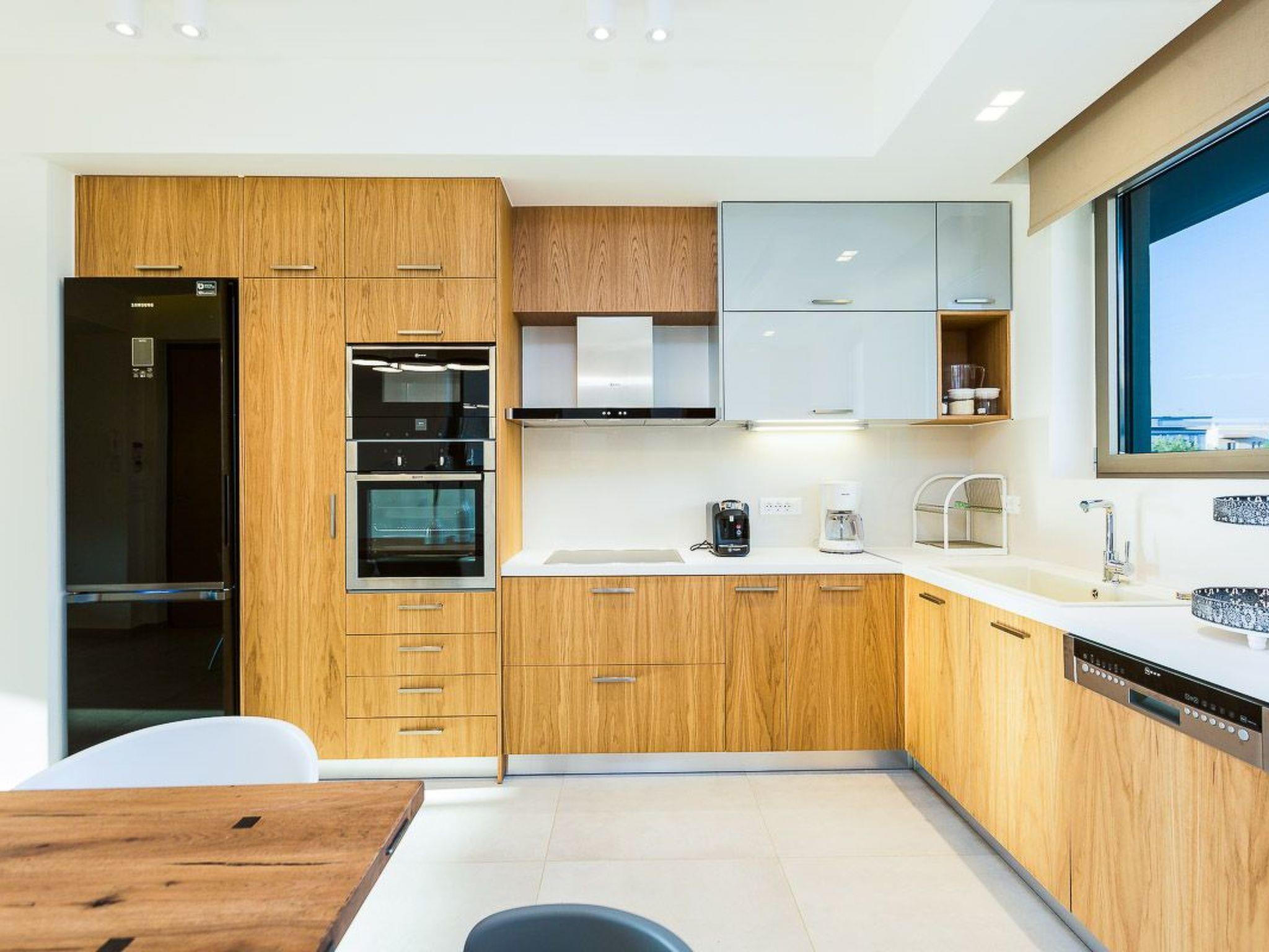 Open plan fully equipped kitchen with a dining area for 8 guests and modern appliances