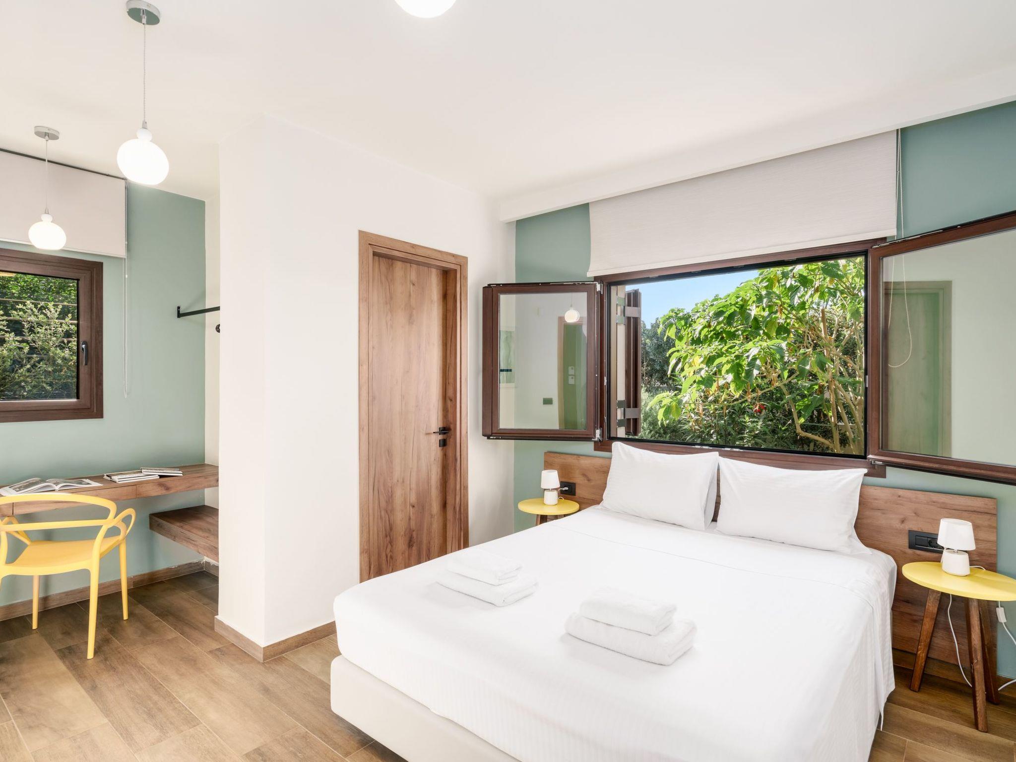 Villa Fos is part of the Olympia Villas Complex, which includes three villas: Villa Anthos (1 bedroom, 2 guests), Villa Alya (4 bedrooms, 9 guests), and Villa Fos (3 bedrooms, 8 guests). For larger groups, multiple villas can be booked together for a seamless stay.