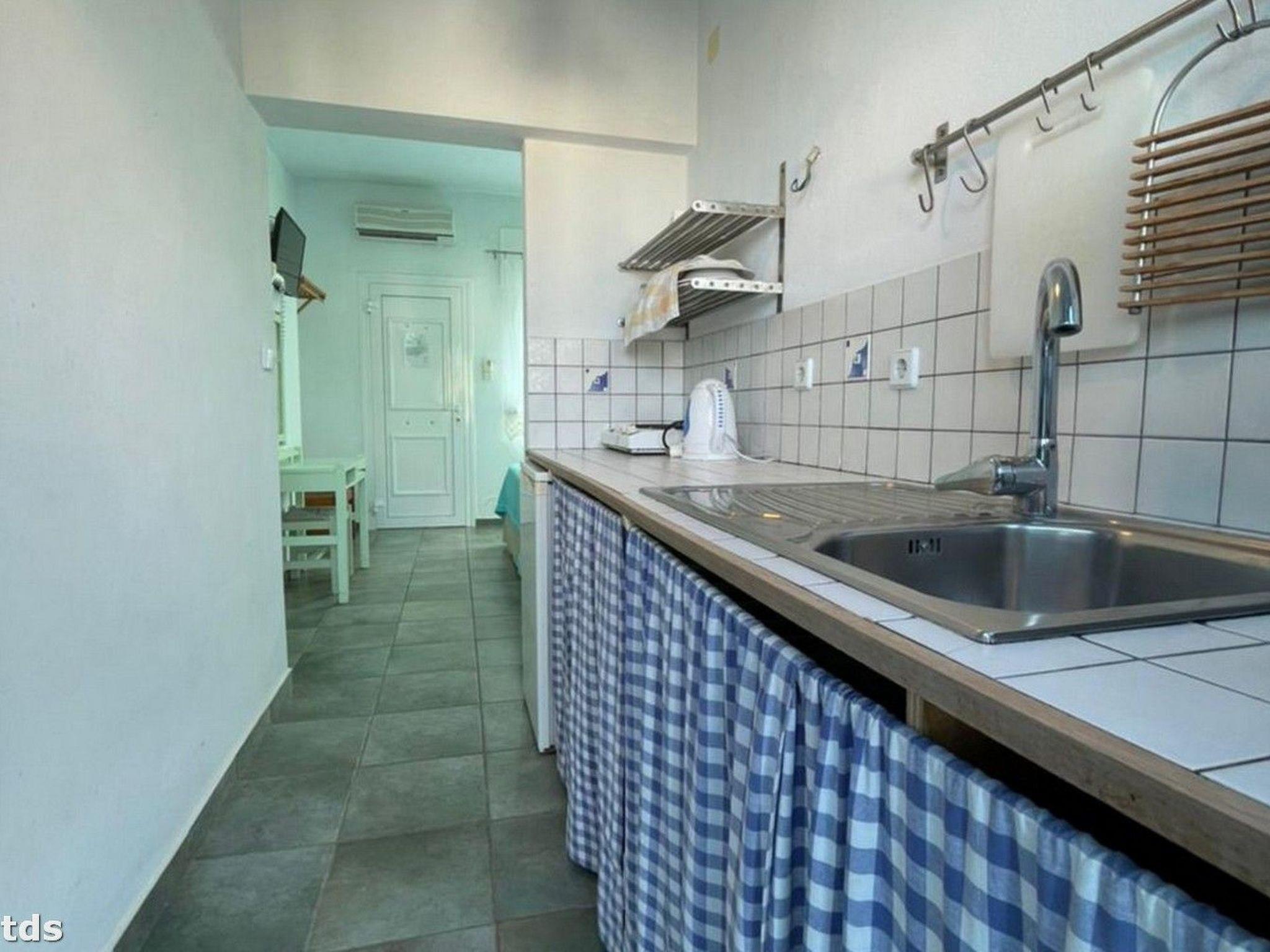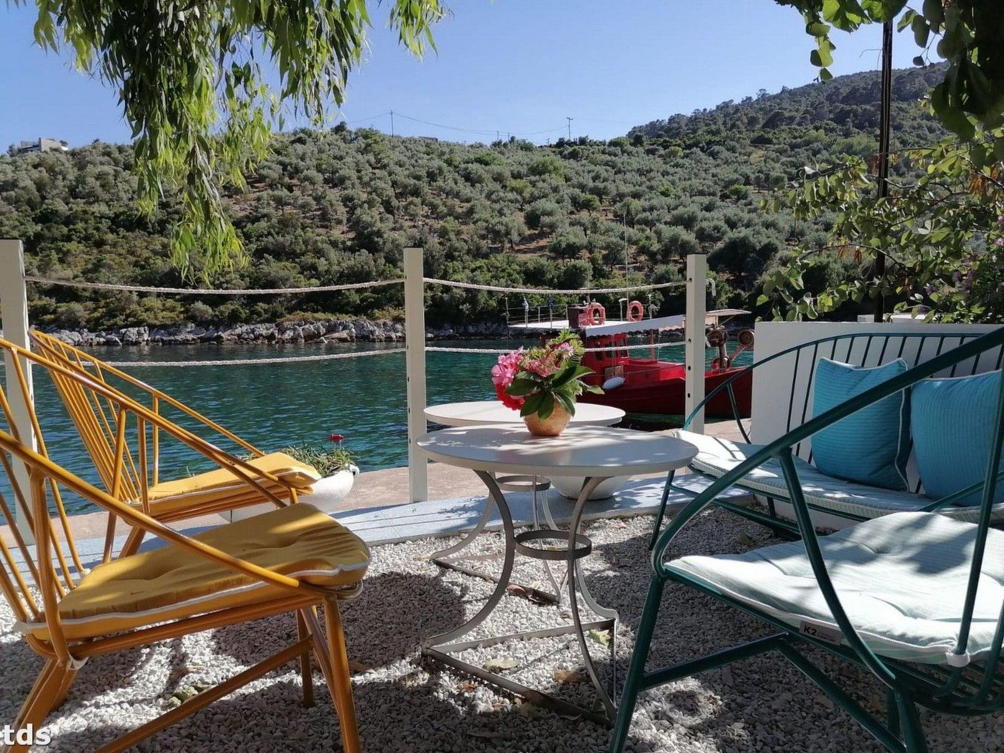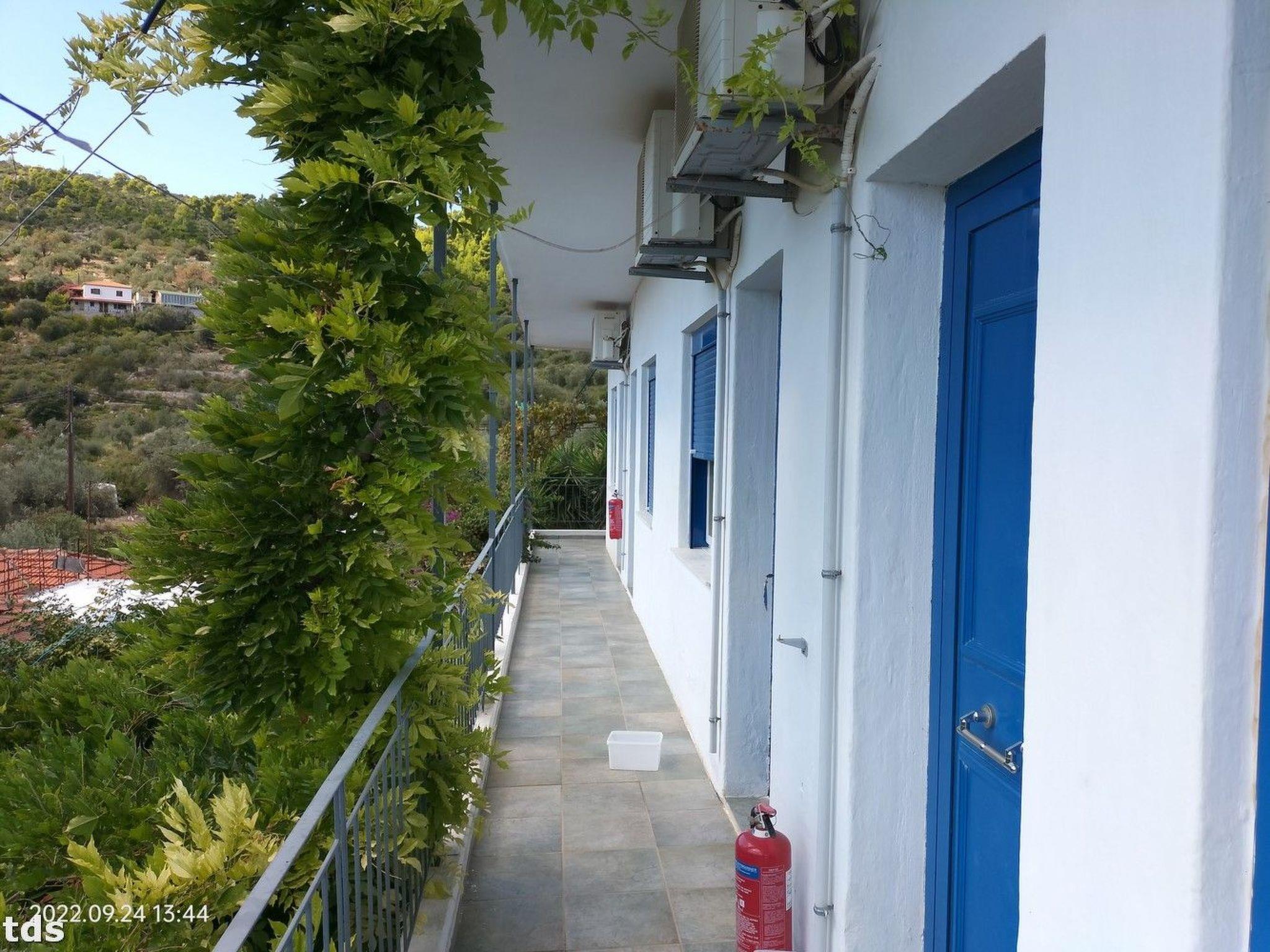 The location of the studio in one of the most beautiful parts of the Northern Sporades is ideal for those who love the sea, the beach and water sports. With the beach just 80 metres away and the sparkling sea only 50 metres away, fun is never far away. For active holidaymakers, there is a water sports centre just 30 metres away. The nearest village centre with a grocery store is also just 50 metres away, making self-catering a breeze. Whether exploring the surrounding area or visiting the villages of Patitiri and Chora, which are only a few kilometres away, for shopping and entertainment, the location leaves nothing to be desired.