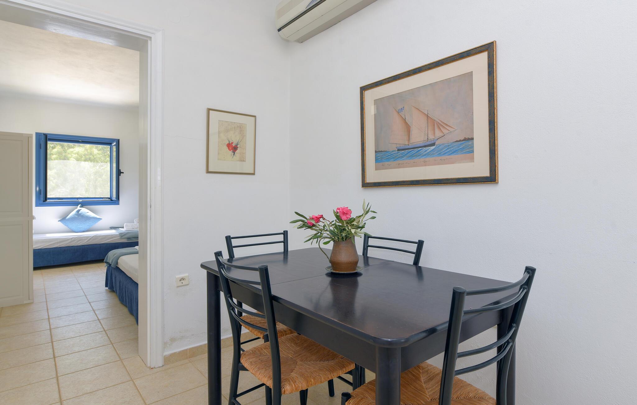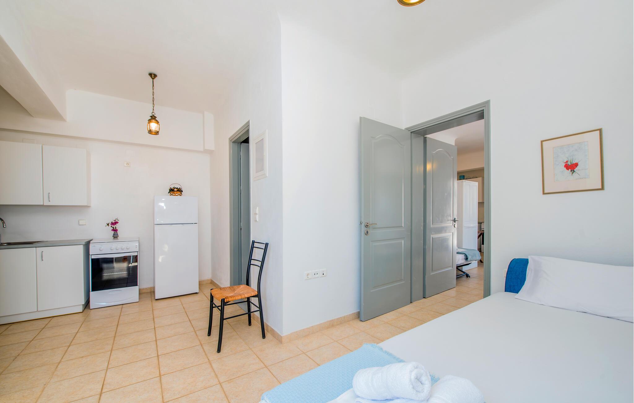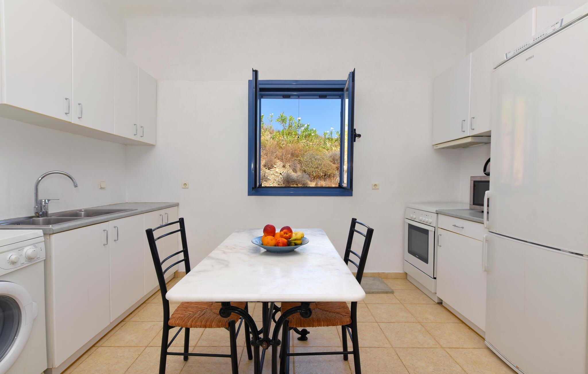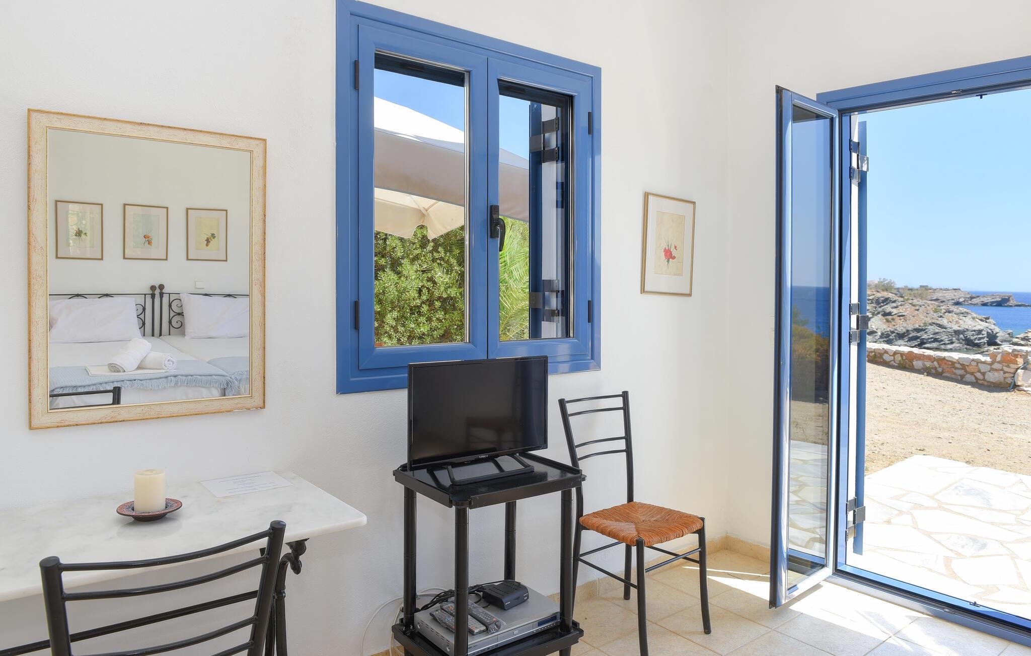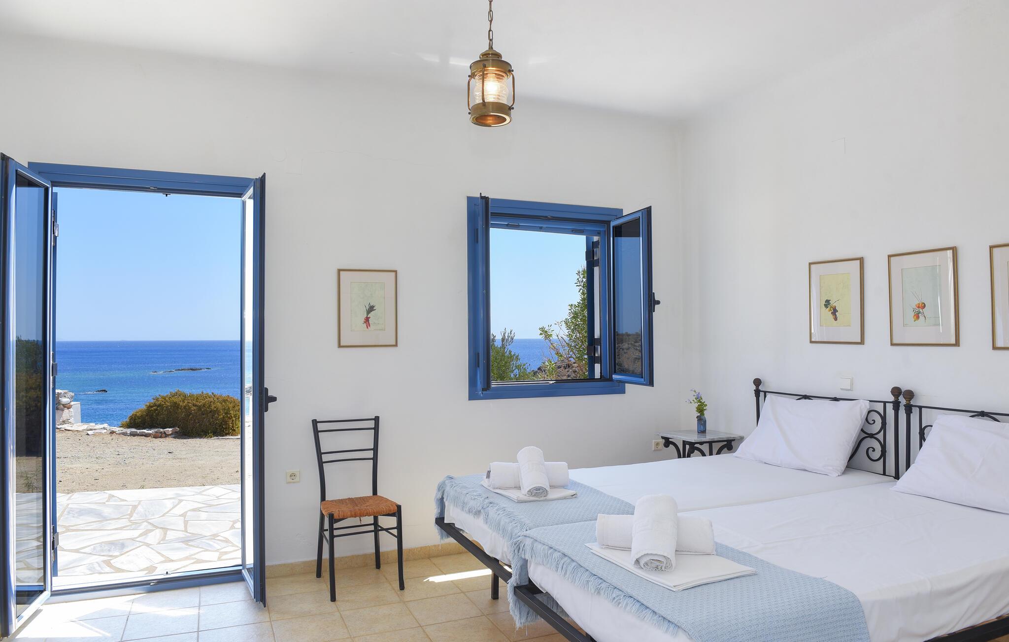 I hjertet af Kykladerne ligger den bjergrige ø Syros. Feriedomicilet Akrampeli befinder sig ved Ampelas strand i den sydøstlige del af øen. Huset er bygget i to plan, som kun er forbundet via en trappe udenfor. På hver etage finder I hhv. to køkkener eller to tekøkkener samt to badeværelser. Tre af soverummene er åbne rum ud til køkkenet. Stranden ligger lige ved døren. I behøver dog ikke gå langt for en svømmetur, til huset hører nemlig egen pool, omgivet af en stor terrasse. Nyd den endeløse udsigt over det himmelblå Ægæiske Hav fra terrassen. Den nærmeste restaurant, der har åbent fra maj til september, ligger kun 50 m fra huset. For adspredelse sørger havnebyen Ermoupolis 15 km væk, hvor især det elegante klassicistiske rådhus, men også casinoet, biograferne og diverse restauranter er et besøg værd. Da Syros har en central beliggenhed i Kykladerne, er øen et perfekt udgangspunkt for dagudflugter til naboøerne Mykonos, Dilos og Tinos. Ankomstdag fortrinsvist fredag og lørdag. Vi giver gerne oplysninger om færgetider til Syros. Ankomst fortrinsvis fredag og lørdag.