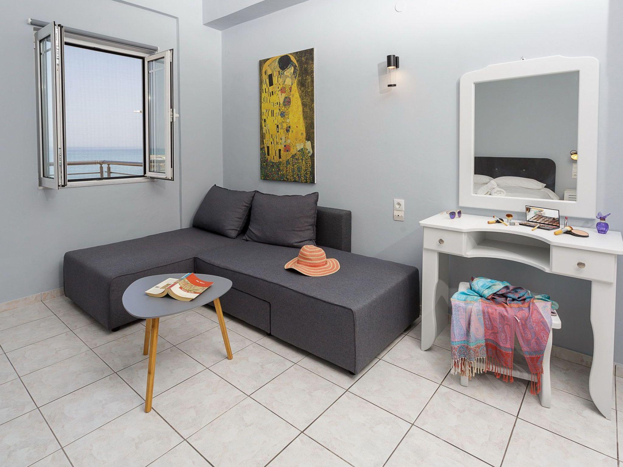 Sole Mare Seaside apartments is a small, family run hotel which consists of 3 sunset view studios and 4 apartments. The hotel is located in front of the sea , in the picturesque village of Kato Gouves.