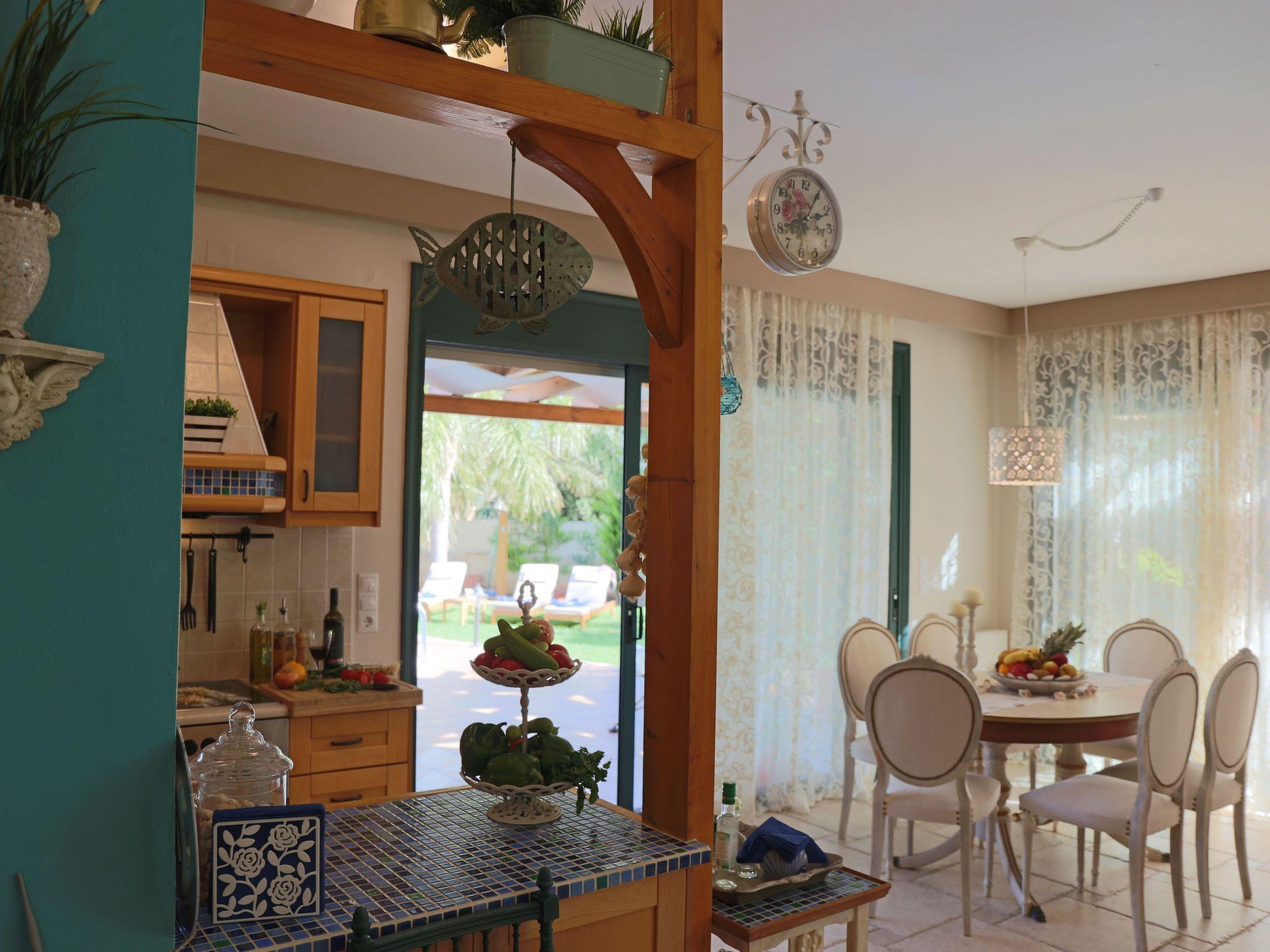 In the colder months, oil heating and wood for the fireplace are available. The house has two car parking spaces. 12 German channels can be received via the satellite system. The German caretakers live on the neighbouring property and can be reached quickly. We offer: Cookery courses: Introduction to Mediterranean cuisine - not bookable all year round on request; Language courses: Introduction to the Greek language We are happy to offer you our massage service shiatsu massage hot stones olive oil relaxation and much more