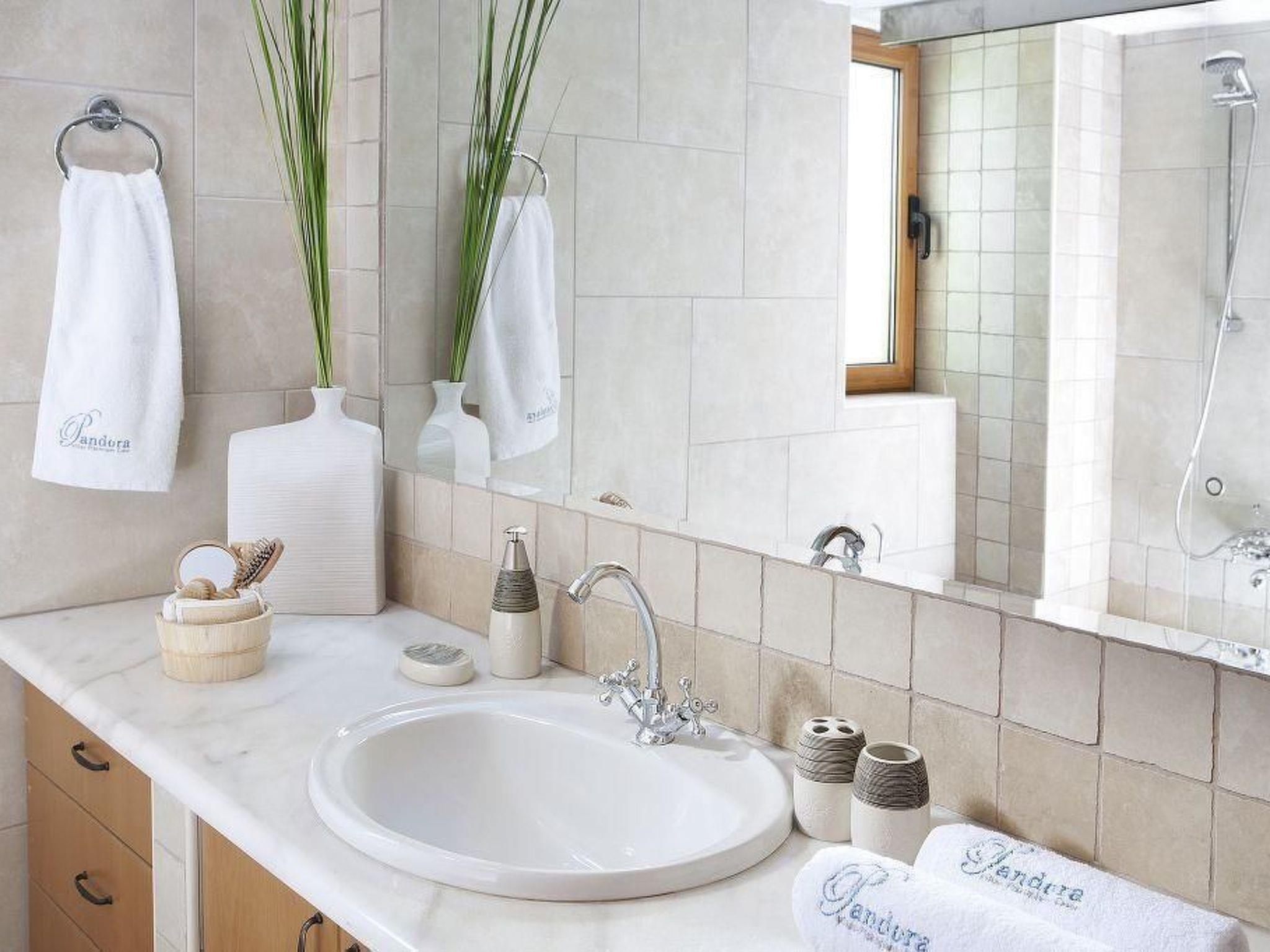 On the approximately 600 m² plot there is also the private pool, and the well-kept garden with lush trees and Mediterranean-style planting. Around the garden a natural stone wall with fence ensures your privacy, but does not prevent you from enjoying a marvellous view over the natural landscape to the sea. The pool can be used from April to October.