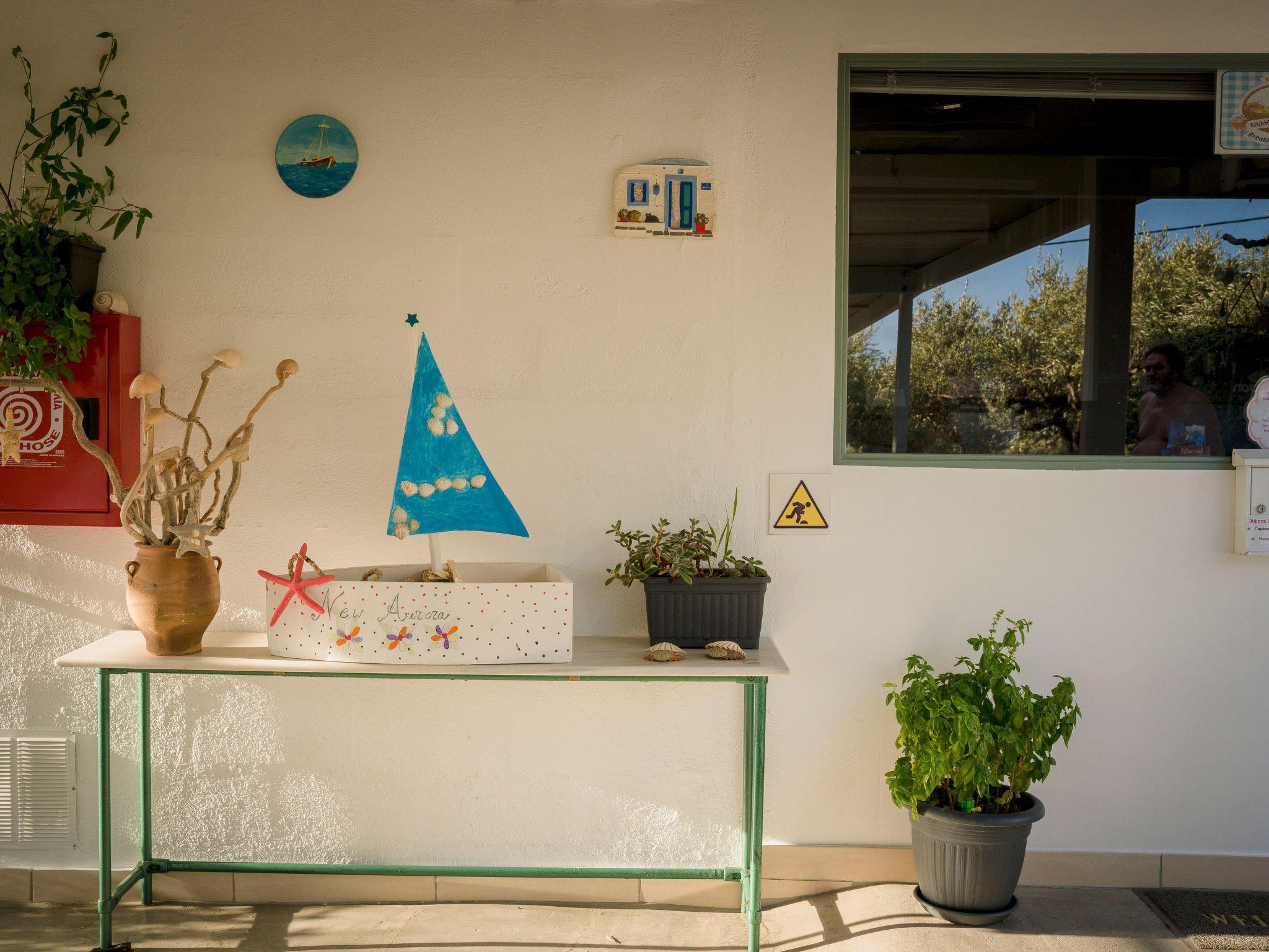 The exterior of New Aurora Apts Studios captivates with its lush, meticulously cultivated gardens, blessed with local flora, herbs, olives, and an array of trees. Guests can relax in restful areas under the shade of olive trees, utilize the barbecue facilities, or let children play freely in the playground. Ensuring a seamless stay, we offer free Wi-Fi across the property, private parking, and an array of outdoor amenities including garden furniture, sunbeds, an outdoor shower, and hammocks, all within a secure, fenced complex suitable for children.