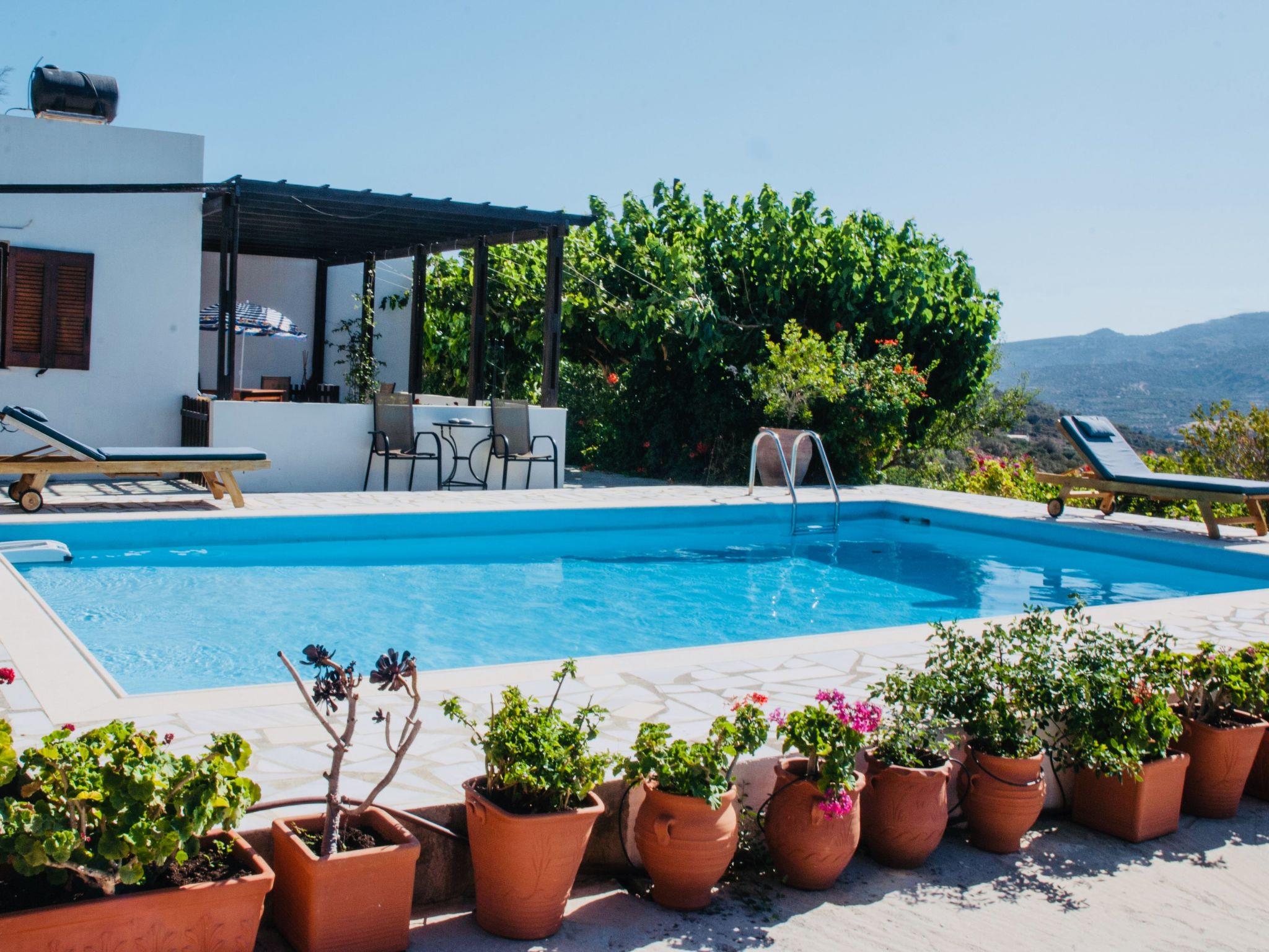 The villa is set in the small hamlet of Monastiraki a few Km inland from the seaside village of Pachia Ammos. It is on the North Coast and a short 10min drive to the south coast town of Lerapetra.