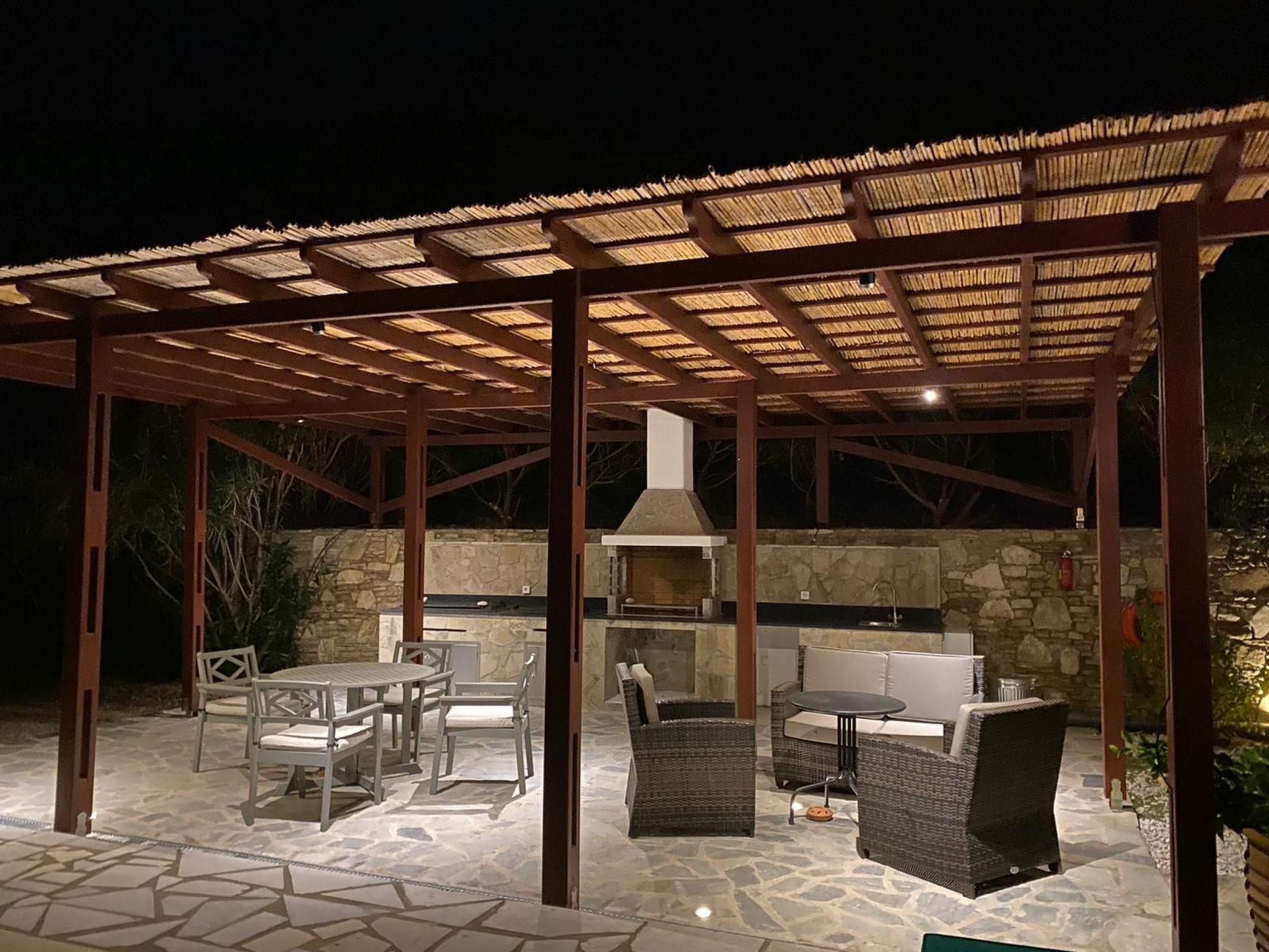 The villa has a 5X8m pool. Stunning sea and mountain views. There is plenty of private space for sunbathing and an outside cooking and eating area with BBQ sink and outside fridge. There is a well equipped indoor kitchen / living room. Aircon in Living room and bedrooms.