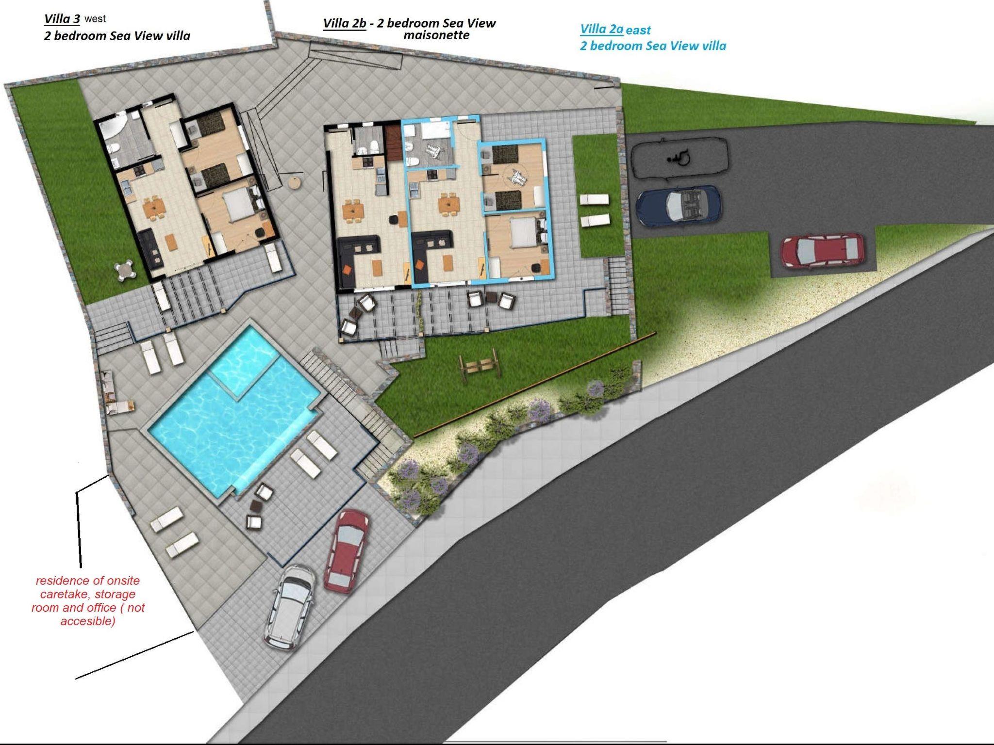 2 of the 4 villas are on ground level and accessible for wheelchair and baby stroller.