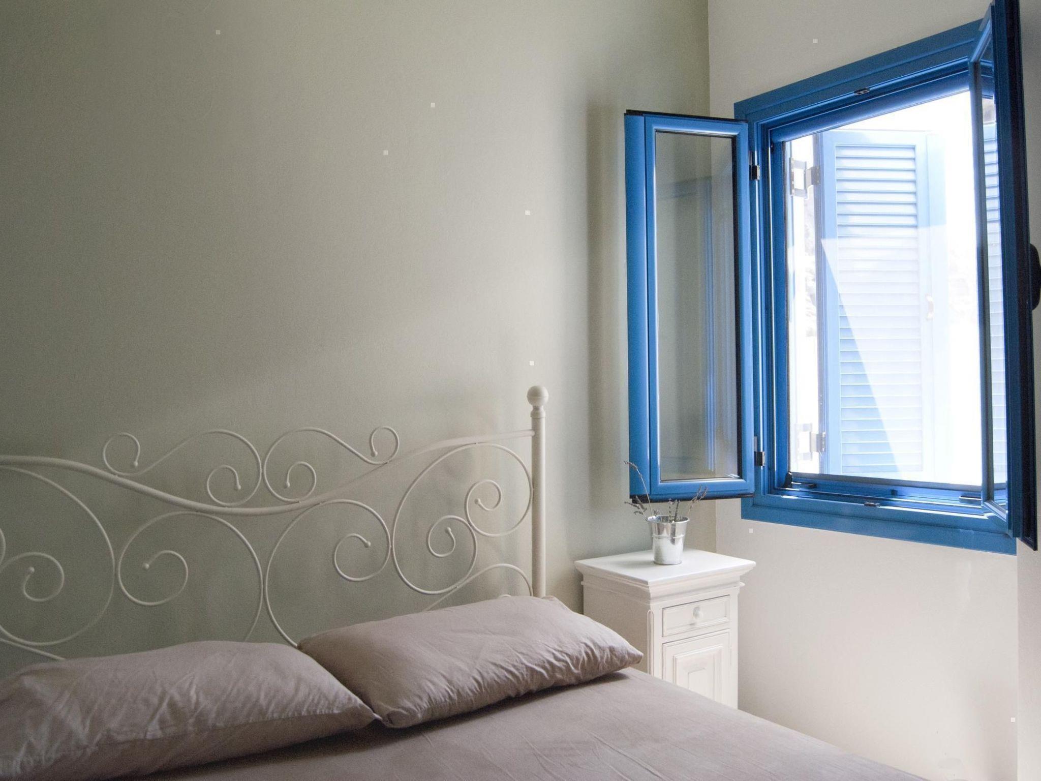 The house with its architecture of wood and stone, together with the special light on the island and the nearby picturesque beaches and cliffs, forms a unique Mediterranean setting. The 60m² of living space are ideal for four people. The house has a bathroom with a shower and two bedrooms with a double bed (160 x 200cm) and two single beds (90 x 200cm). The kitchen is fully-equipped. There are a dining space and a living room with a traditional fireplace. The house is fitted with fans, but which are rarely used, due to the climatic conditions. In spring, summer and autumn there is always a slight breeze, and the stone walls of the house ensure a pleasant indoor temperature in summer. In winter there are separate electric radiators.