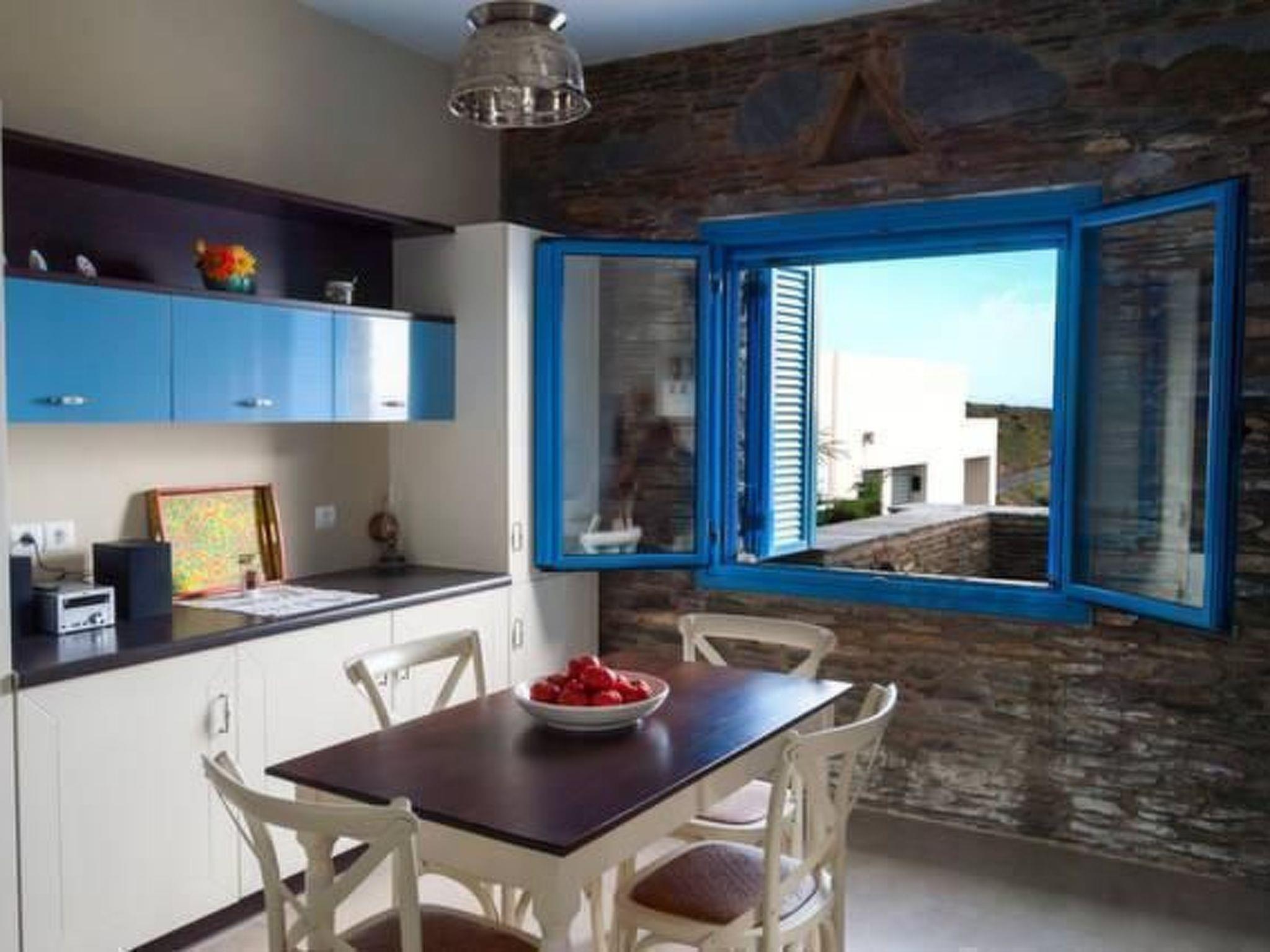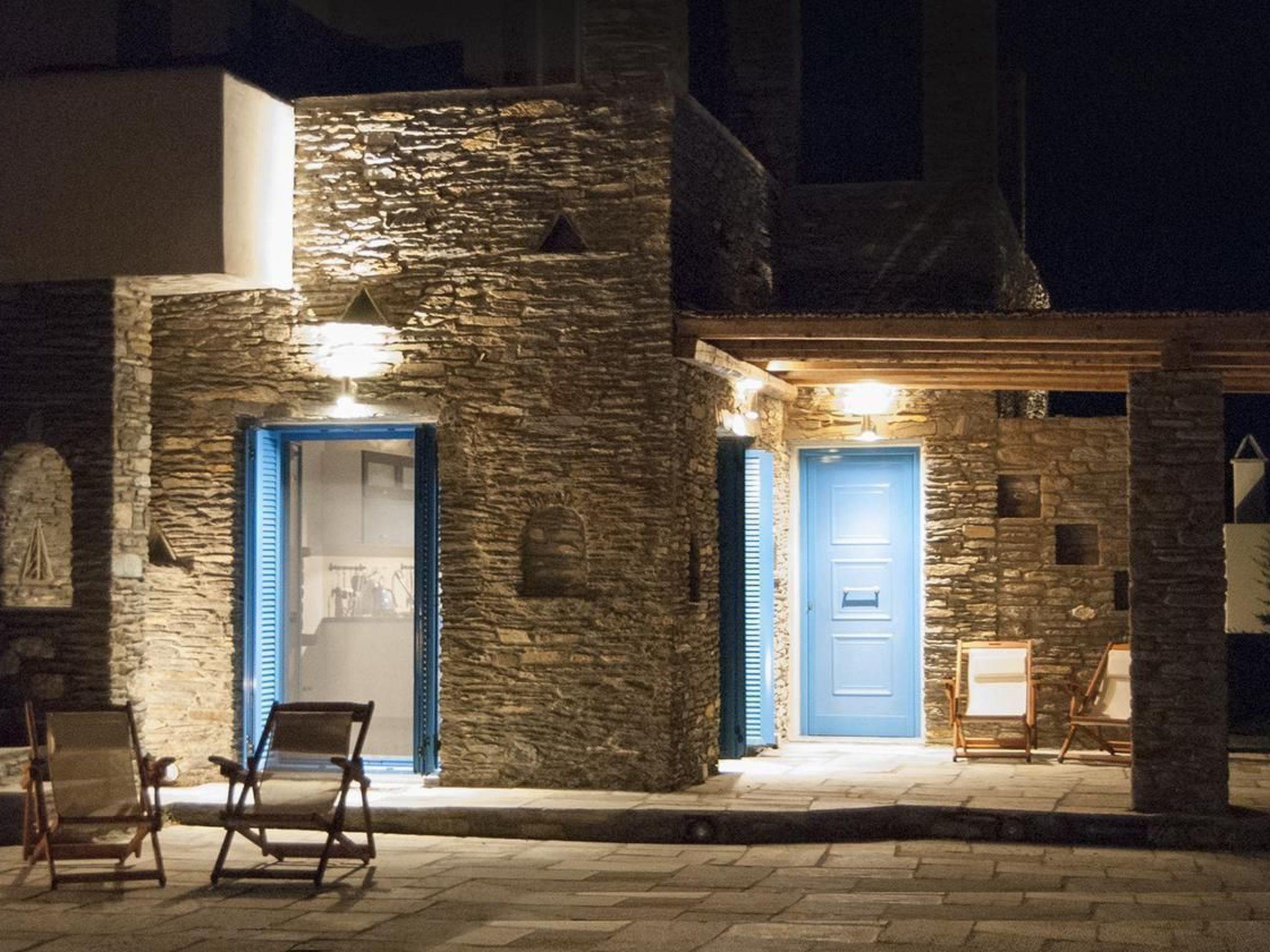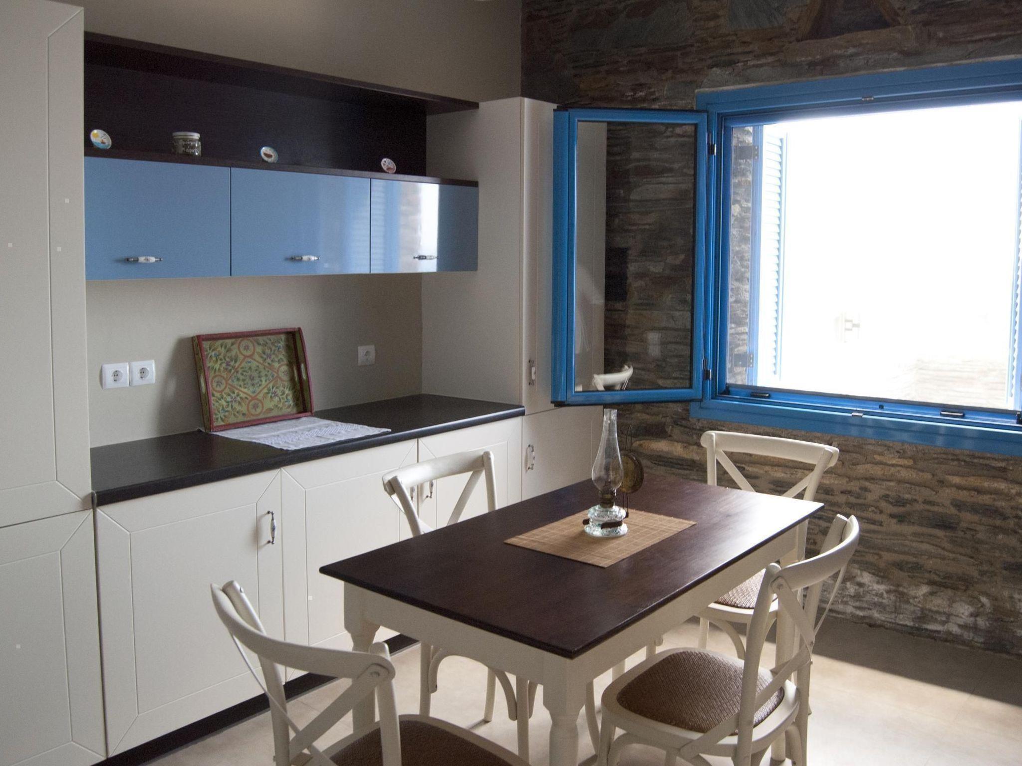 It is 5km to the nearest supermarket in Palaiopoli. Right near the house there are the two beaches Apothikes and Halkolimionas. You can even see the house up on the cliff from the latter. As the island of Andros is not far from Athens, it is a popular weekend destination for Athenians. It is an island rich in history, with lovely beaches and plenty of green landscapes in the inland area. Andros is a paradise for hikers. Many trails lead through the impressive landscape with wild flowers and fascinating archaeological sites. The island capital Hora has remarkable architecture to offer, a mixture of different building styles. You can stroll through the narrow alleys and admire churches or museums, or visit cafés, shops and restaurants.
