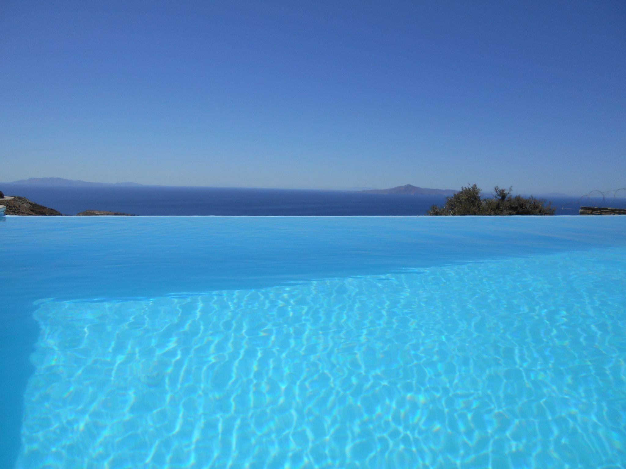 This holiday house is on the south coast of the island, halfway between the two main towns Hora and Batsi, about 12km away. It is the only house in the area and therefore provides plenty of peace and quiet and privacy, as well as a majestic view of the blue Aegean.
