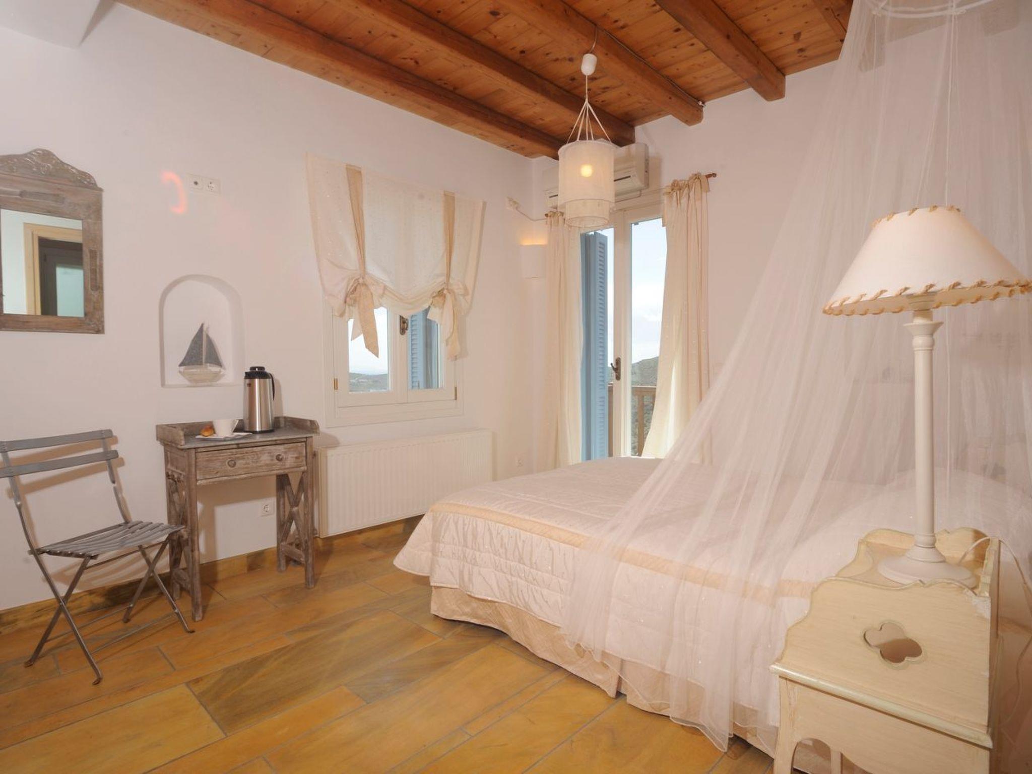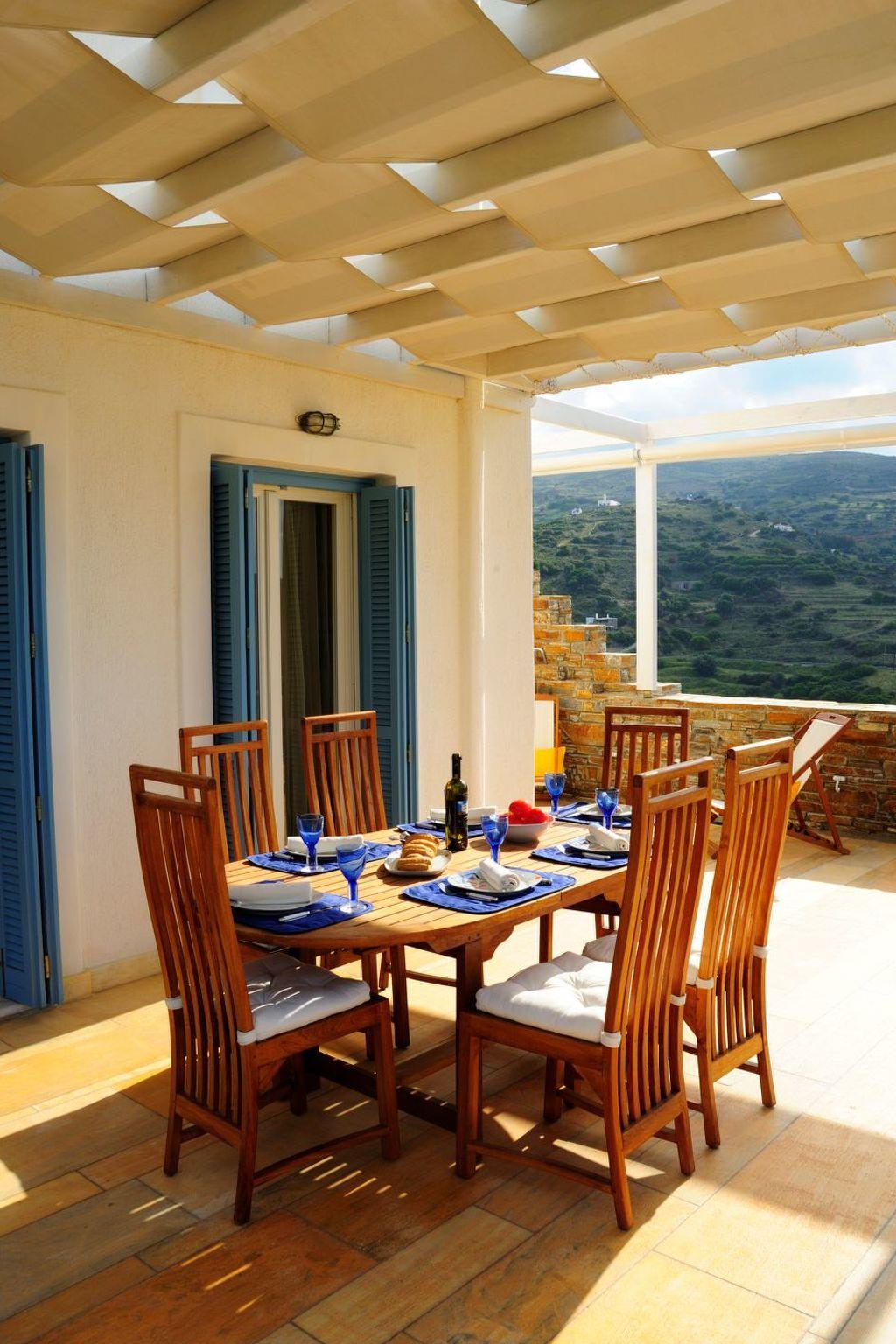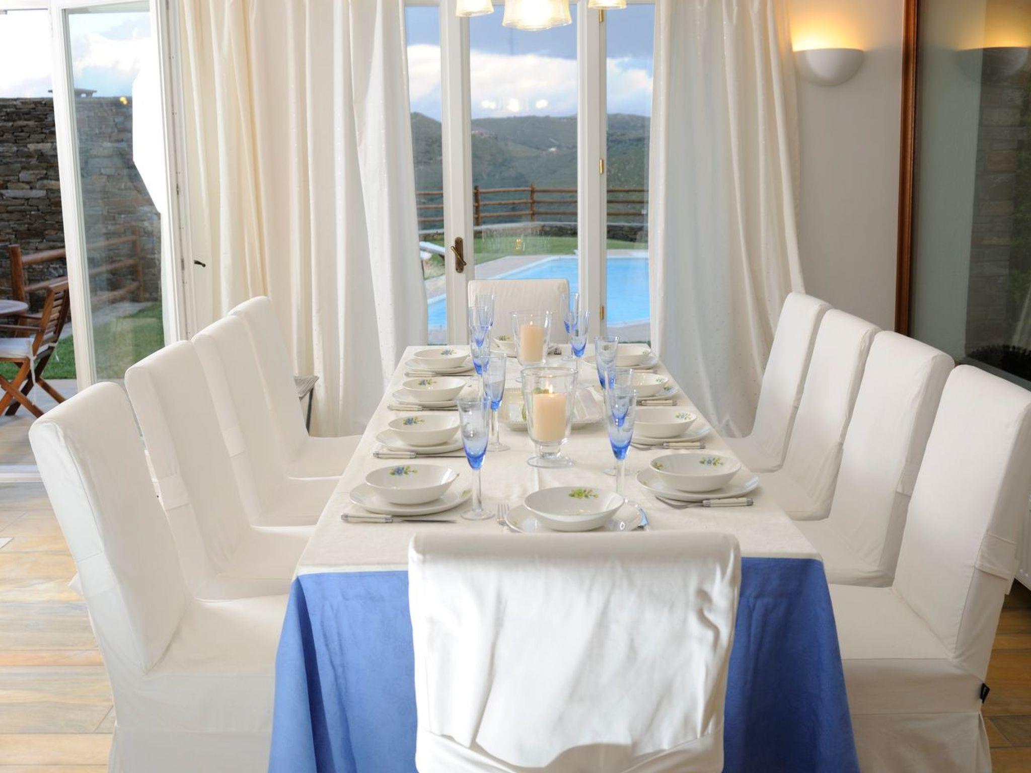 Our villa is located in the region of Kato Fellos, only 5 min drive (or 15 min walk) from a stunning sandy beach and 5 km from the port town of Gavrio in Andros. It is built on the side of a hill, offering beautiful view to the Aegean Sea and the surrounding green nature of our island. The location is tranquil, along a not-often used road, perfect for total relaxation.
