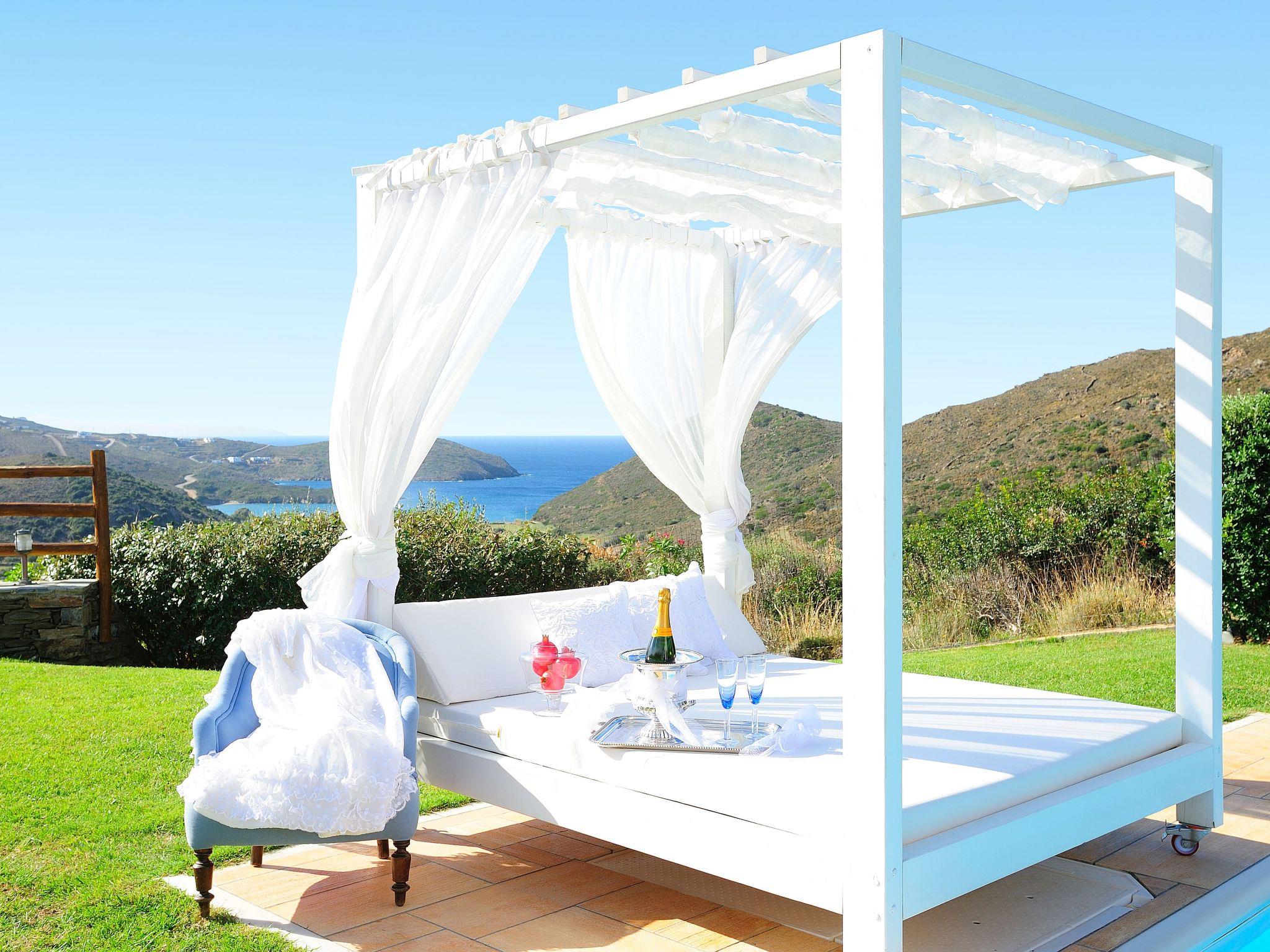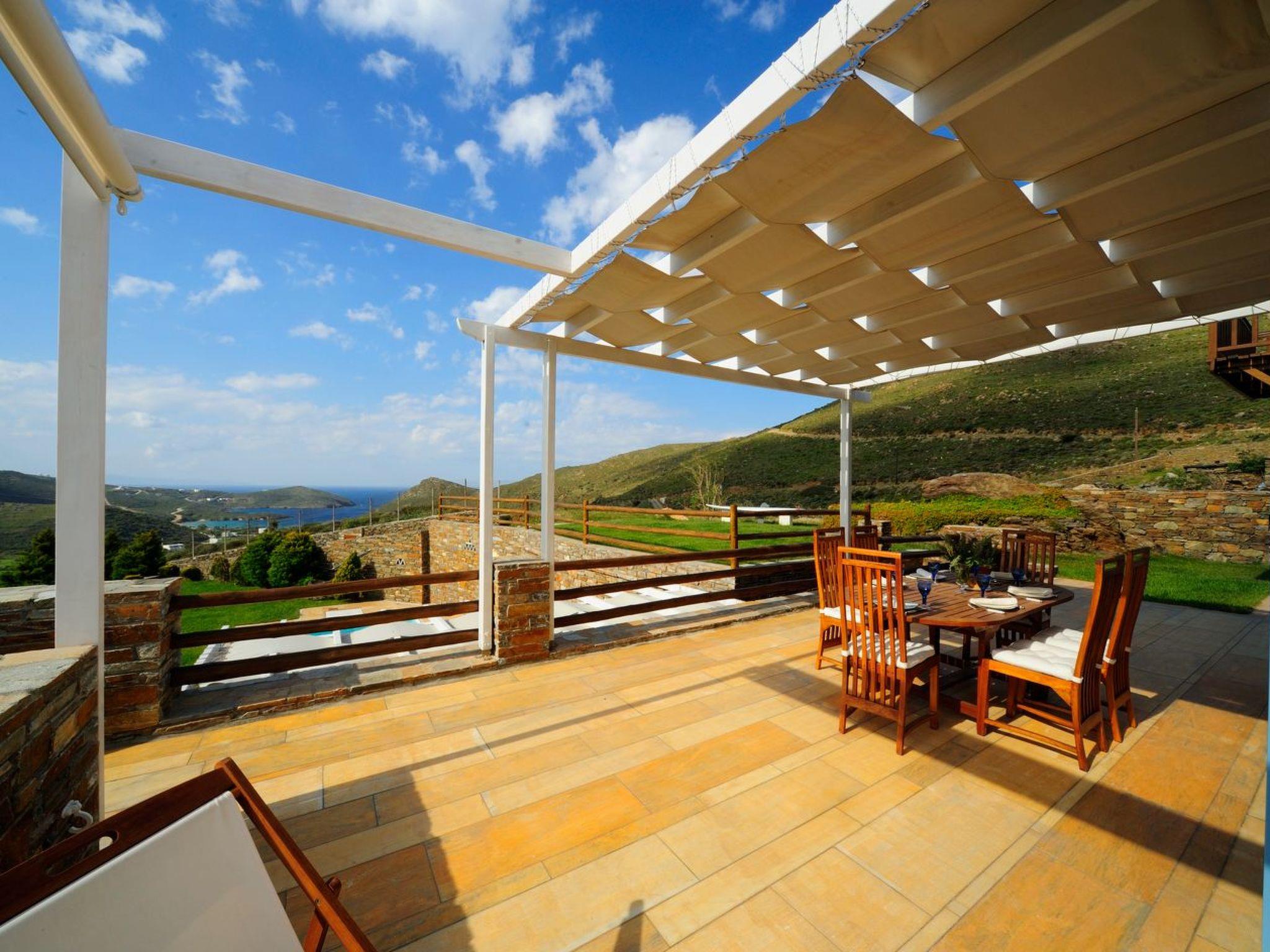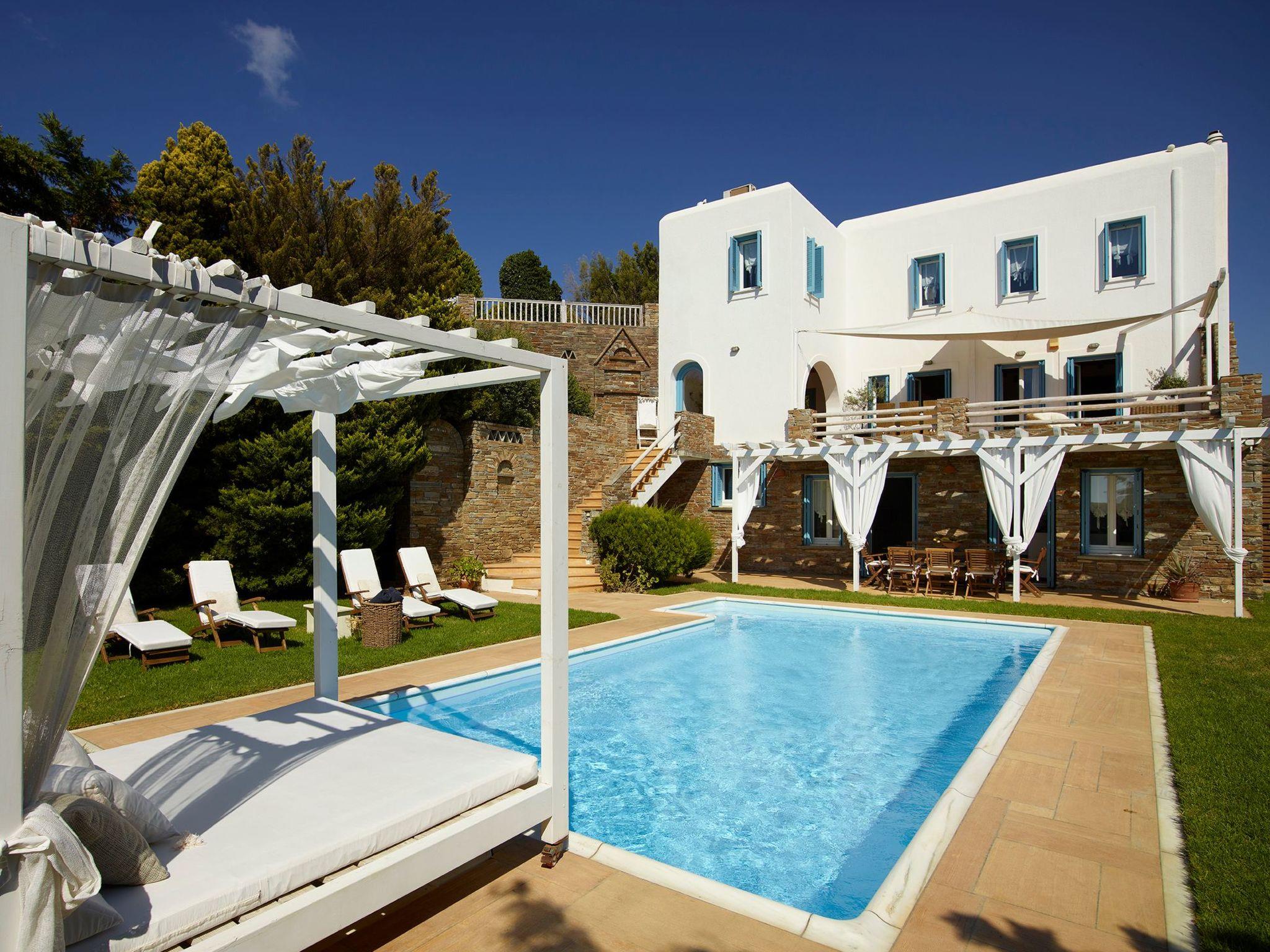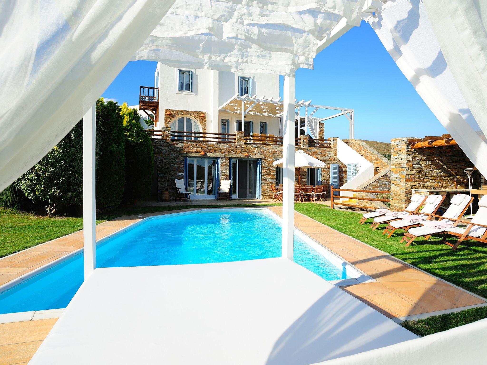 Our villa is located in the region of Kato Fellos, only 5 min drive (or 15 min walk) from a stunning sandy beach and 5 km from the port town of Gavrio in Andros. It is built on the side of a hill, offering beautiful view to the Aegean Sea and the surrounding green nature of our island. The location is tranquil, along a not-often used road, perfect for total relaxation.