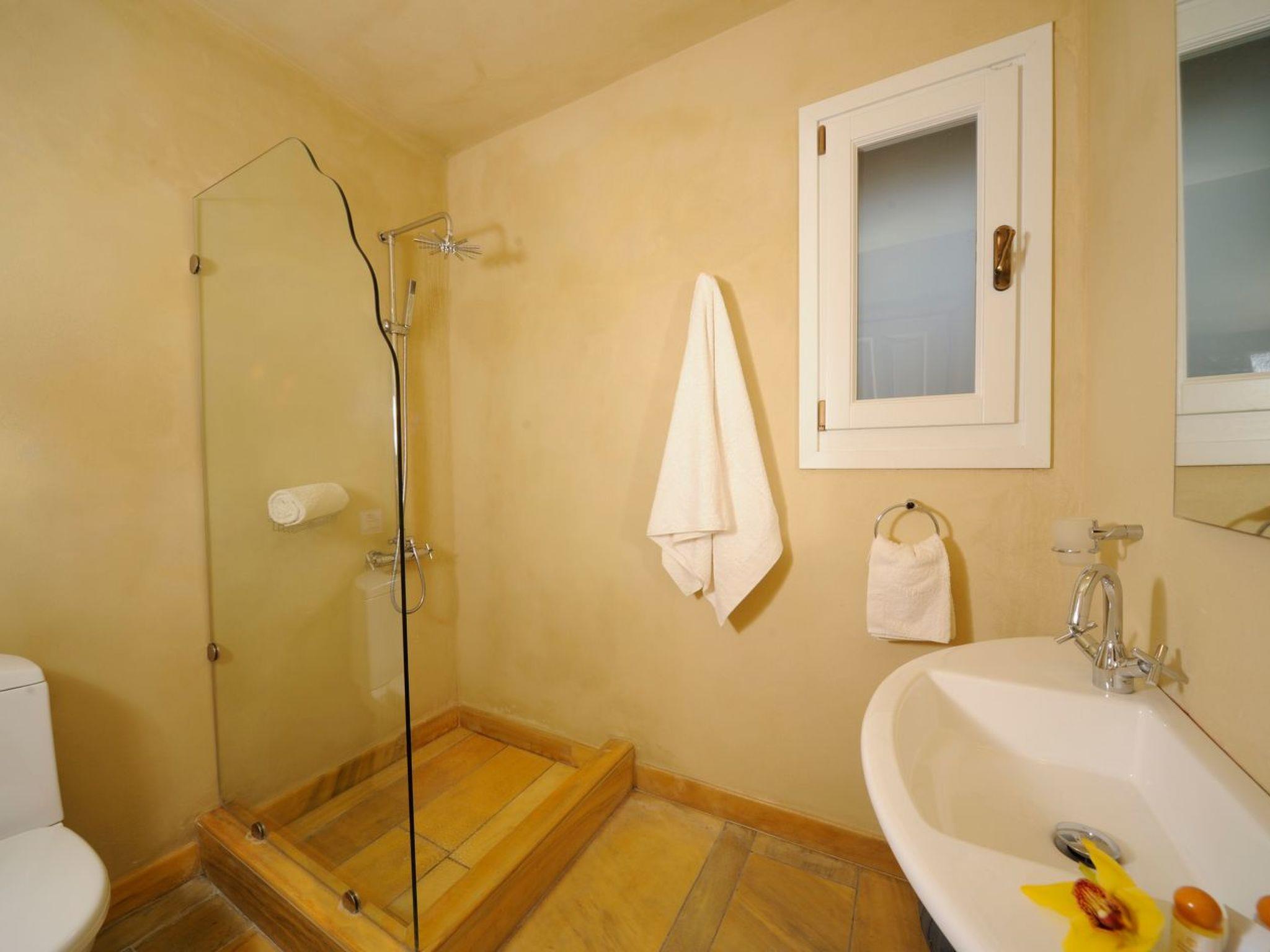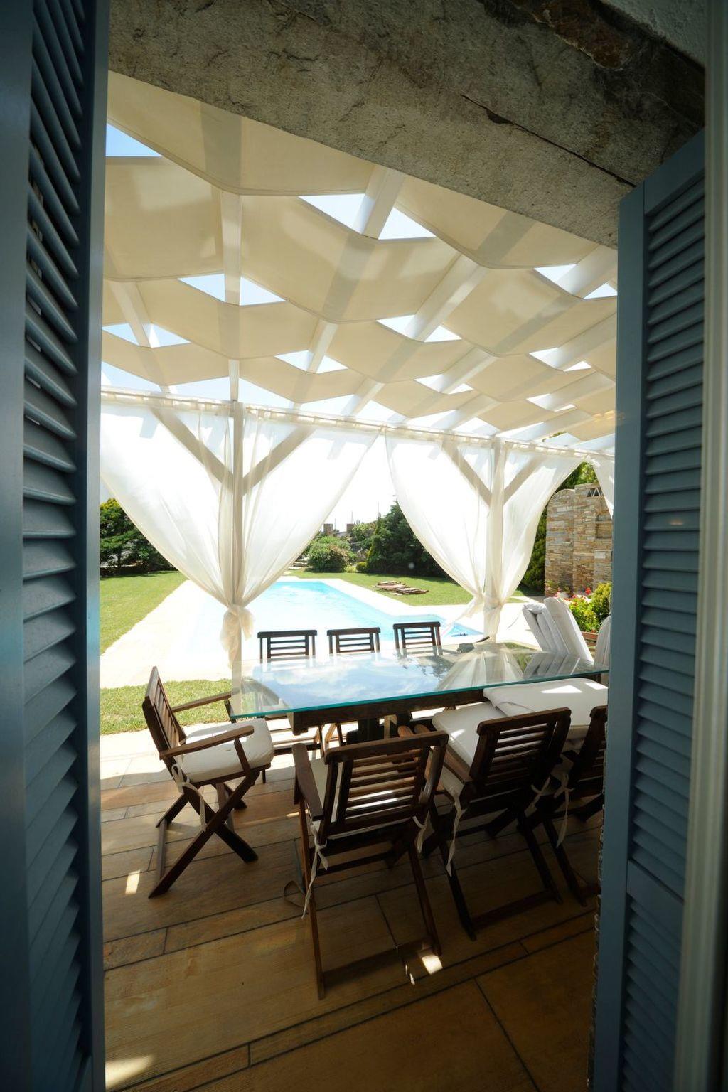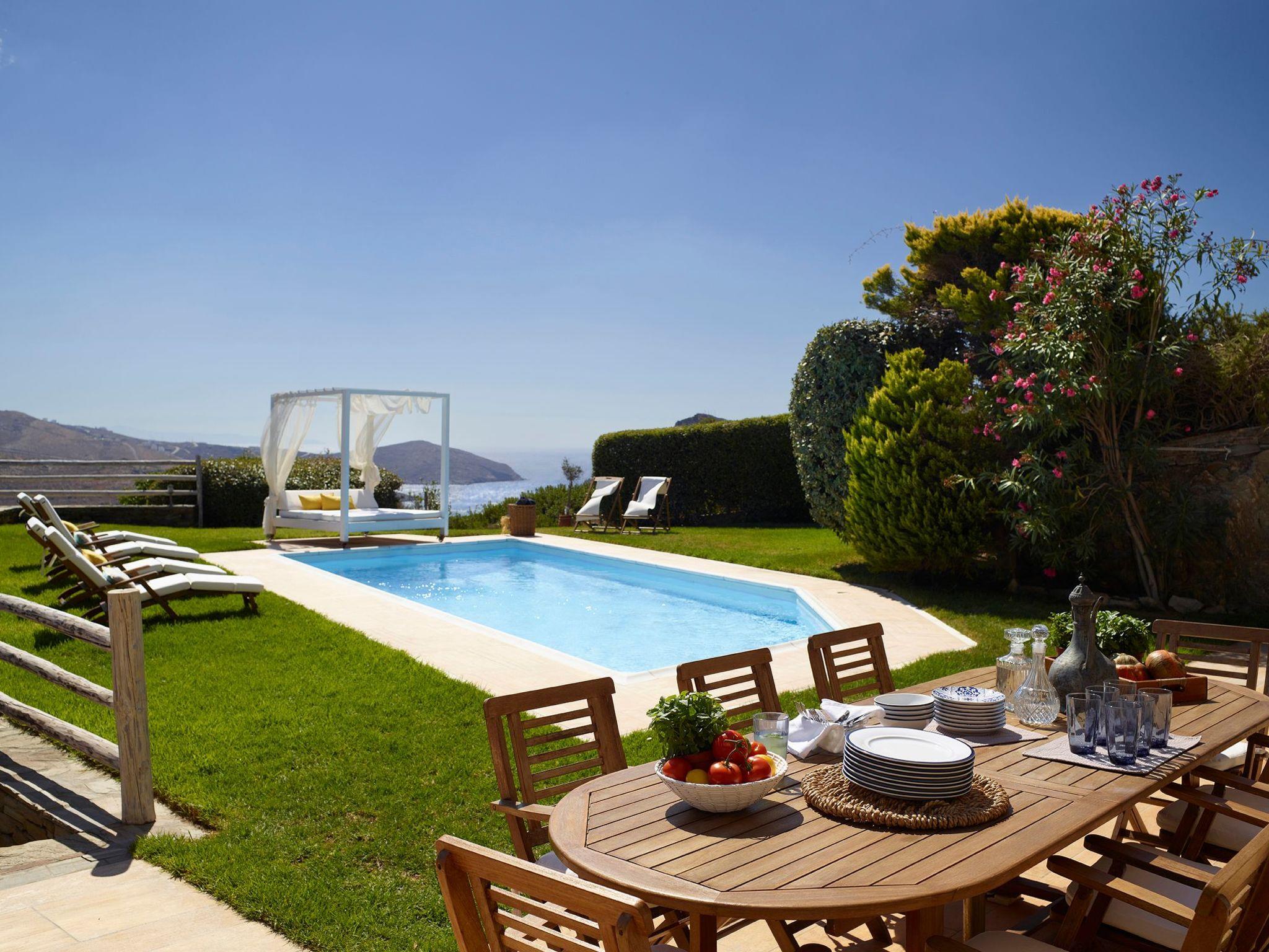 Our villa is surrounded by a private garden of 1000 sq.m., therefore it provides privacy to guests and a nice place for kids to play. It has private swimming pool of 36 sq.m. with 8 sun lounges and a large double sun bed. The pool patio has outdoor table and chairs, while there is also a BBQ for enjoyable evenings with family and friends. The first floor veranda offers sea view and has a large dining table and chairs for meals outside. On the side of the villa, there is outdoor private parking.