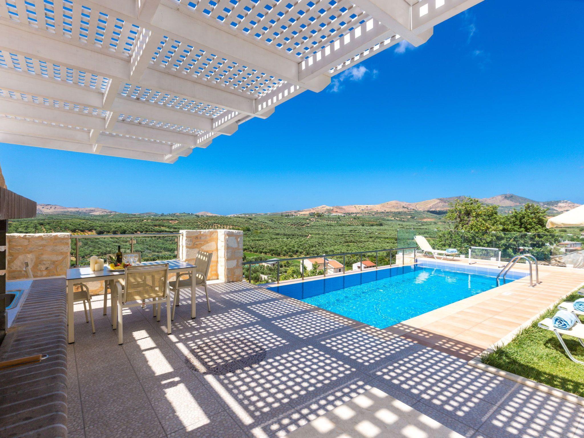 Kampos Villa I is located near Panormos in Crete! It features 4 bedrooms, 2 bathrooms, jacuzzi, large verandas, private heated swimming pool, lawn covered terrace, BBQ, shared playground and outdoor dining area! 50 meters from a tavern!In Perama town, 9 minutes away by car from the Villas, you can find everything that you might need like shops, bakery, grocery store, butcher’s, taverns, cafes, supermarkets, ATM machines, pharmacies, gas stations and post office.Also Panormo, is a friendly sea side village, 9 minutes away by car and well known for its sandy beaches. The two main beaches are Limanaki and Limni. Both of them are sandy with clear blue water and ideal for kids, as they are shallow and well protected from winds. The beaches are organised and equipped with sun beds & umbrellas. Water sports are also available. The harbour beach in front of the village is the port of the area, where the boats tie up, this beach is unorganised.The village has all the facilities and amenities one would need : well-stocked mini-markets, post office, pharmacy, a doctor’s office, a butcher's shop, bakery (hot, fresh bread every morning from 9 am), various gift shops and traditional seaside shops at very reasonable prices.Traditional Cafe: 60 mSuper Market & Restaurants: Perama village, 5 KmsPanormos Beach: 6.5 KmsRethymno Port & Town: 28 KmsHeraklion International Airport: 60 KmsChania International Airport: 95 KmsCar rental is essential to explore the nearby villages and unique sandy beach locations!
