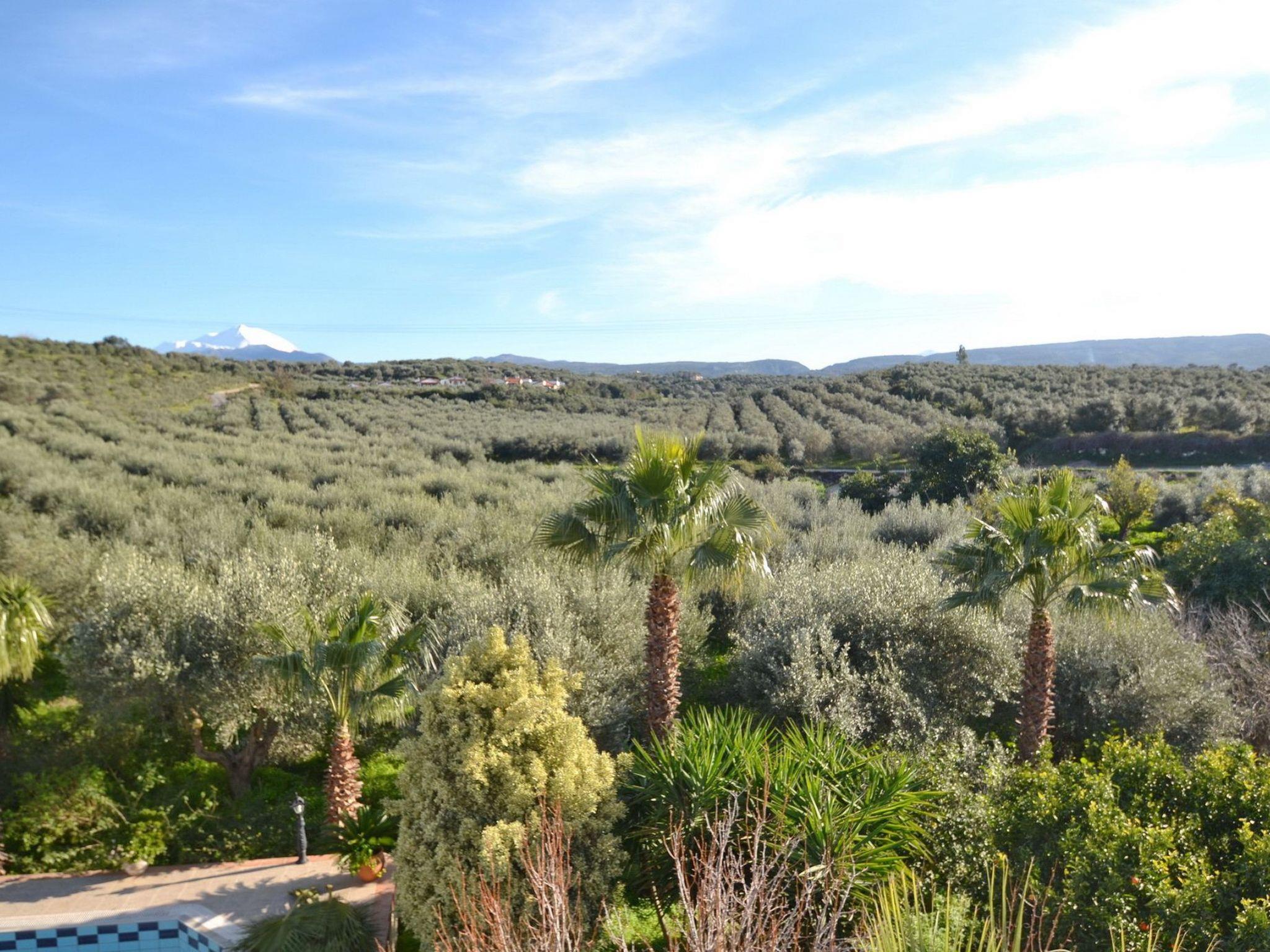 The balconies spanning around both floors offer you breathtaking, panoramic views towards the mountains of Psiloritis and Lefka Ori and the beautiful surrounding landscape. A luscious garden within a 14.000 sq.m. private olive grove, a 45sq.m. private swimming pool with separate children's pool and adjacent BBQ with stone oven, are to be found around the villa premises. The villa's premises are enclosed and not overlooked.