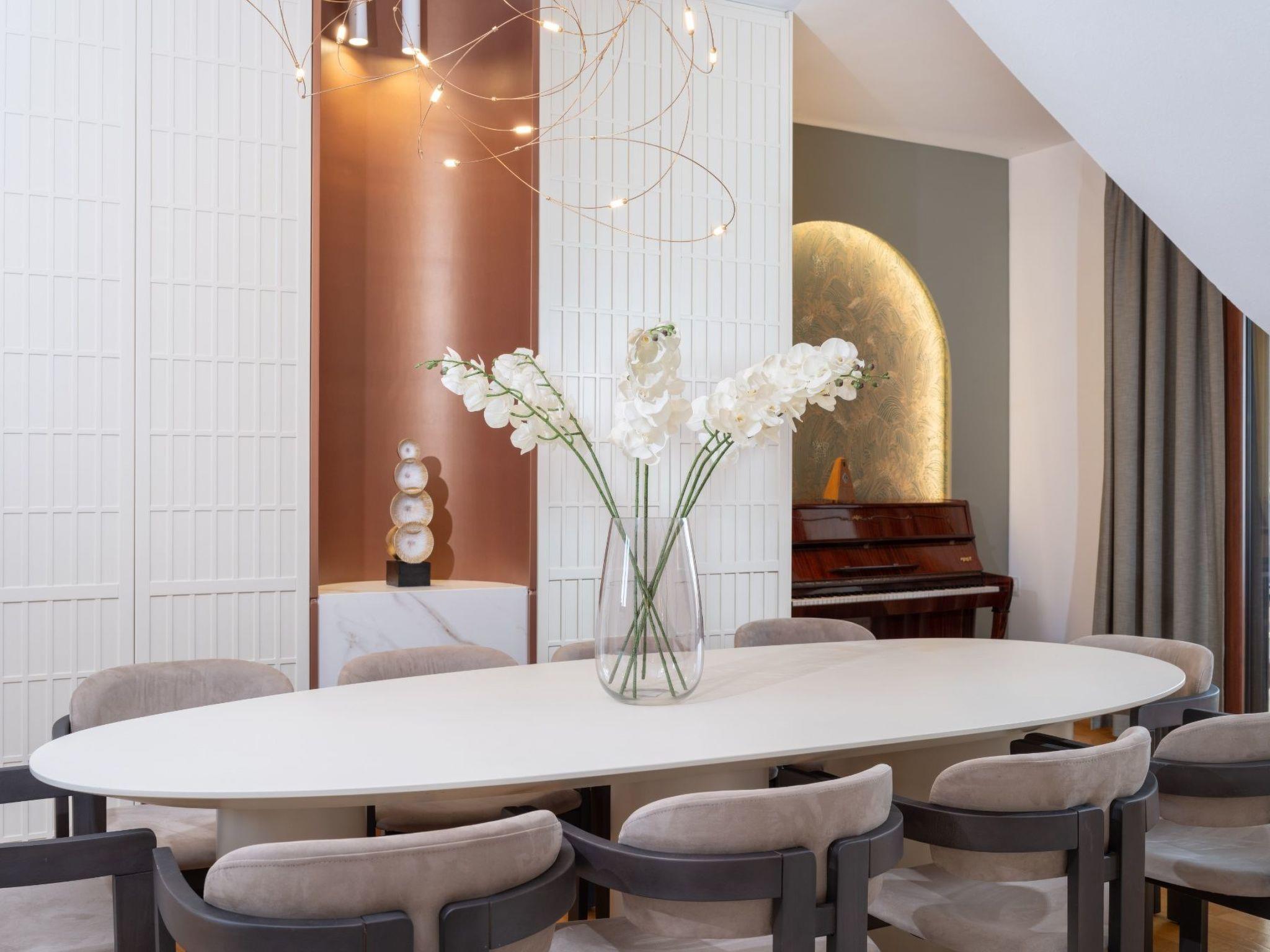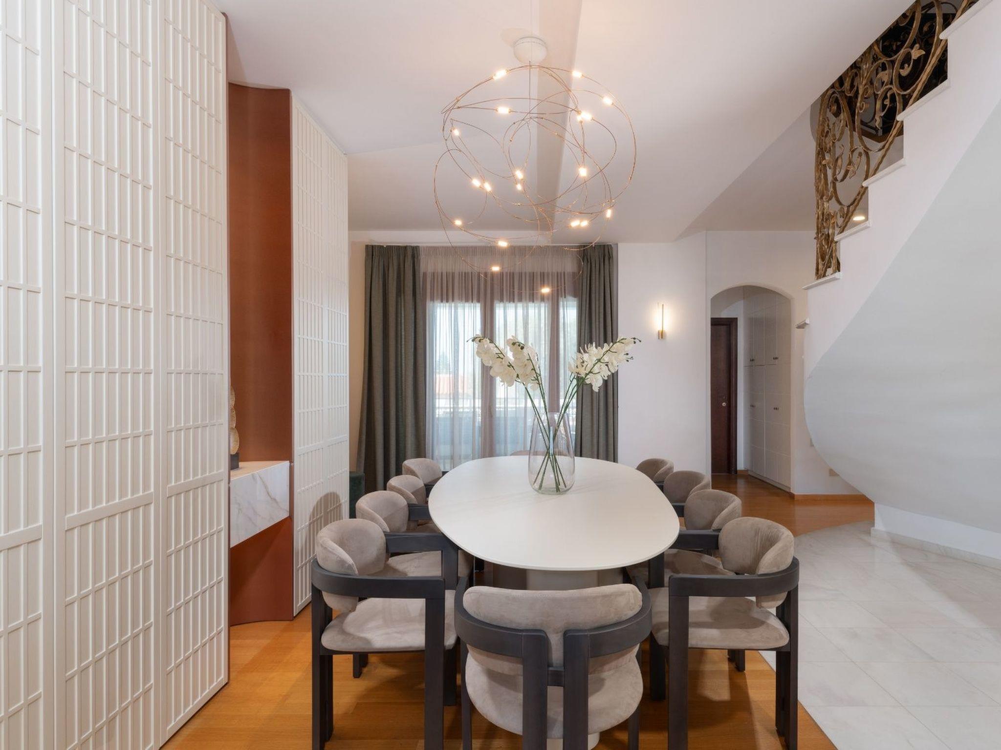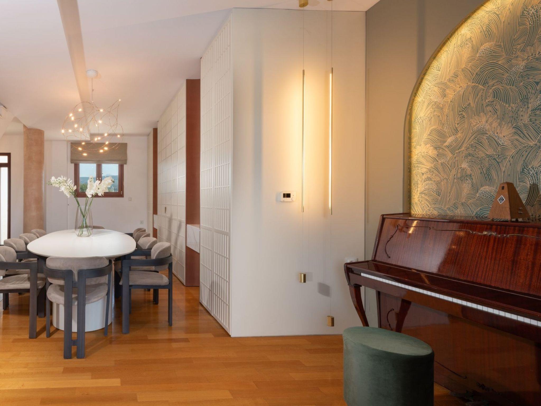 Second floor/attic: an open plan double bedroom with an enusite bathroom, a gym corner, an office and a kitchenette.